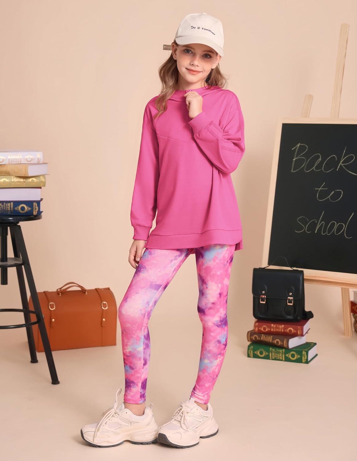 GRACE KARIN Girls Hoodie + Leggings Set Teen Long Sleeve Fashion Sweatshirts Sweatpant Fall Outfit Winter Clothing 6-14(Rose Pink)
