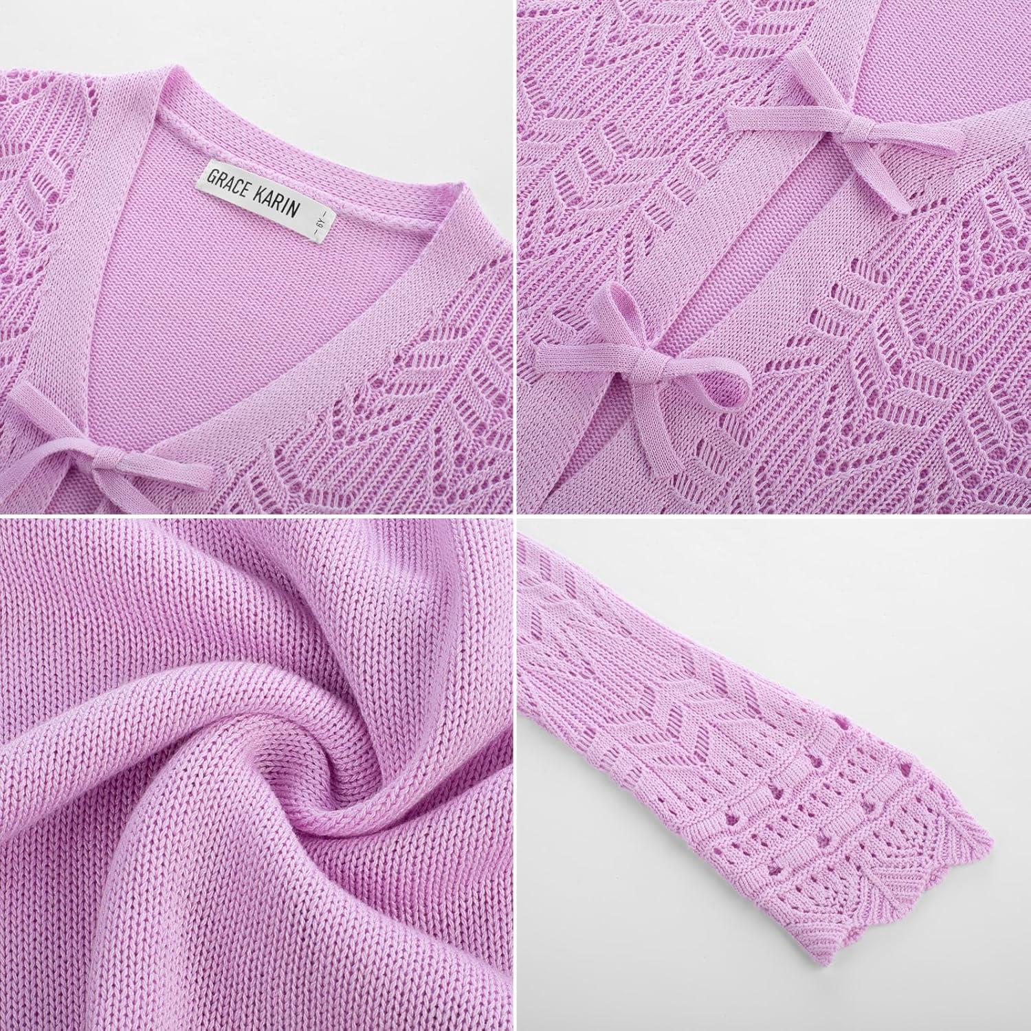 imageGRACE KARIN Girls Long Sleeve Cardigan Sweater Tie Front Bow V Neck Crochet Knit Lightweight Shrug 512 YearsPurple
