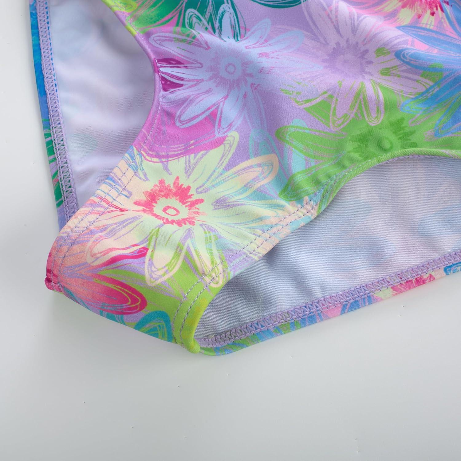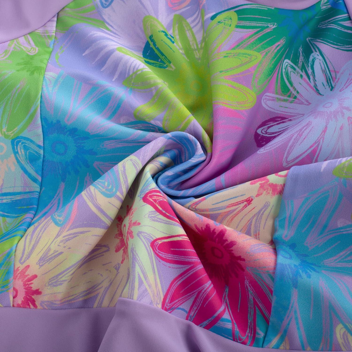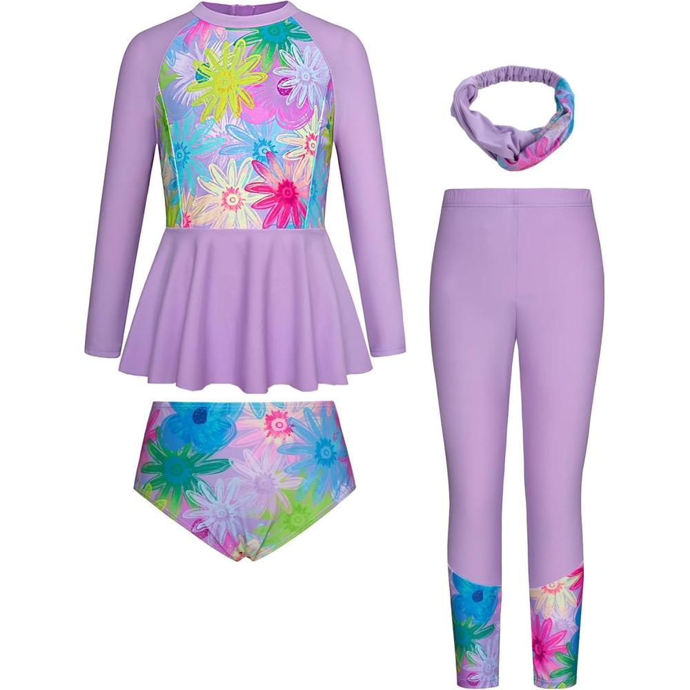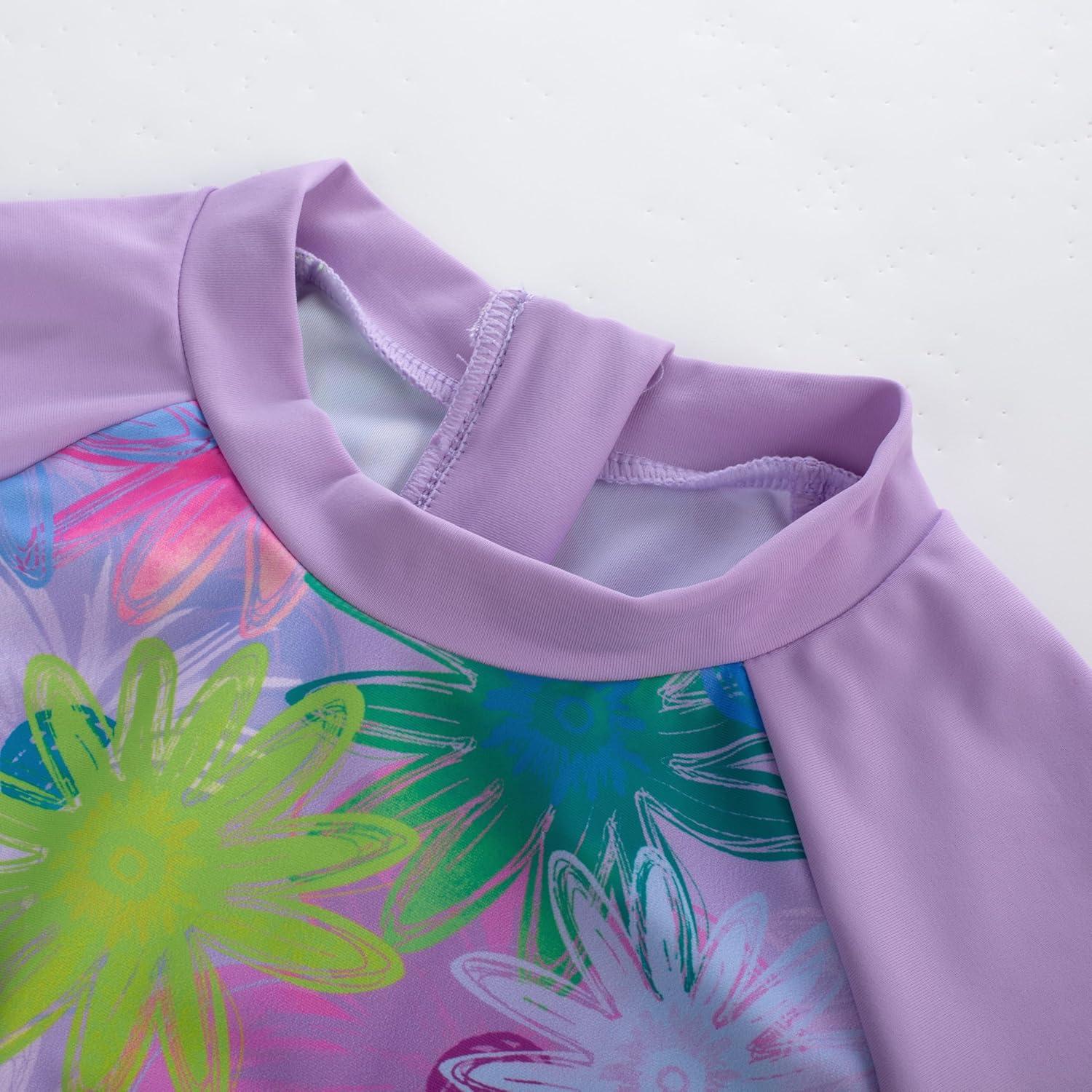 GRACE KARIN Girls Long Sleeve Swimsuit Mermaid Bathing Suit Rash Guard Swimwear 4 Piece Size 5-12(Light Purple-daisy)