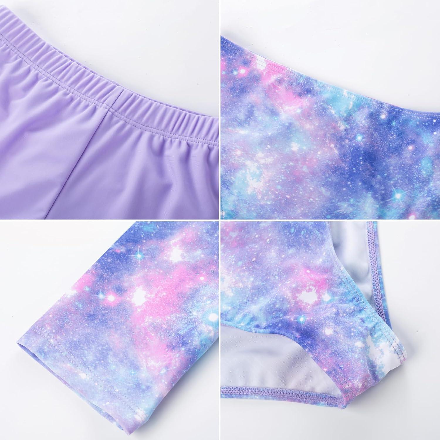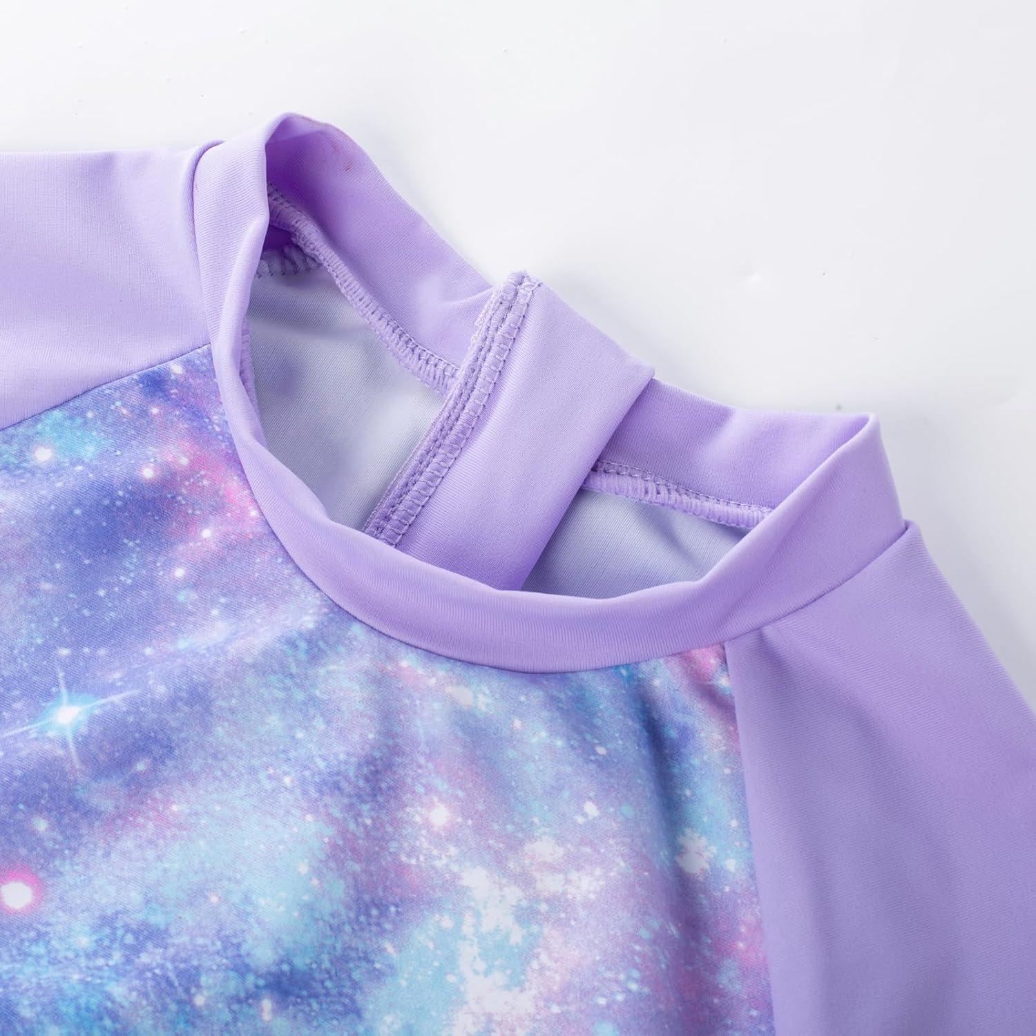 GRACE KARIN Girls Long Sleeve Swimsuit Mermaid Bathing Suit Rash Guard Swimwear 4 Piece Size 5-12(Sky-purple)