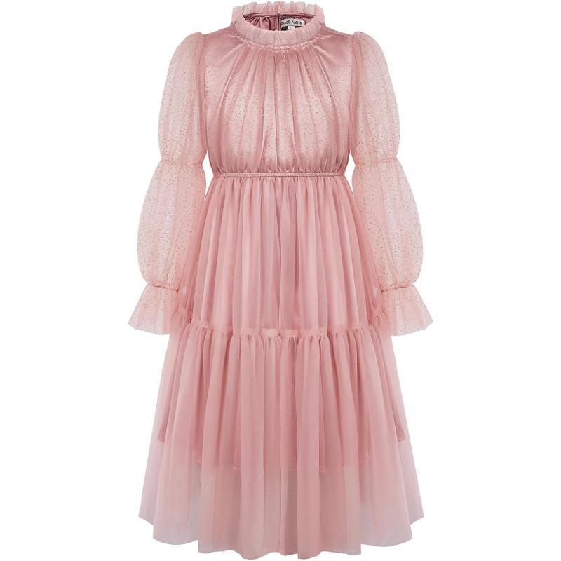 GRACE KARIN Girls Mesh Long Sleeve Dress Flared High Waist Party Dresses 512YPink