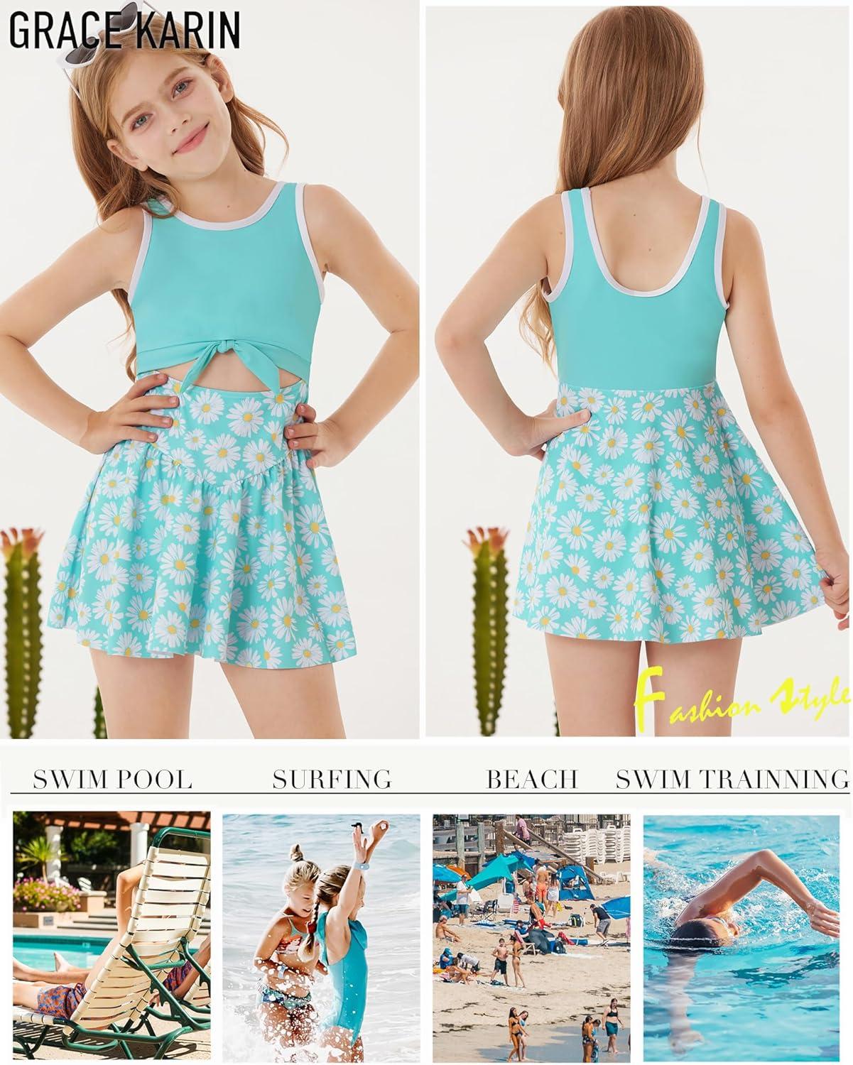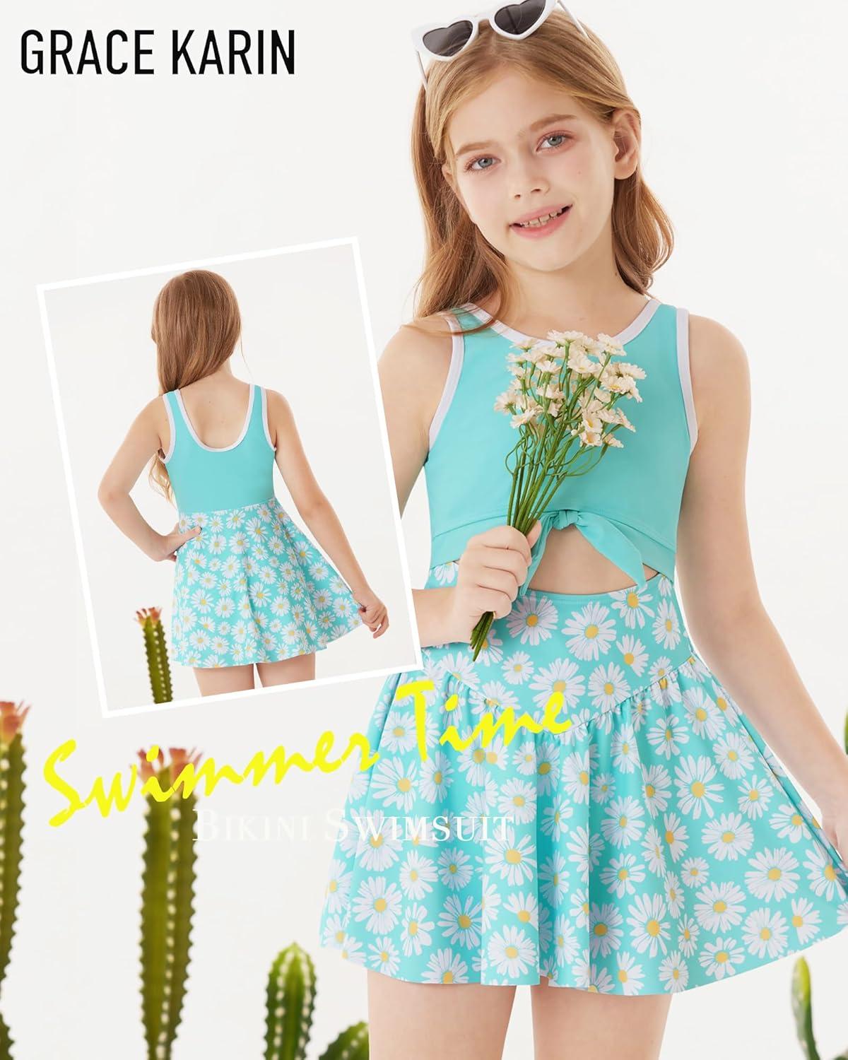 Get more for your money with our exclusive bundle deals on GRACE KARIN Girls One Piece Swimsuit Cutout High Waisted Tie Knot 2 Piece Bathing Suit with Bikini Kids Swimwear(Blue-daisy) and accessories.