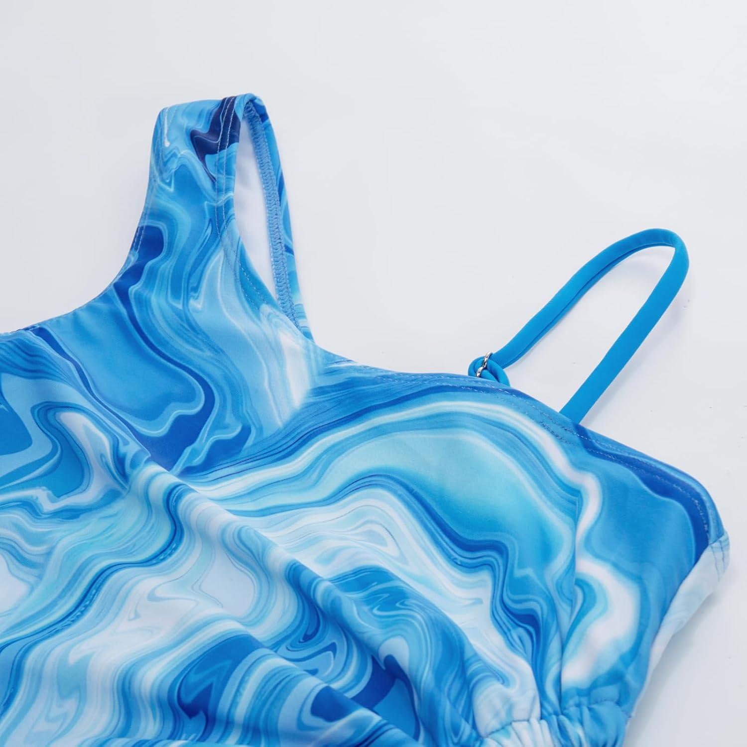 GRACE KARIN Girls One Piece Swimsuit One Shoulder Sleeveless Swimwear Cut Out Bathing Suit 6-14Y(Blue Texture)