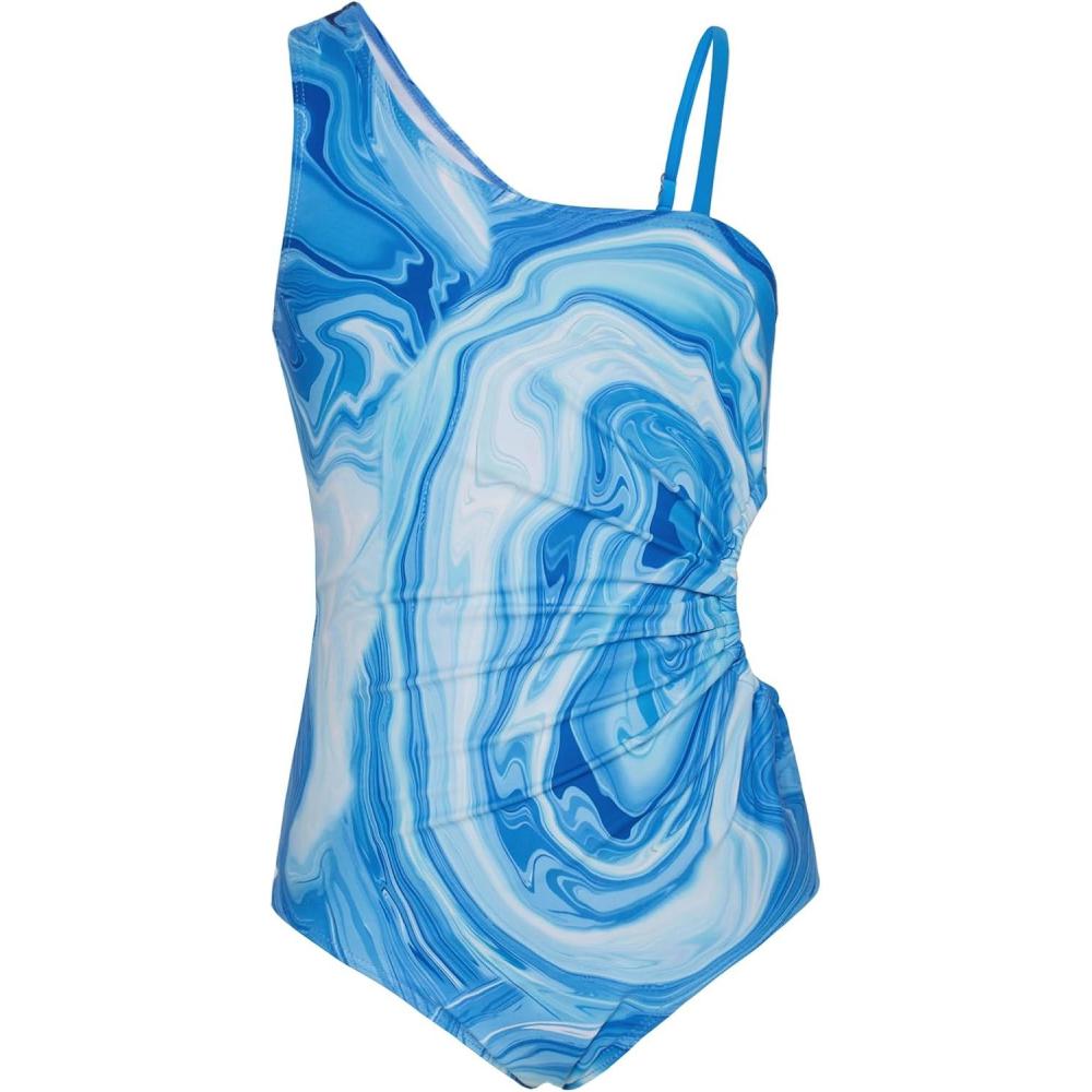 imageGRACE KARIN Girls One Piece Swimsuit One Shoulder Sleeveless Swimwear Cut Out Bathing Suit 614YBlue Texture