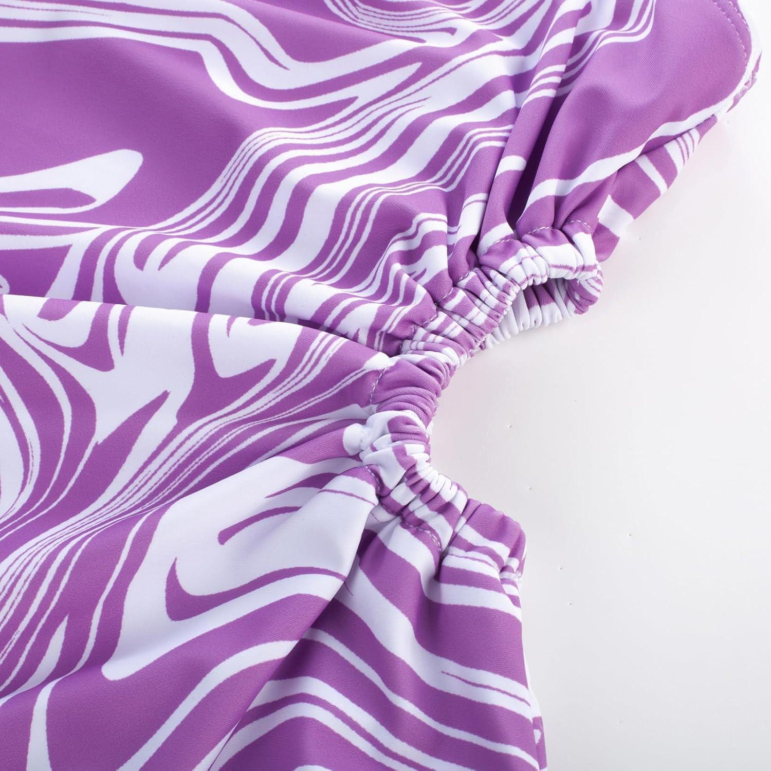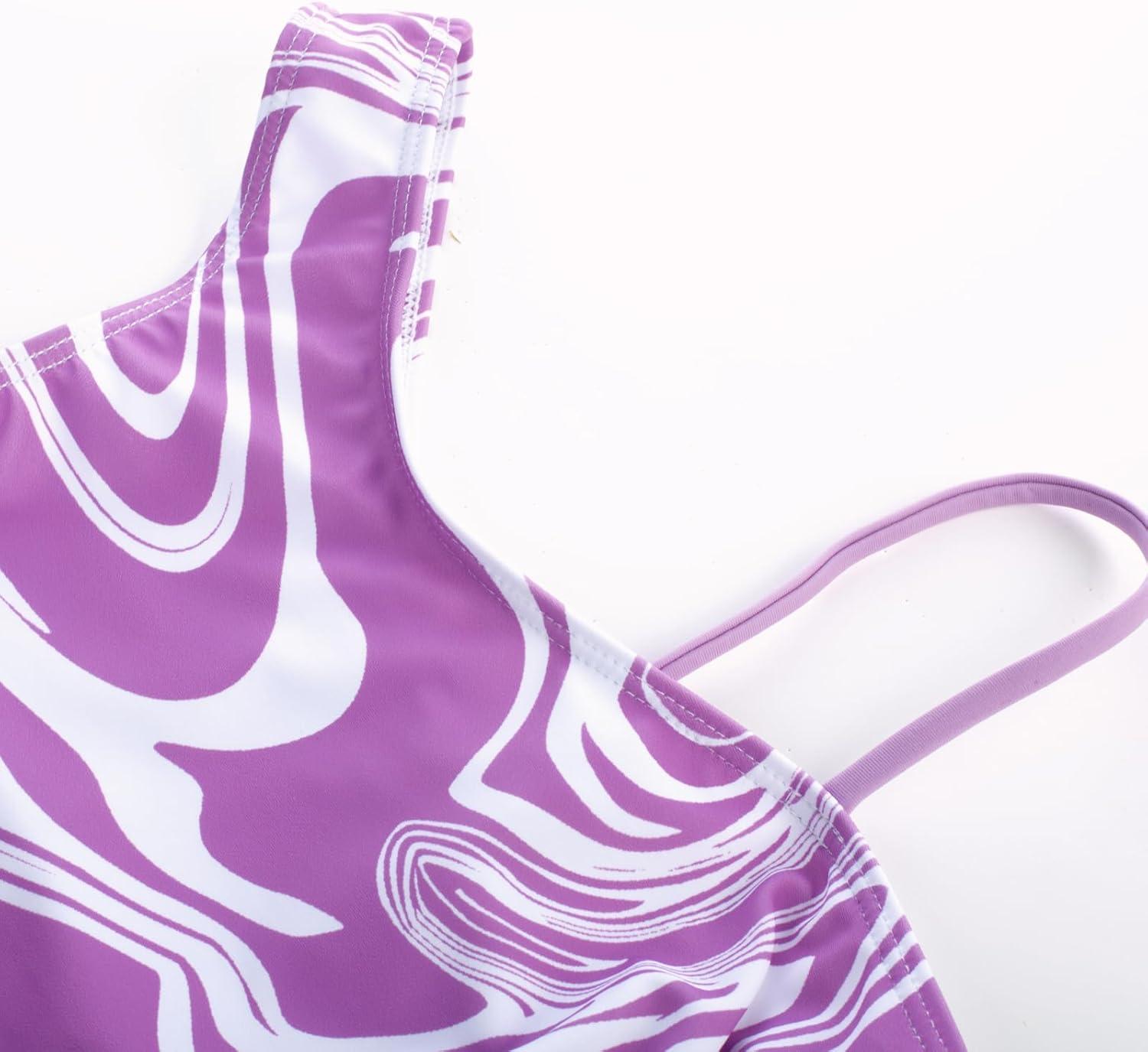 GRACE KARIN Girls One Piece Swimsuit One Shoulder Sleeveless Swimwear Cut Out Bathing Suit 6-14Y(Purple Fluid)