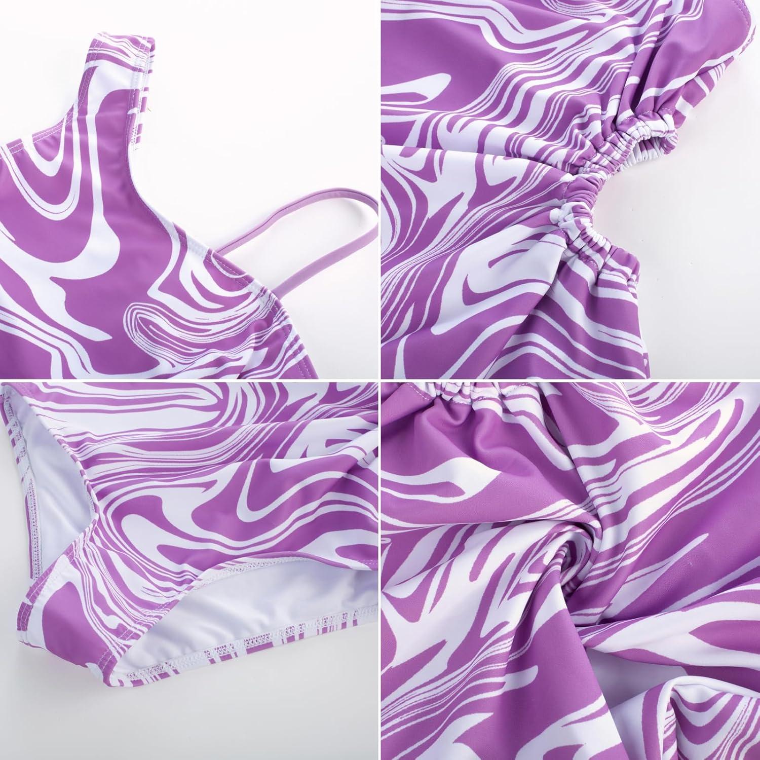 imageGRACE KARIN Girls One Piece Swimsuit One Shoulder Sleeveless Swimwear Cut Out Bathing Suit 614YPurple Fluid