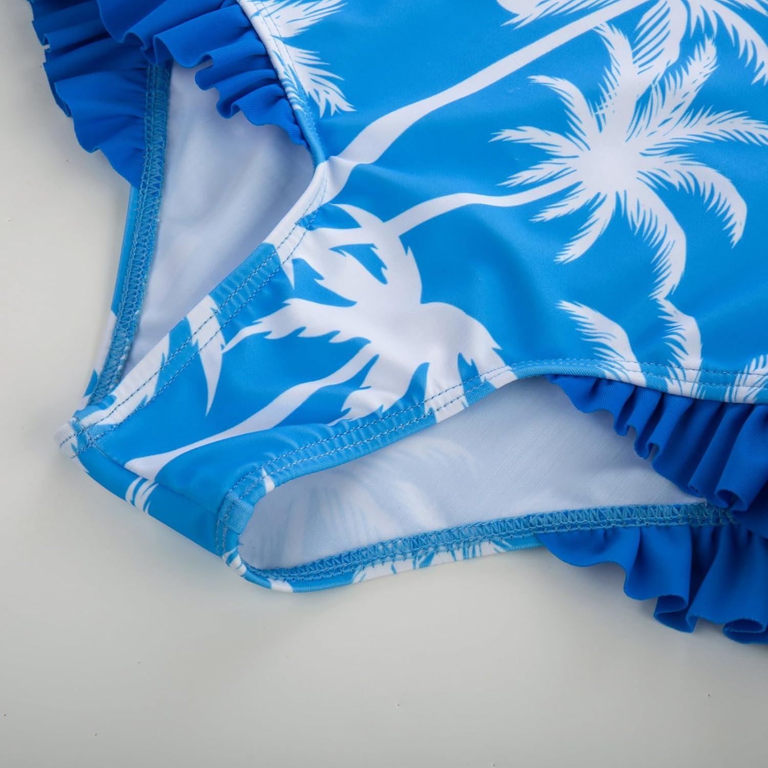 GRACE KARIN Girls One Piece Swimsuits Long Sleeve Bathing Suits Swimwear 5-14Y(Blue Coconut Tree)