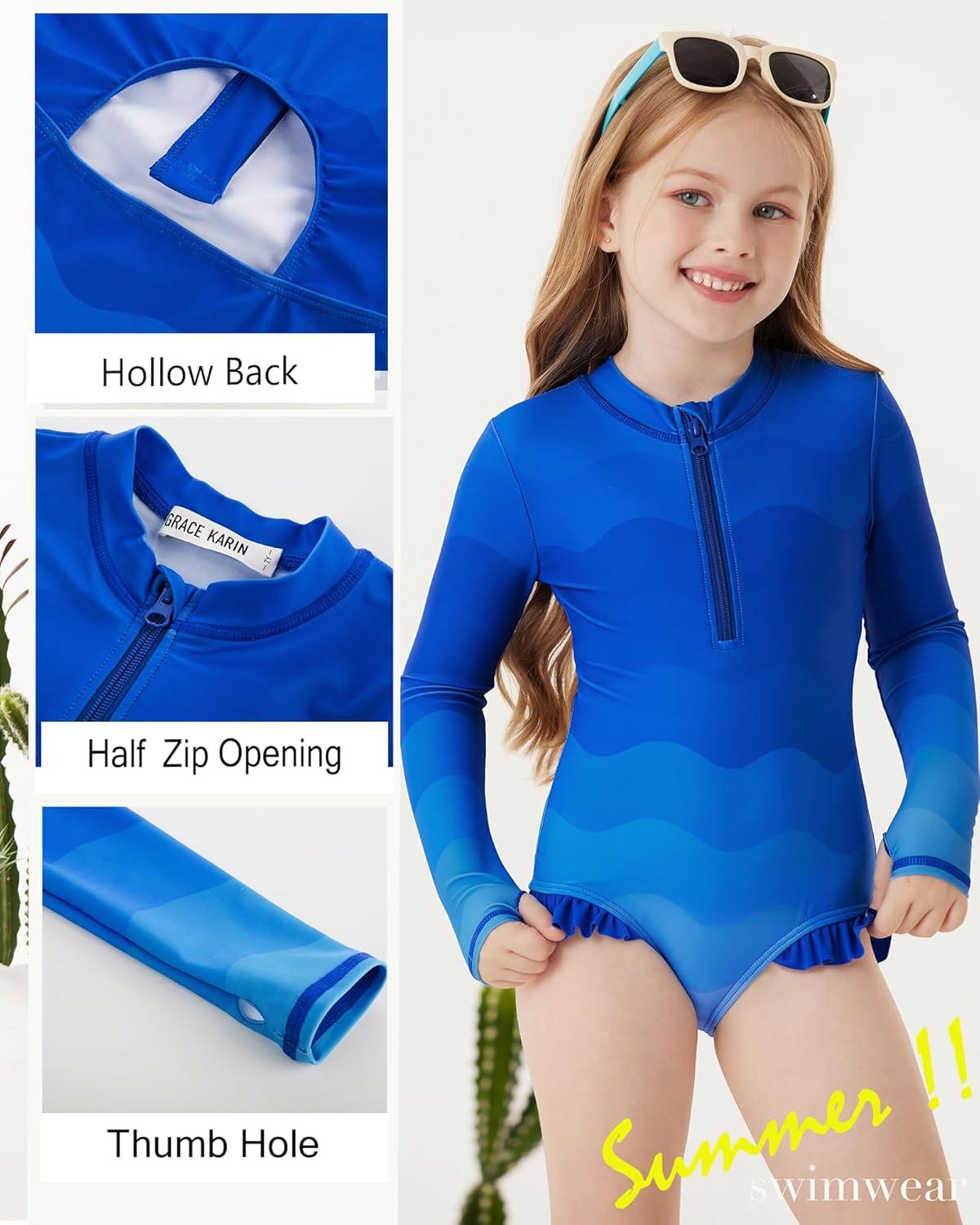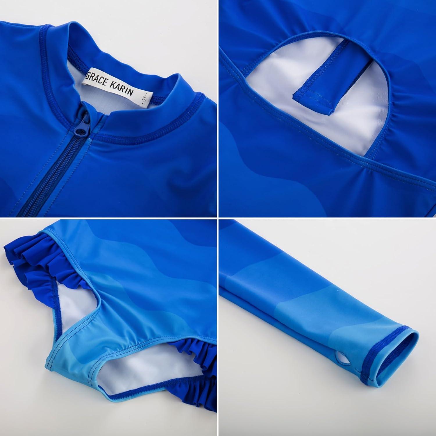 GRACE KARIN Girls One Piece Swimsuits Long Sleeve Bathing Suits Swimwear 5-14Y(Blue Gradient)