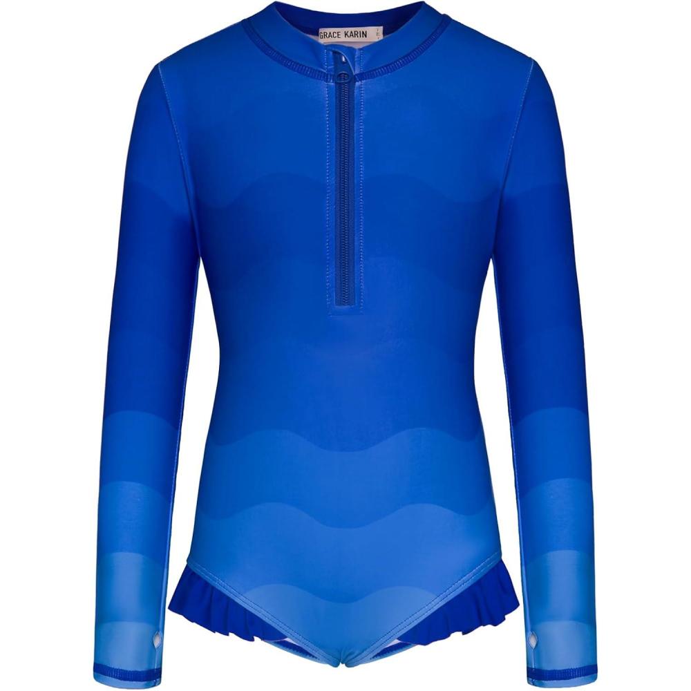 imageGRACE KARIN Girls One Piece Swimsuits Long Sleeve Bathing Suits Swimwear 514YBlue Gradient