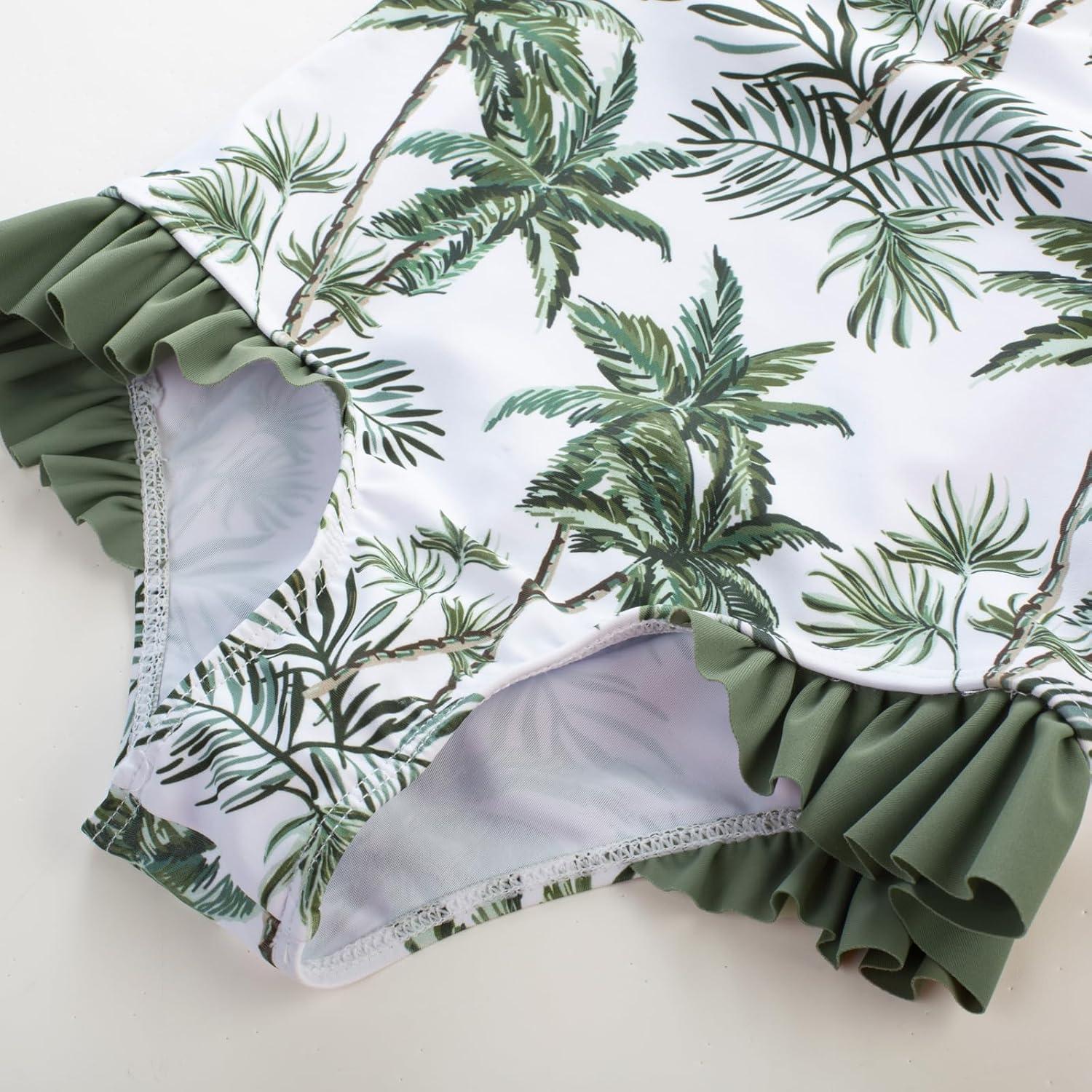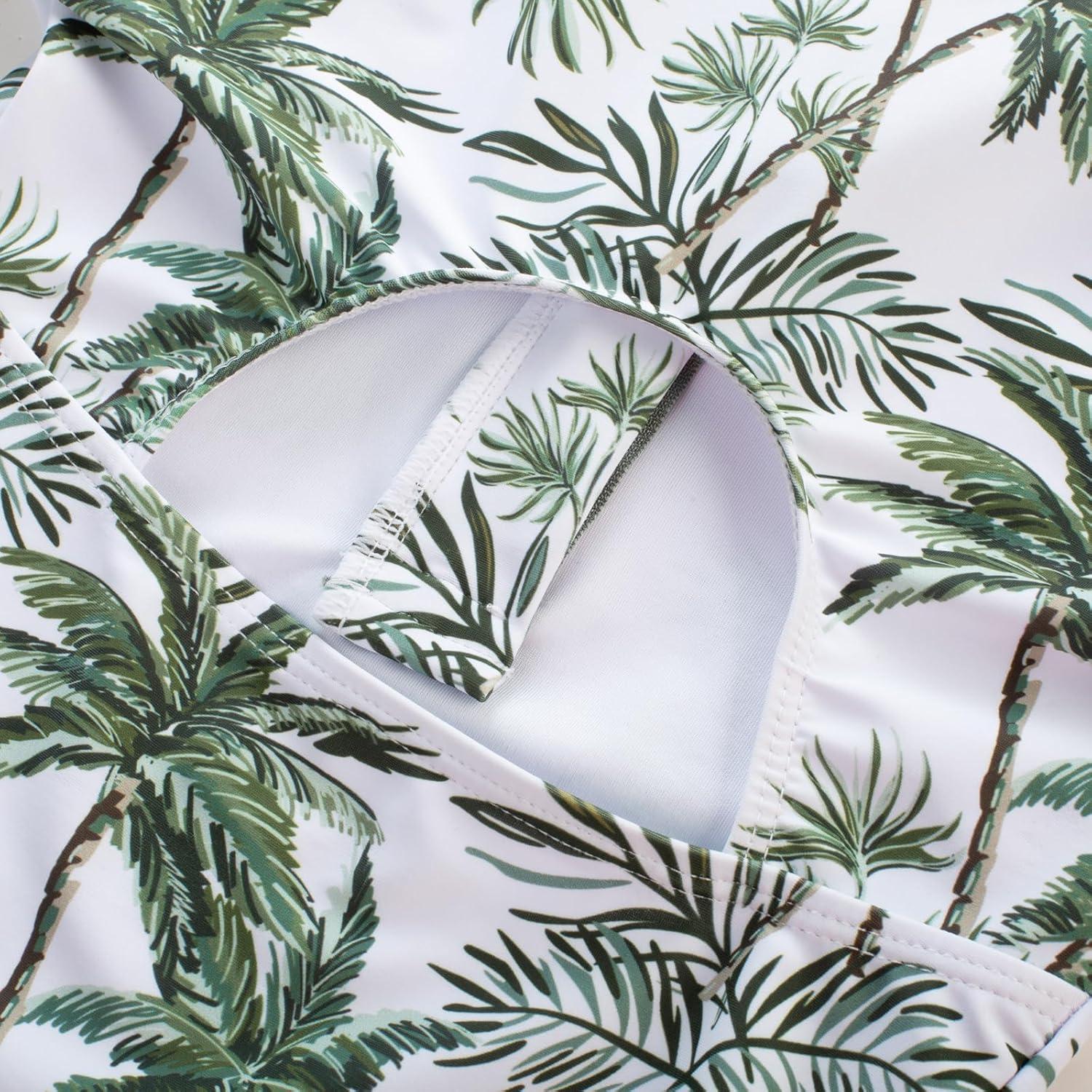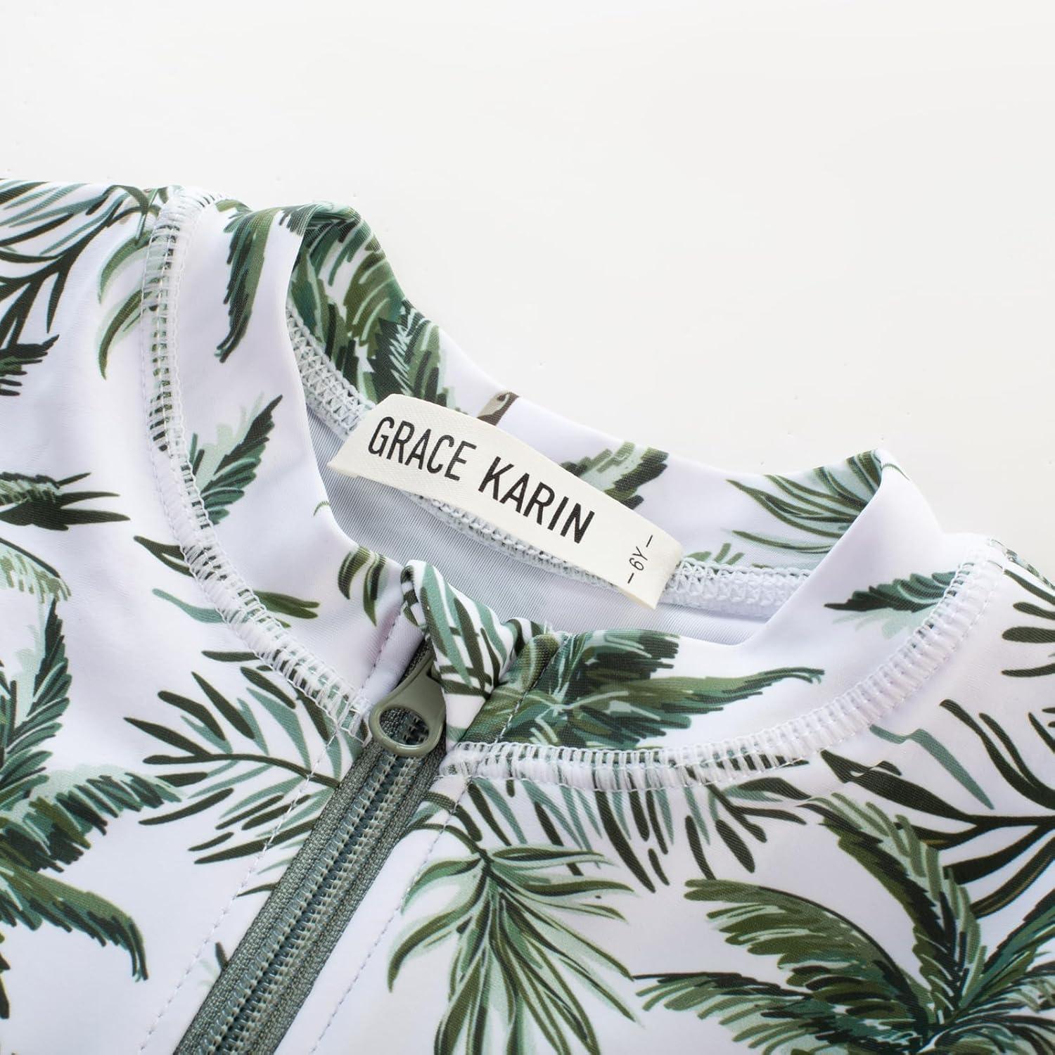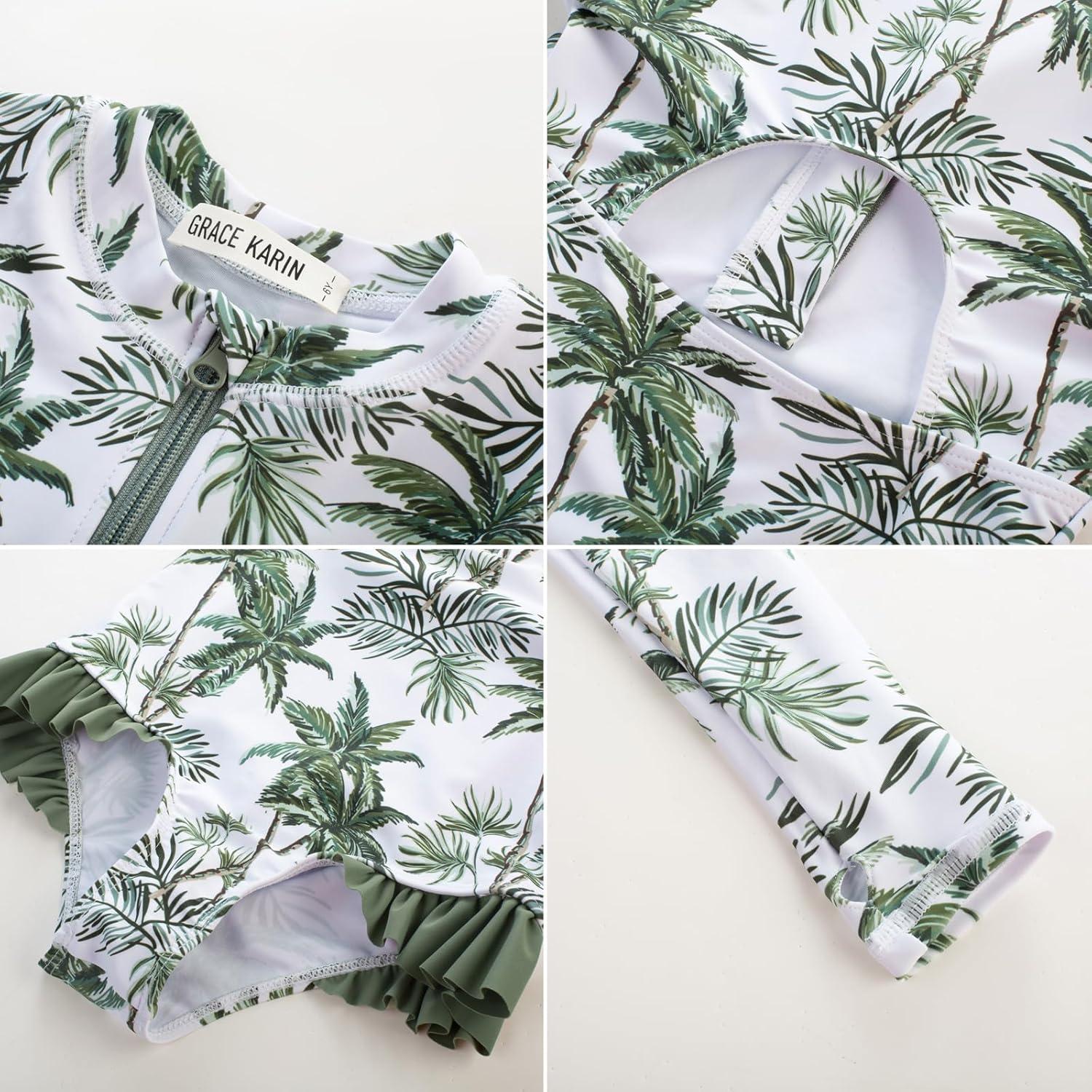 GRACE KARIN Girls One Piece Swimsuits Long Sleeve Bathing Suits Swimwear 5-14Y(Green Coconut Tree)