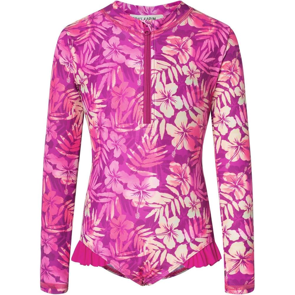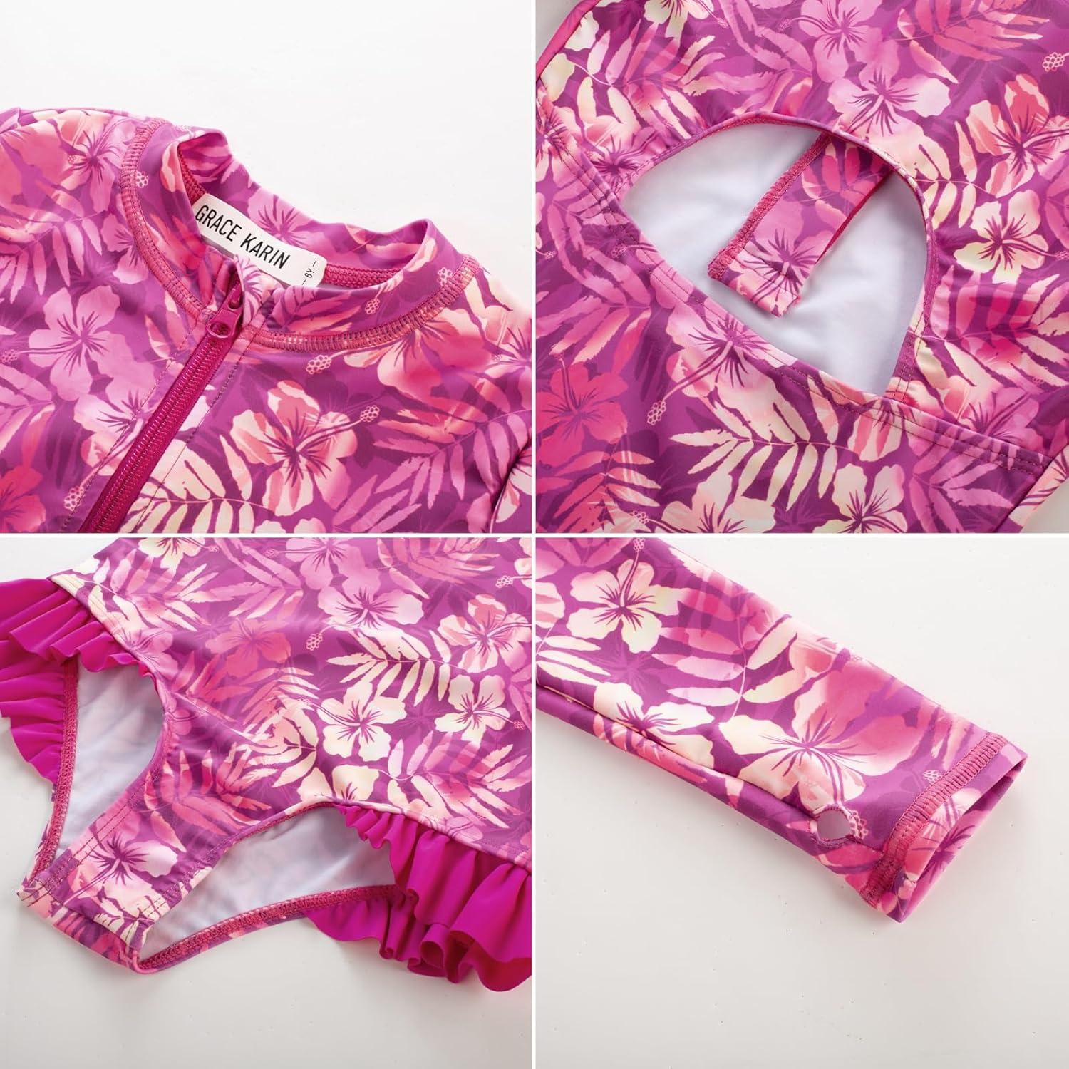 imageGRACE KARIN Girls One Piece Swimsuits Long Sleeve Bathing Suits Swimwear 514YHot Pink Floral