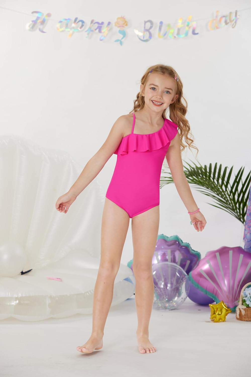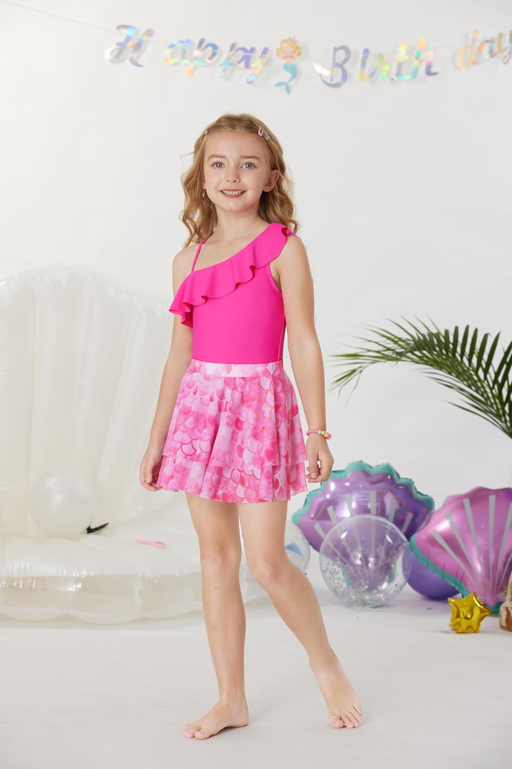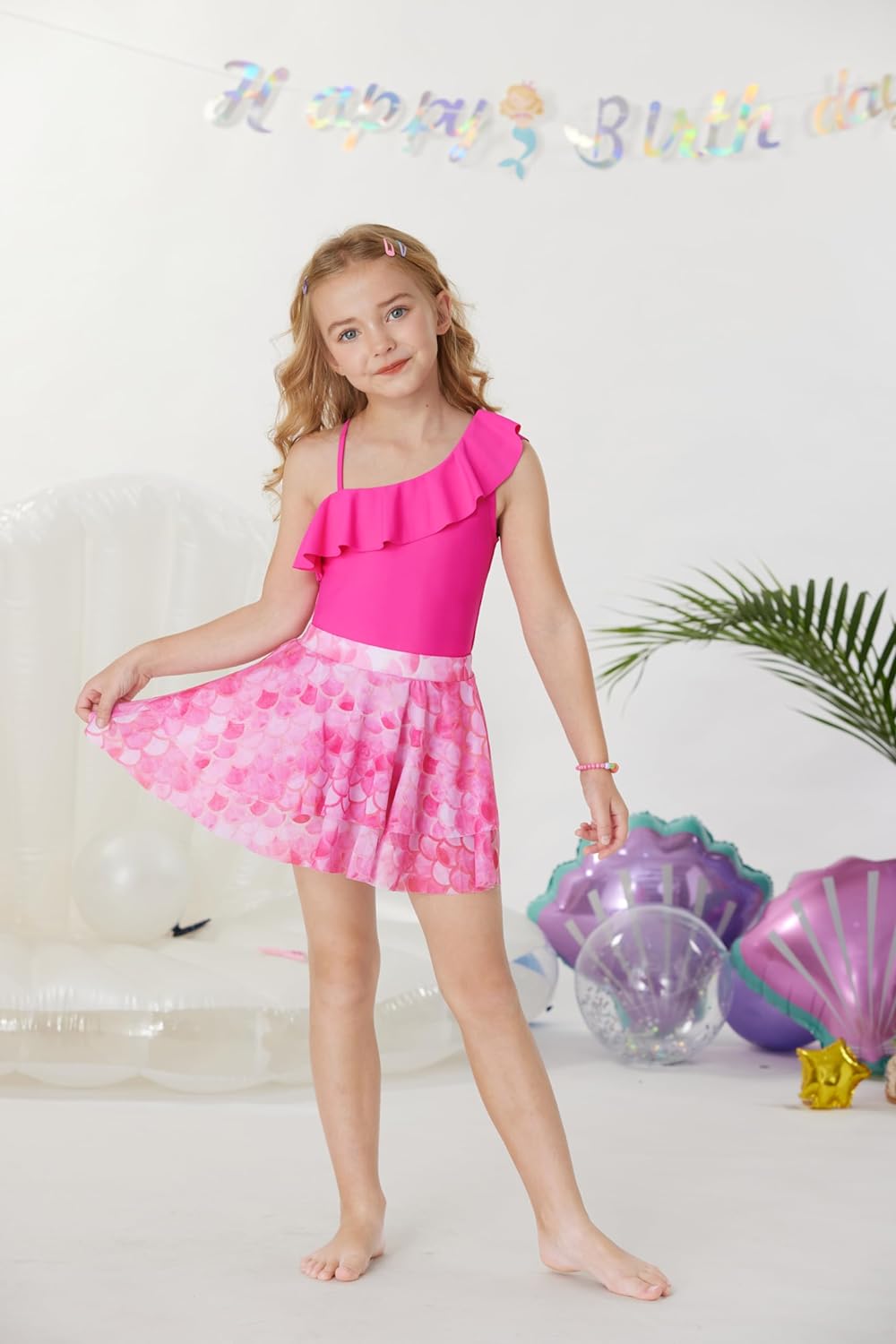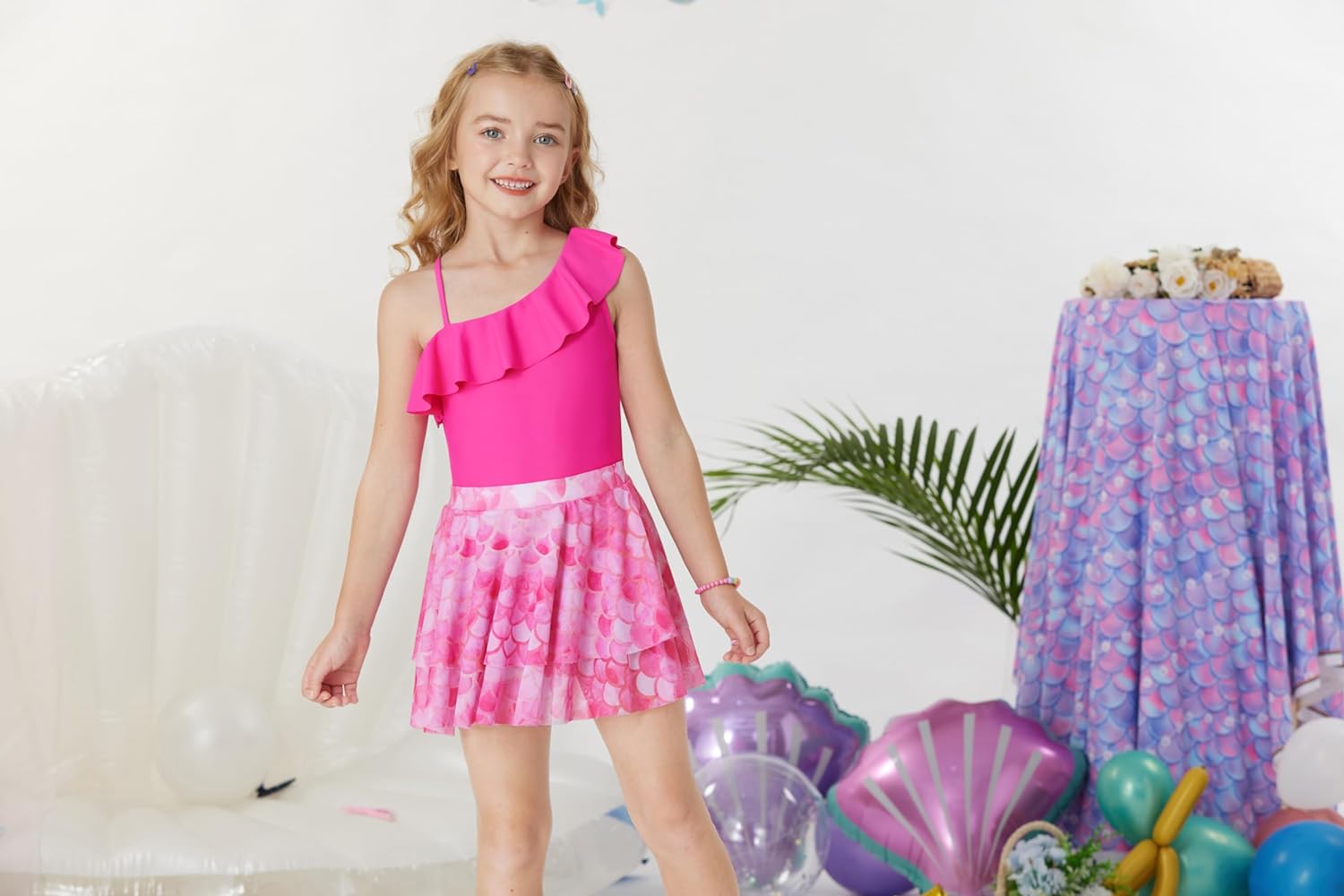 GRACE KARIN Girls One Piece Swimsuits with Mesh Skirt Bathing Suit Swimwear 612YHot Pink