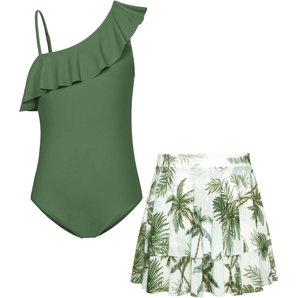 imageGRACE KARIN Girls One Piece Swimsuits with Mesh Skirt Bathing Suit Swimwear 614YGreen Coconut Tree