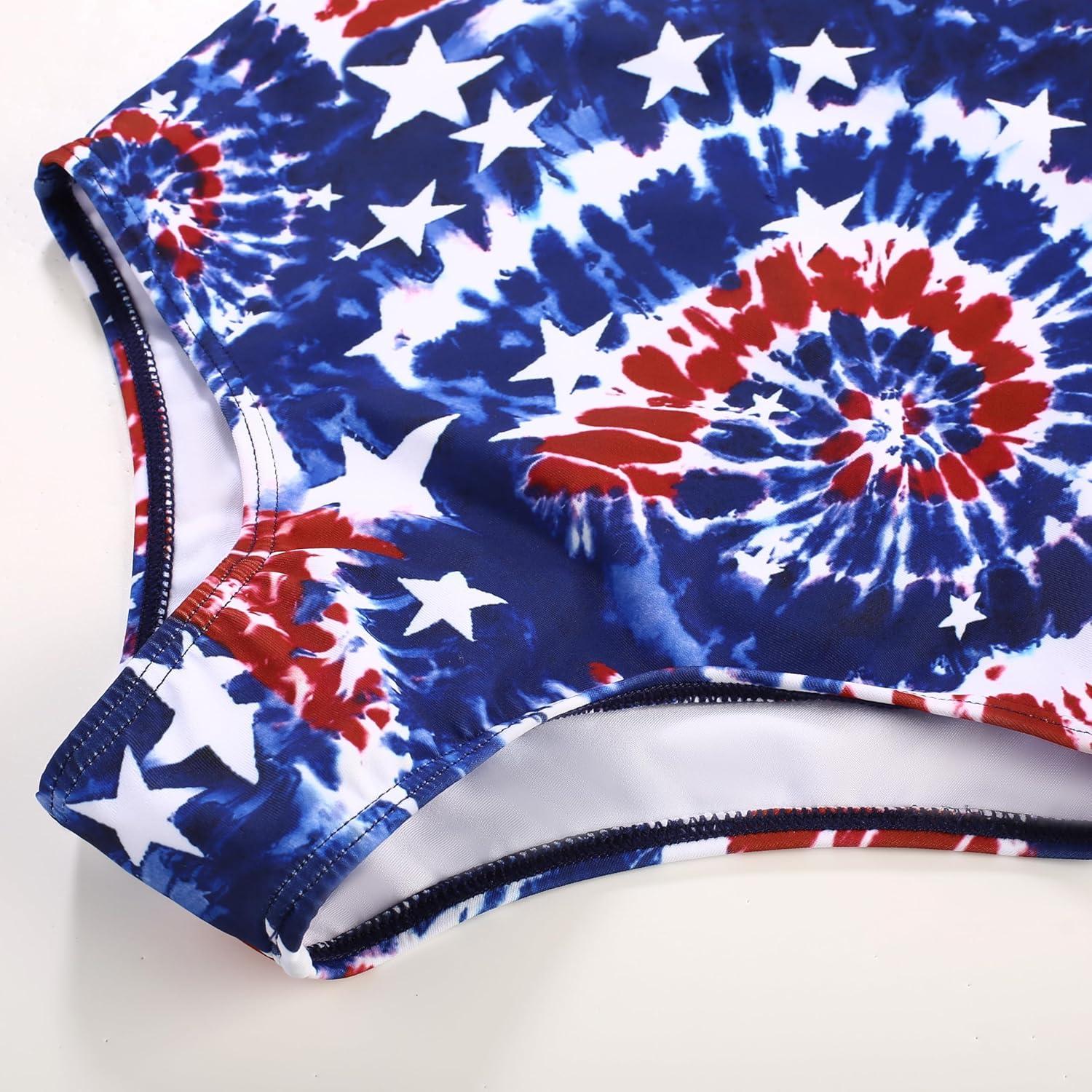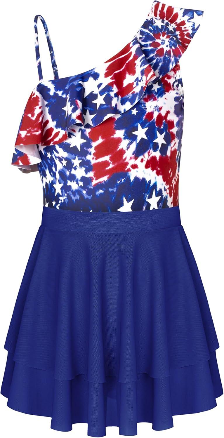 GRACE KARIN Girls One Piece Swimsuits with Mesh Skirt Bathing Suit Swimwear 6-14Y(Red and Blue Tie-dye)