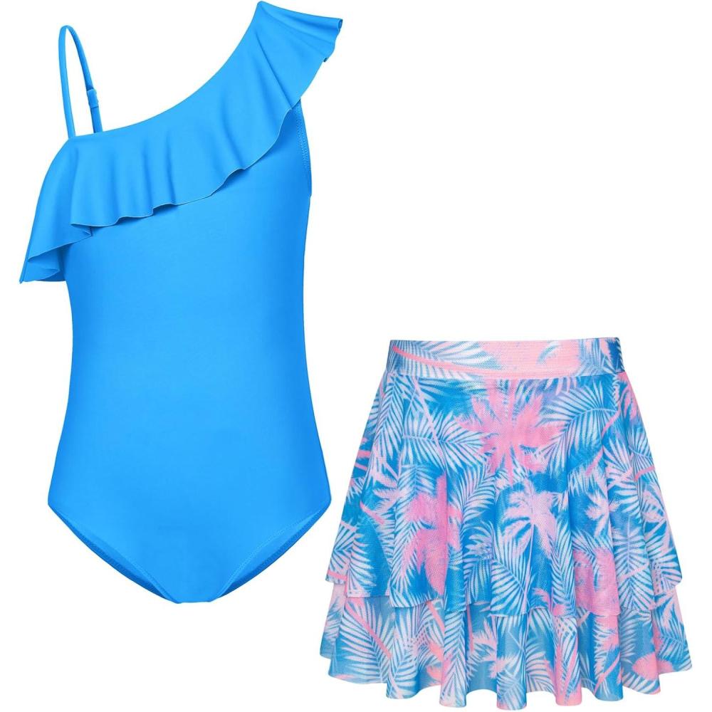 imageGRACE KARIN Girls One Piece Swimsuits with Mesh Skirt Bathing Suit Swimwear 614YSky Blue