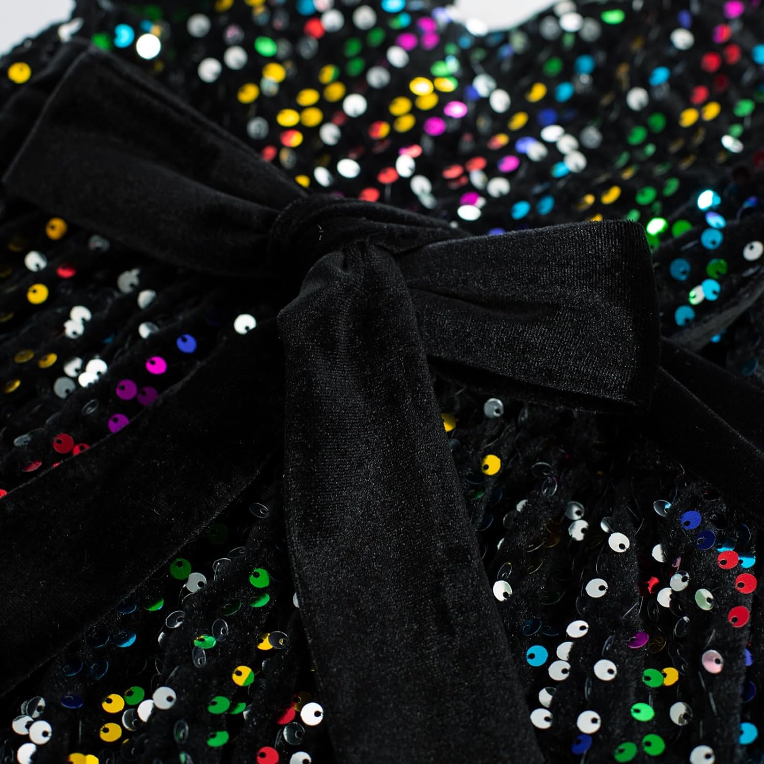 GRACE KARIN Girls Sequin Dress One Shoulder Sparkle Party Dress with Hair BowBlack