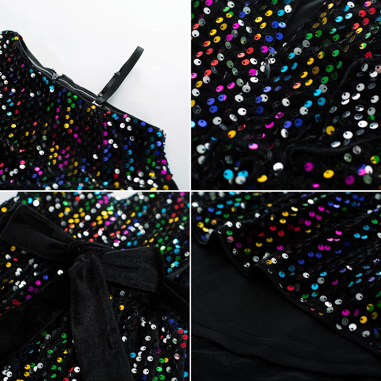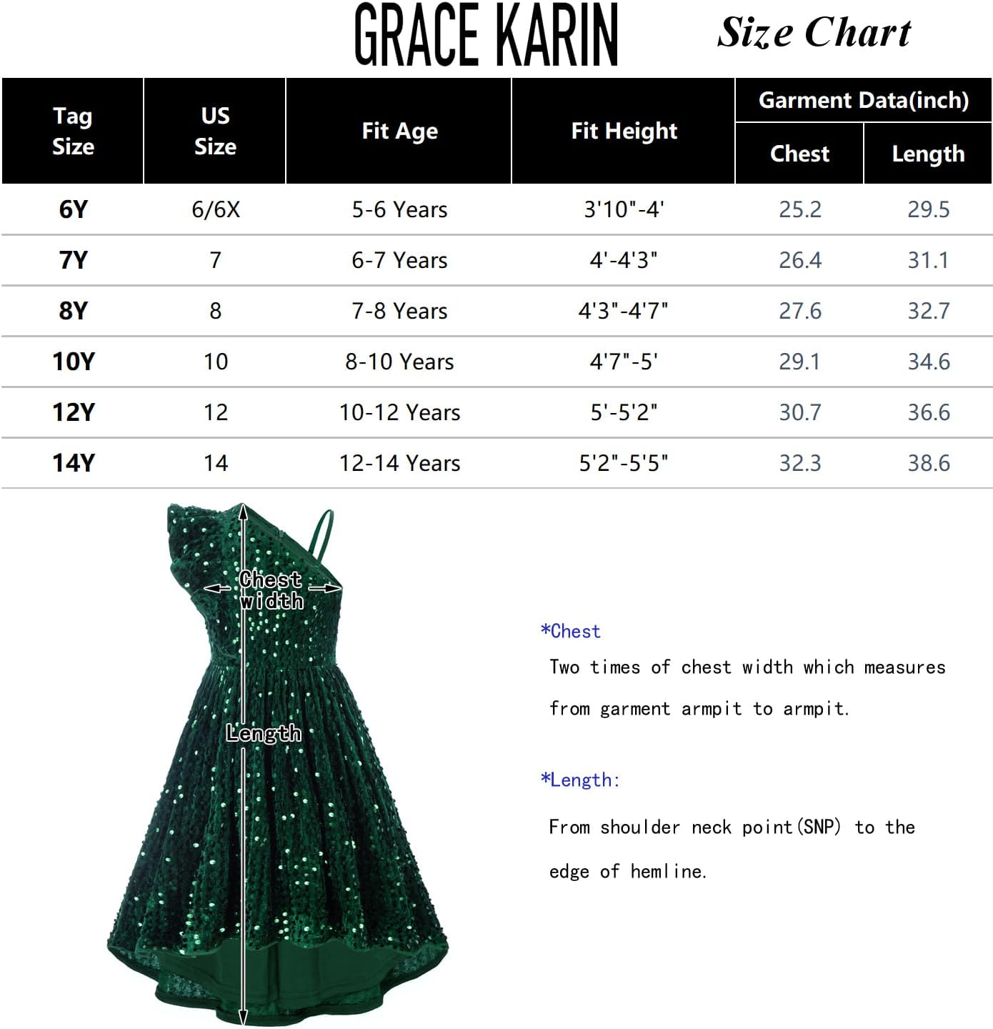 GRACE KARIN Girls One Shoulder Sequin Dress High Low Party Dress for 512YBlack