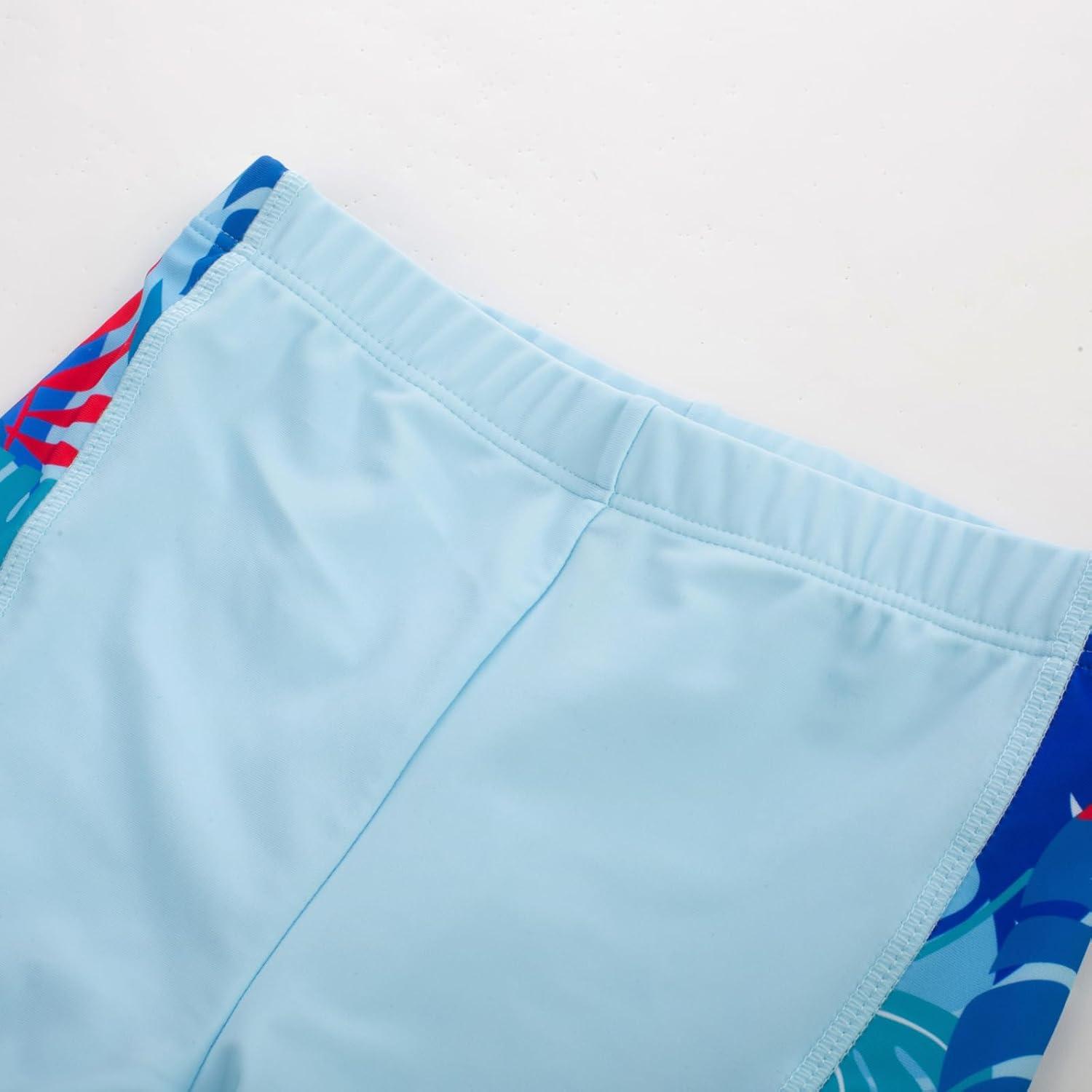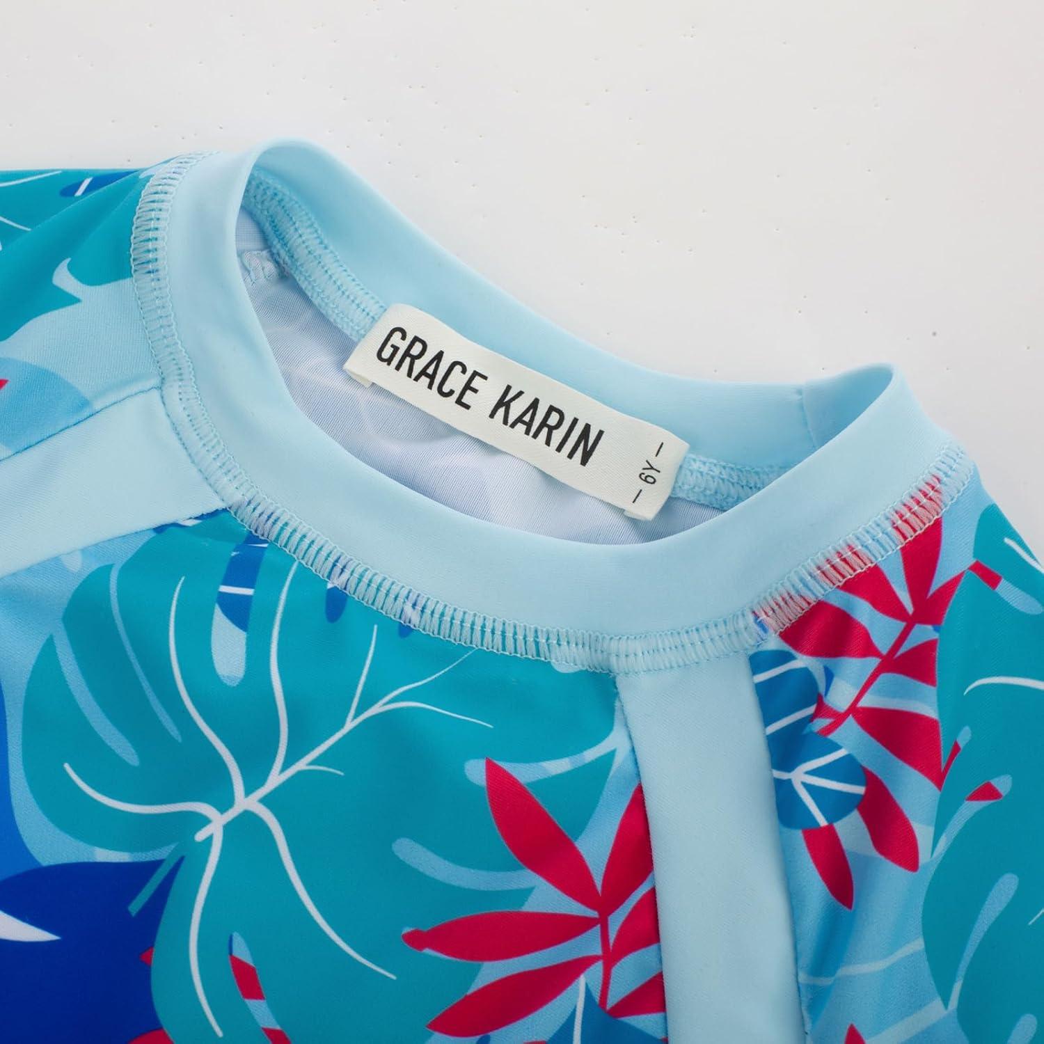 GRACE KARIN Girls Rash Guard Swimsuit Short Sleeve Two Piece Bathing Suit 6-12Y(Blue Leaves)