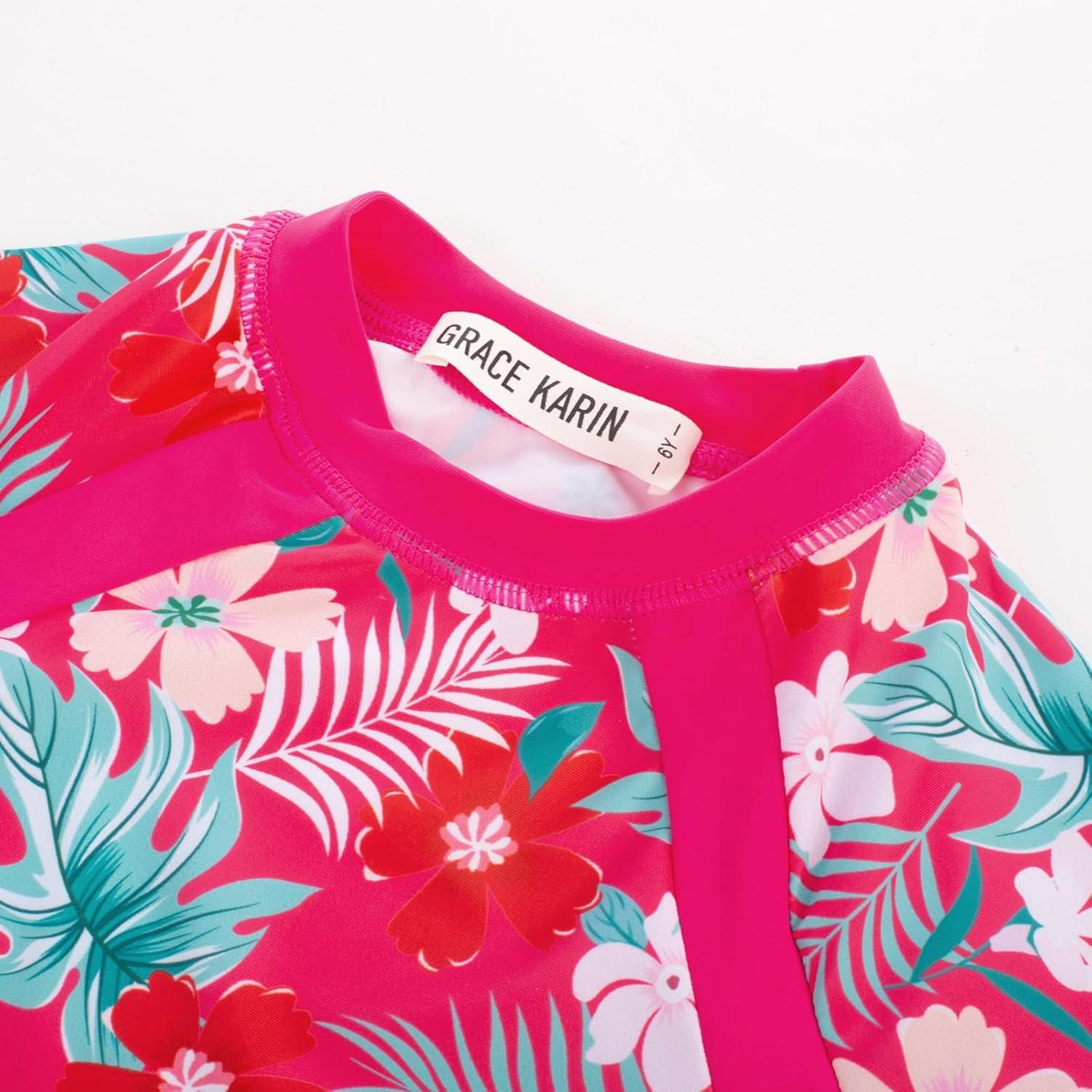 imageGRACE KARIN Girls Rash Guard Swimsuit Short Sleeve Two Piece Bathing Suit 612YPink Flowers