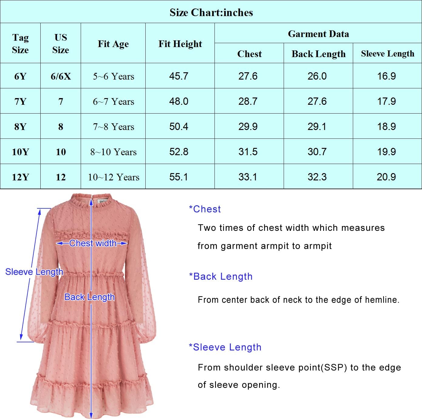 Be the first to review “GRACE KARIN Girls Ruffle Tiered Dress Long Sleeve Swiss Dot Flowy A-Line Dress 6-12Y(Purple)”
