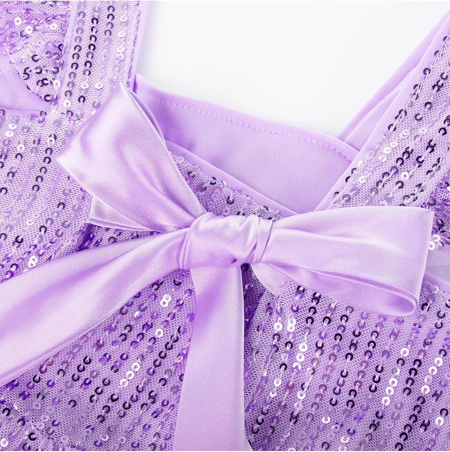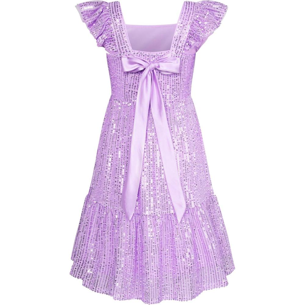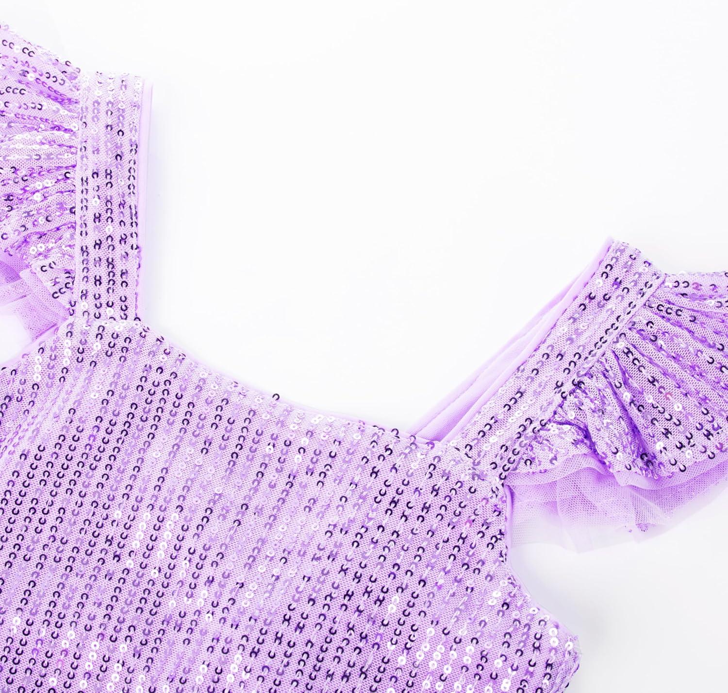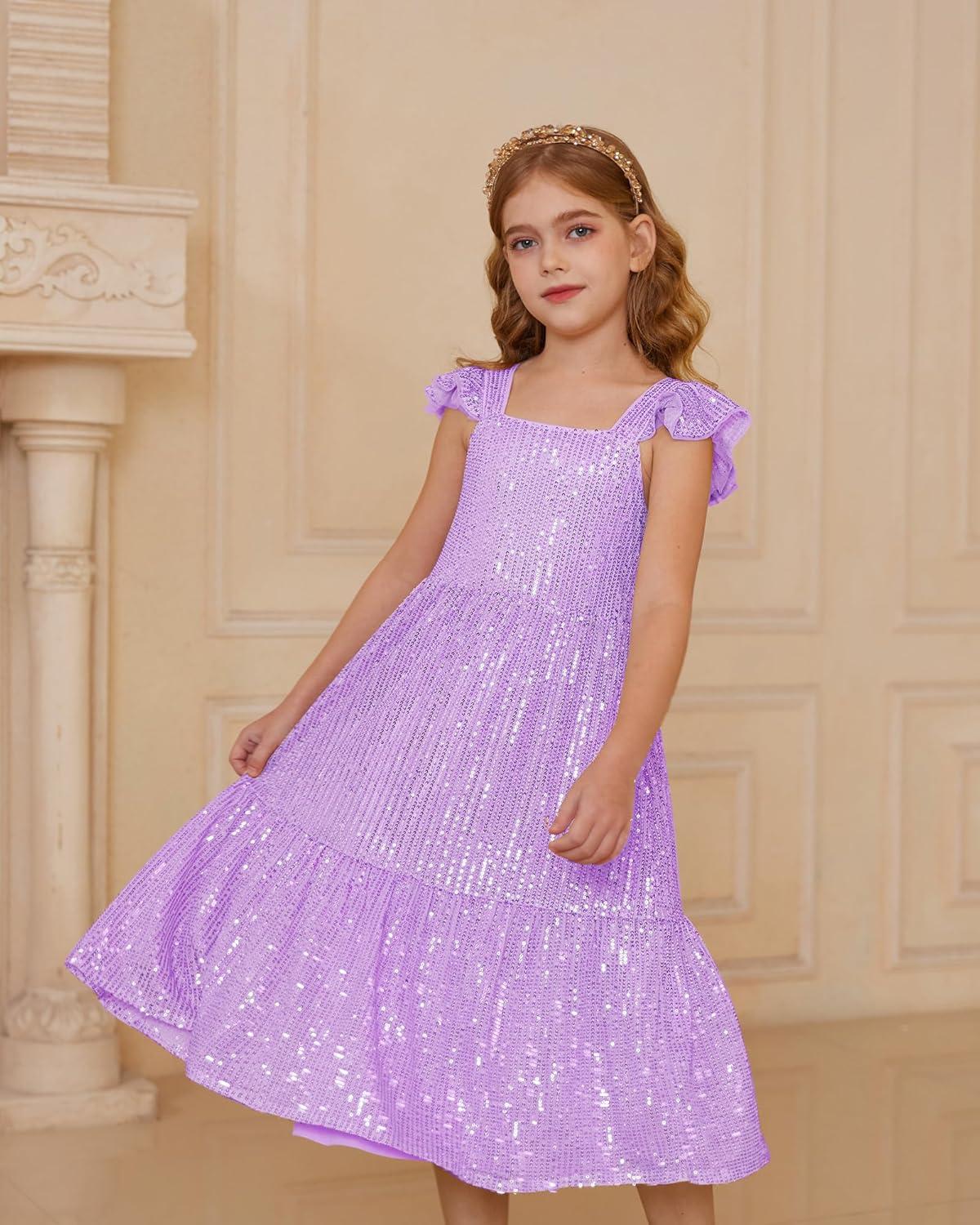 GRACE KARIN Girls Sequin Dress Flutter Sleeve A-Line Tie Back Sparkly Formal Party Dress for Girl 5-12Y(Purple)