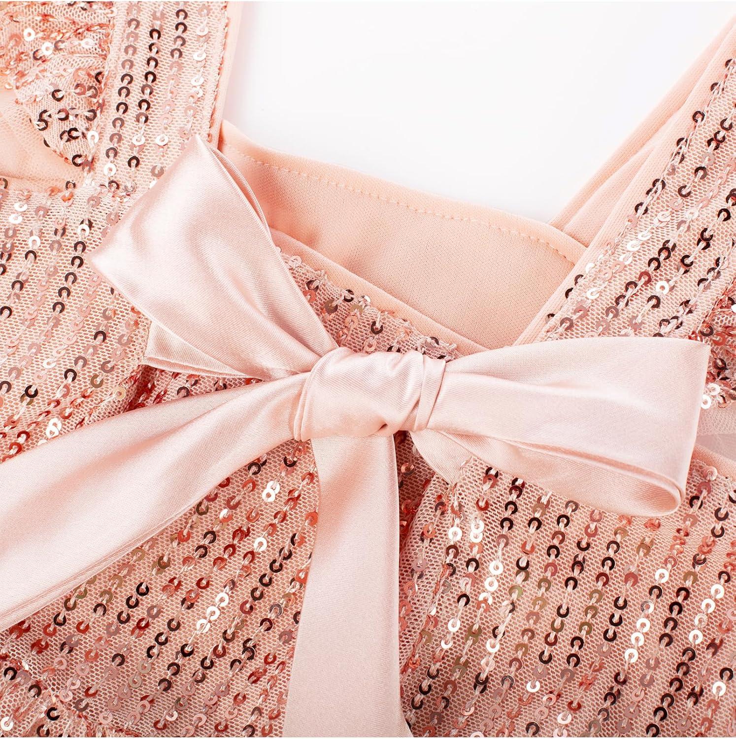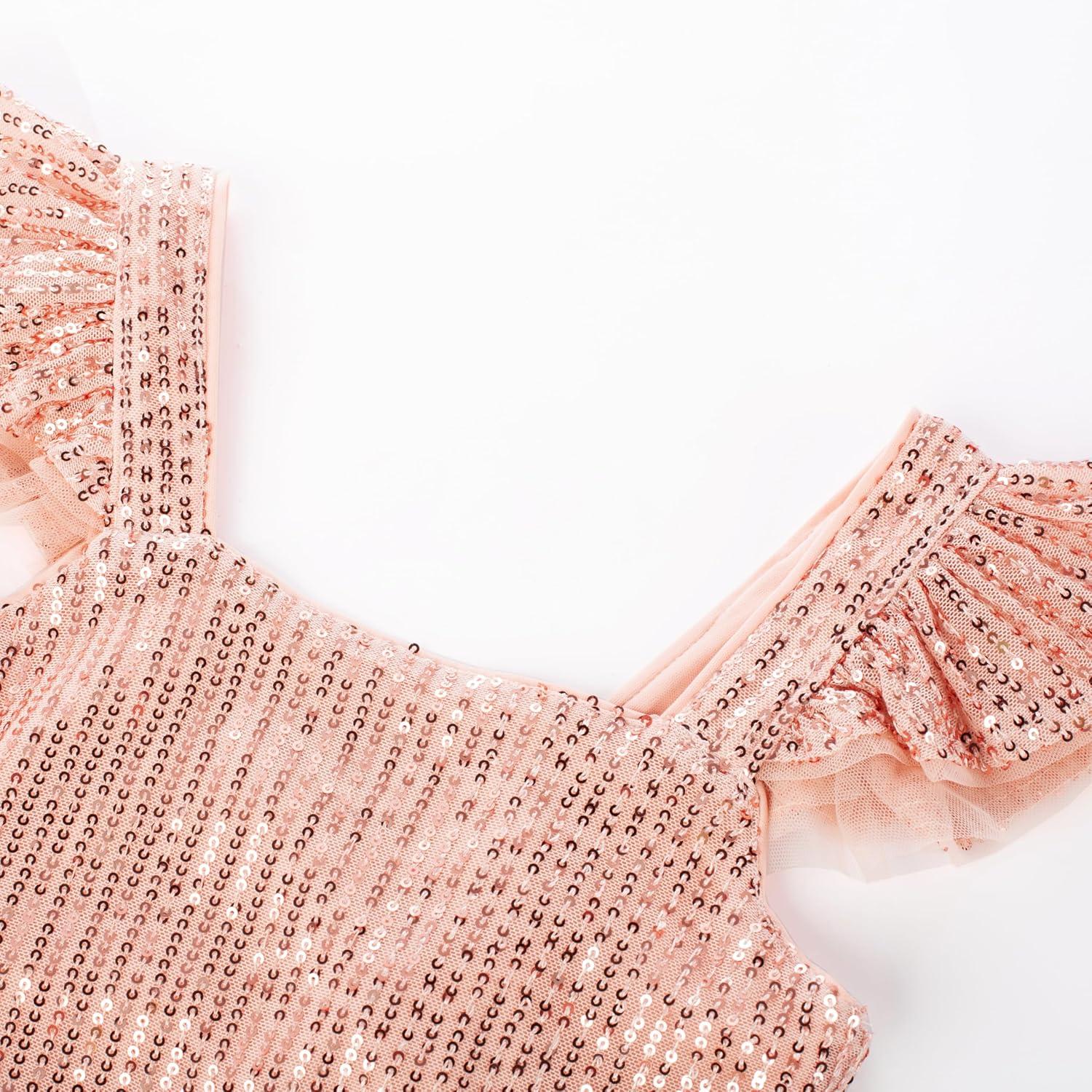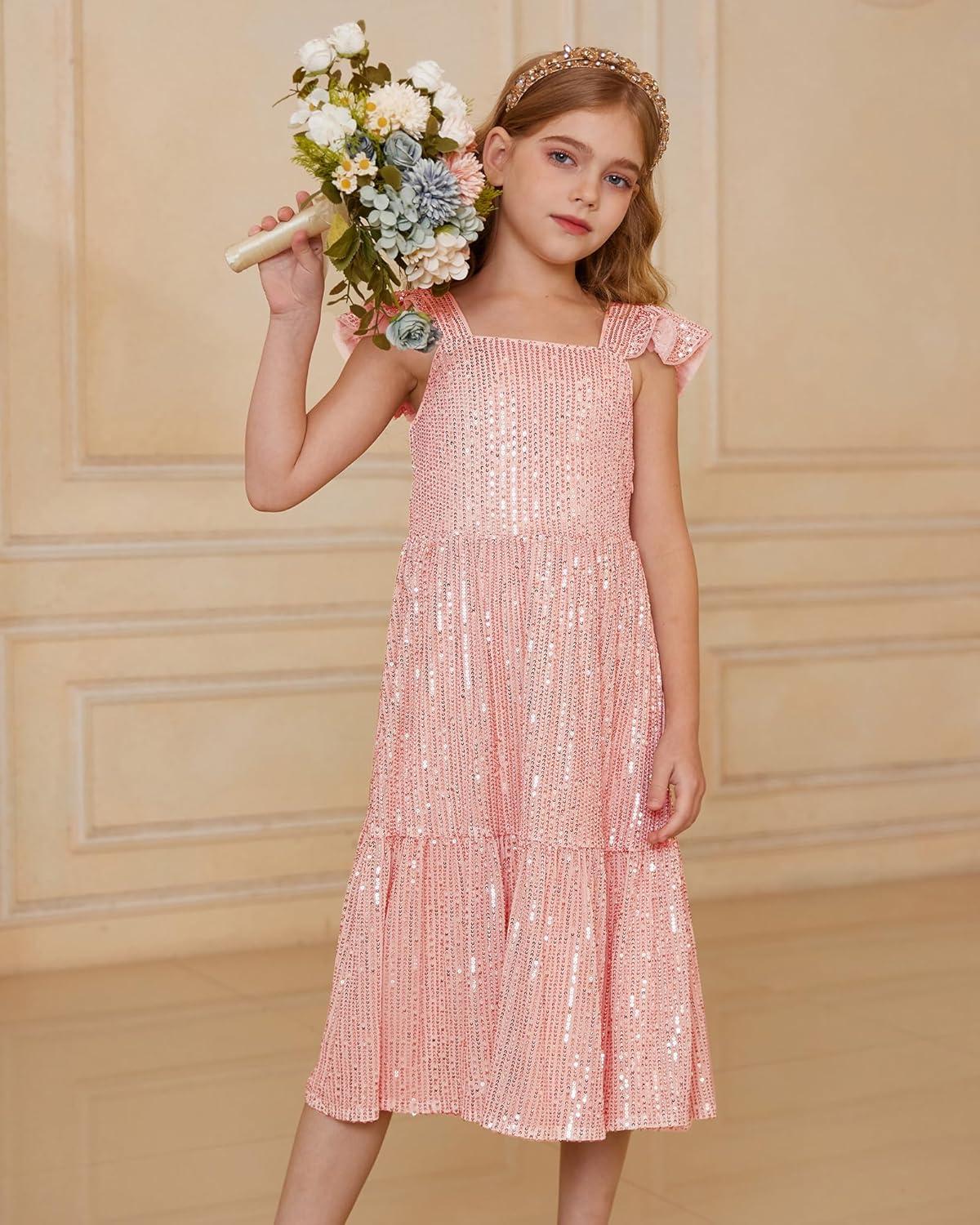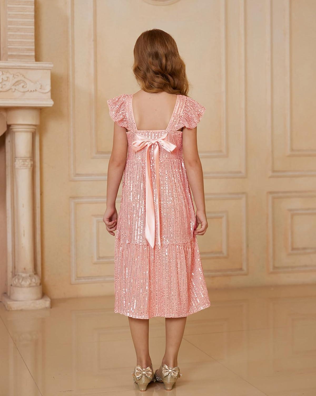 GRACE KARIN Girls Sequin Dress Flutter Sleeve A-Line Tie Back Sparkly Formal Party Dress for Girl 5-12Y(Rose Gold)