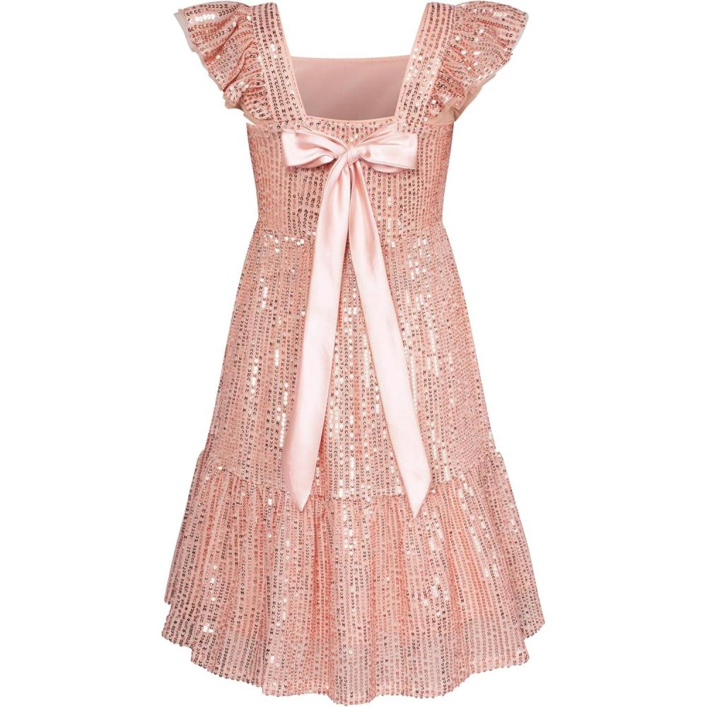 imageGRACE KARIN Girls Sequin Dress Flutter Sleeve ALine Tie Back Sparkly Formal Party Dress for Girl 512YRose Gold
