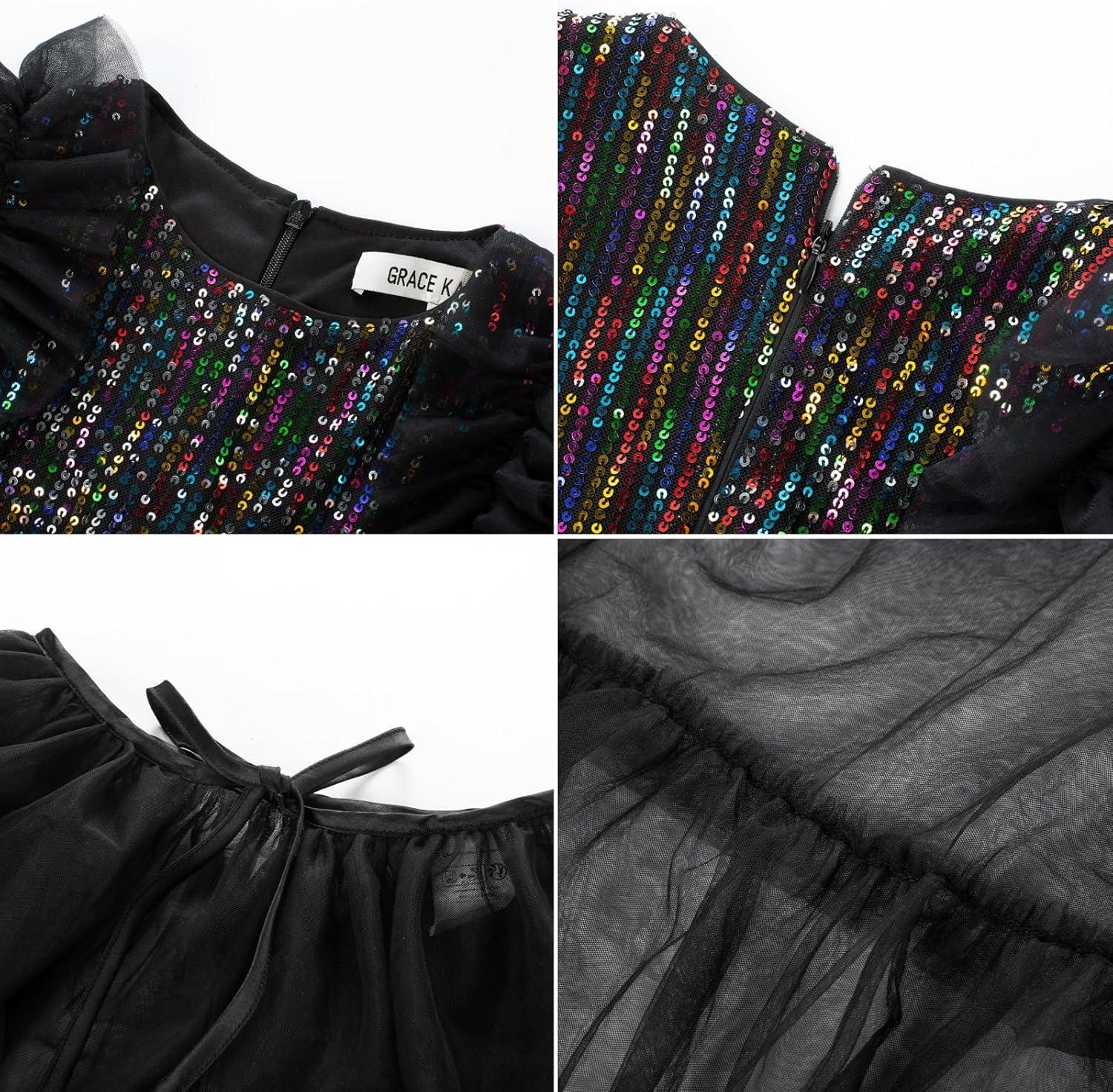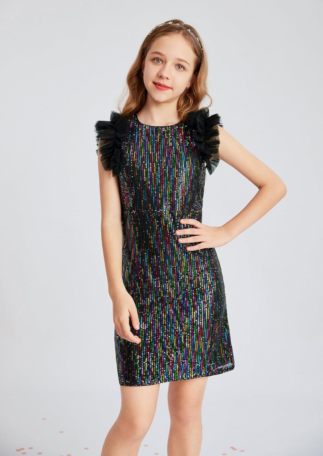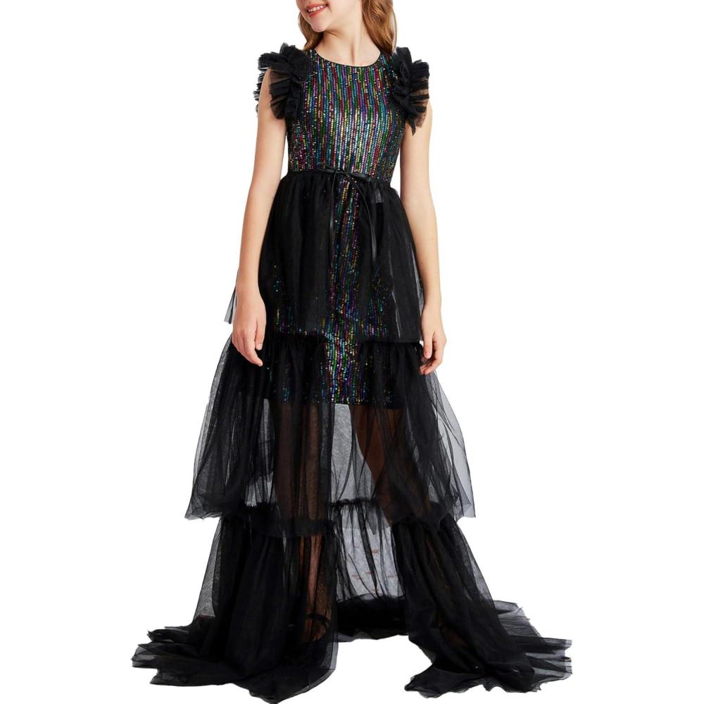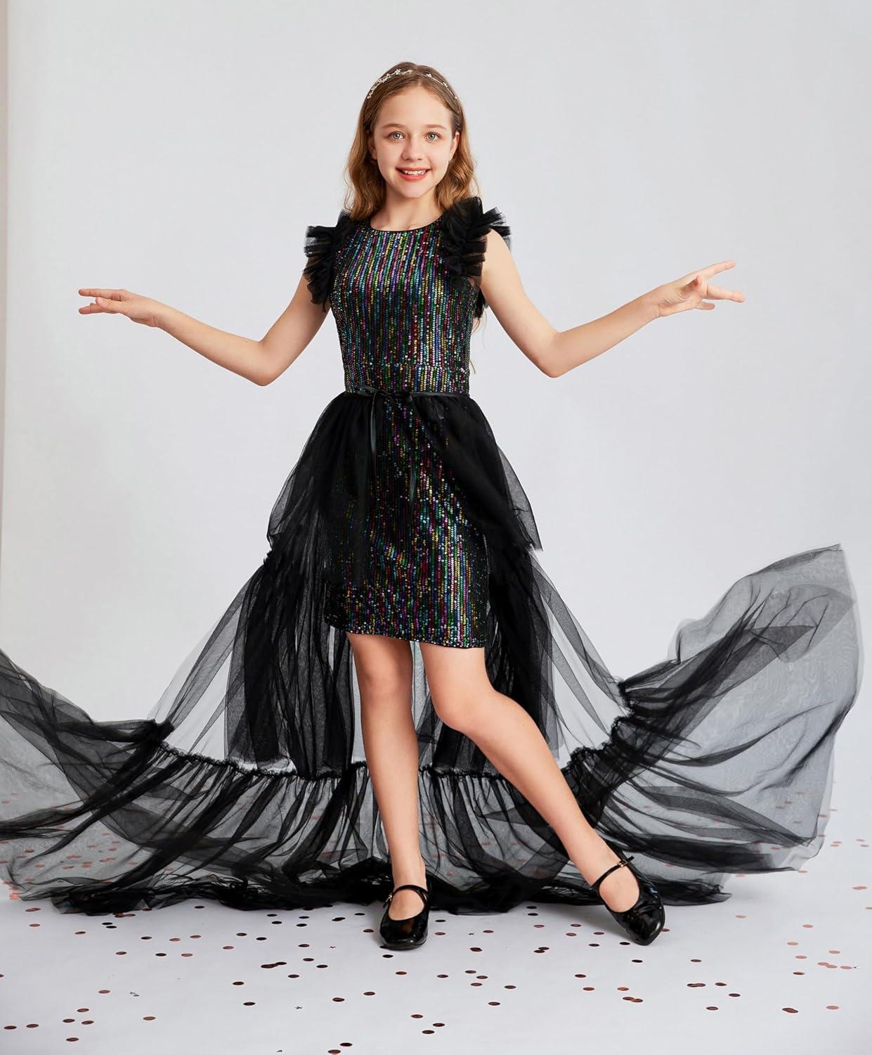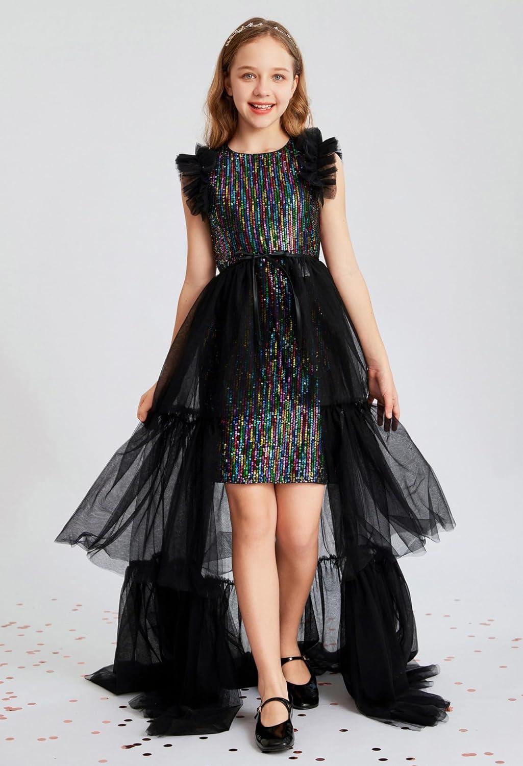 GRACE KARIN Girls Sequin Dress Formal Pageant Sparkle Party Ruffle Prom Maxi Dress Size 5-14Y(Black Multicolor)