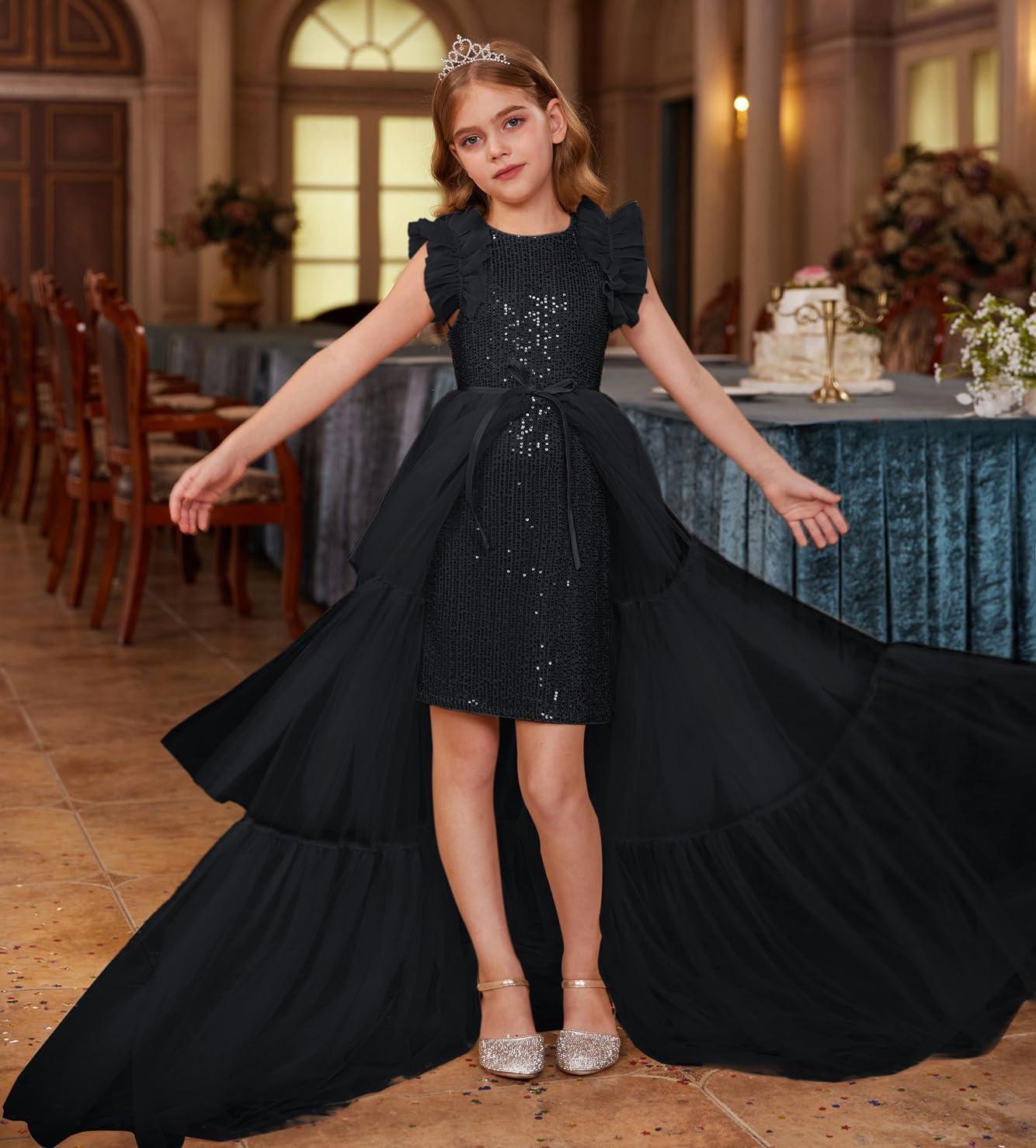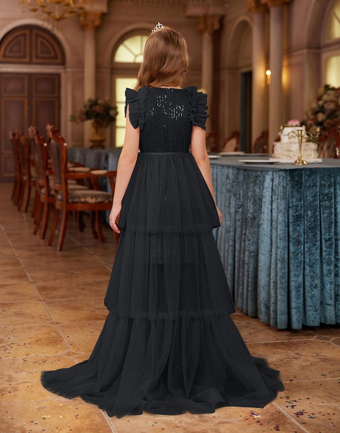 GRACE KARIN Girls Sequin Dress Formal Pageant Sparkle Party Ruffle Prom Maxi Dress Size 5-14Y(Black)