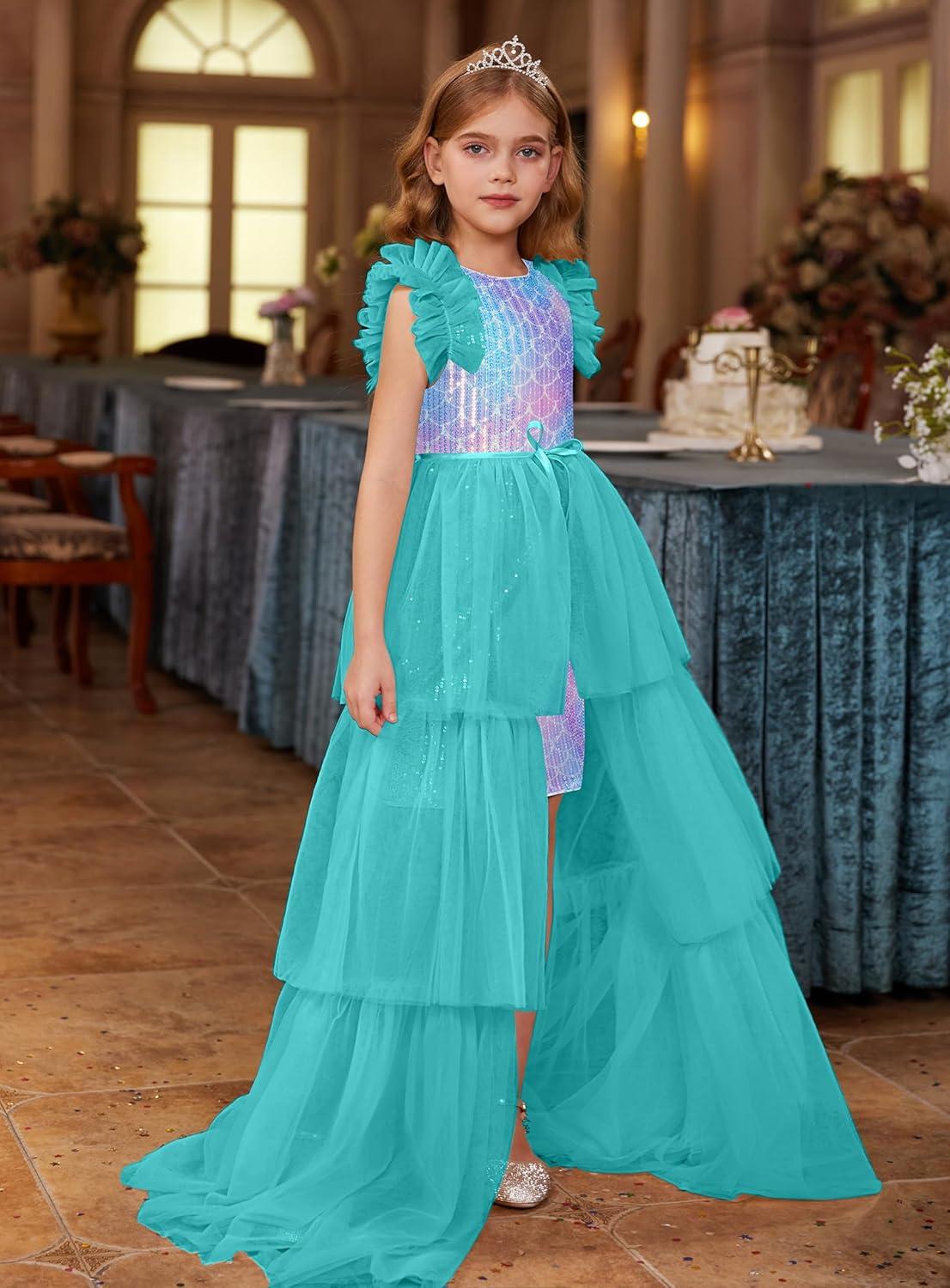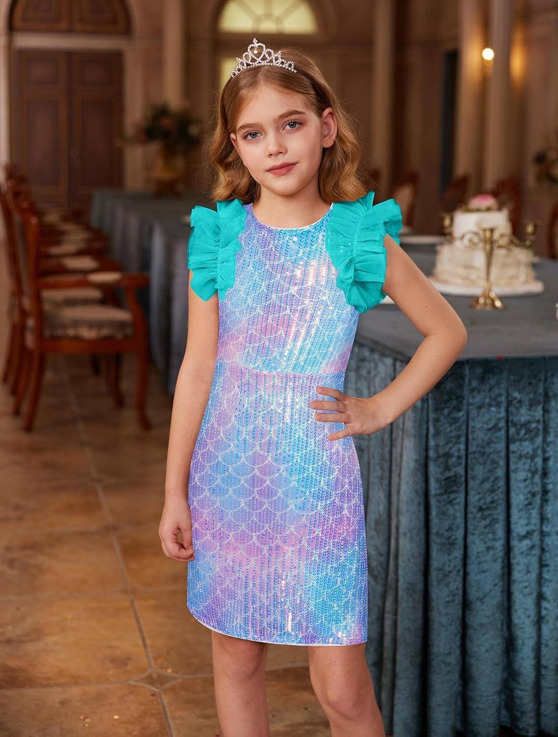 GRACE KARIN Girls Sequin Dress Formal Pageant Sparkle Party Ruffle Prom Maxi Dress Size 5-14Y(Gradient Mermaid)