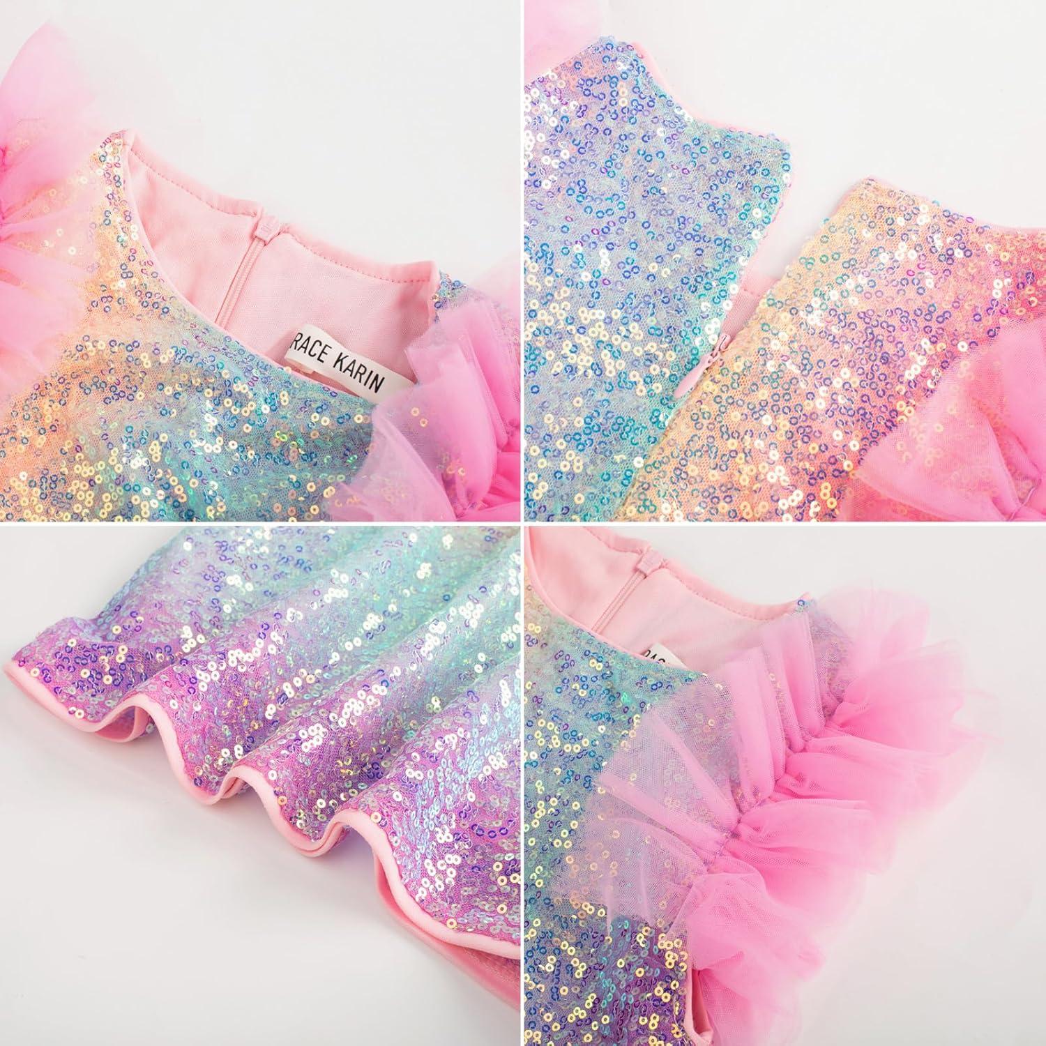 GRACE KARIN Girls Sequin Dress Formal Pageant Sparkle Party Ruffle Prom Maxi Dress Size 5-14Y(Rainbow Multicolor)