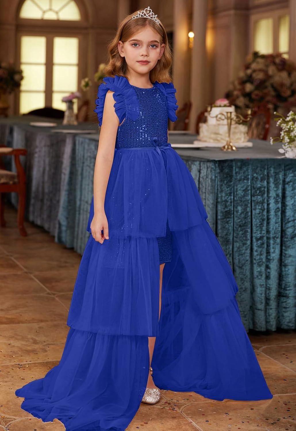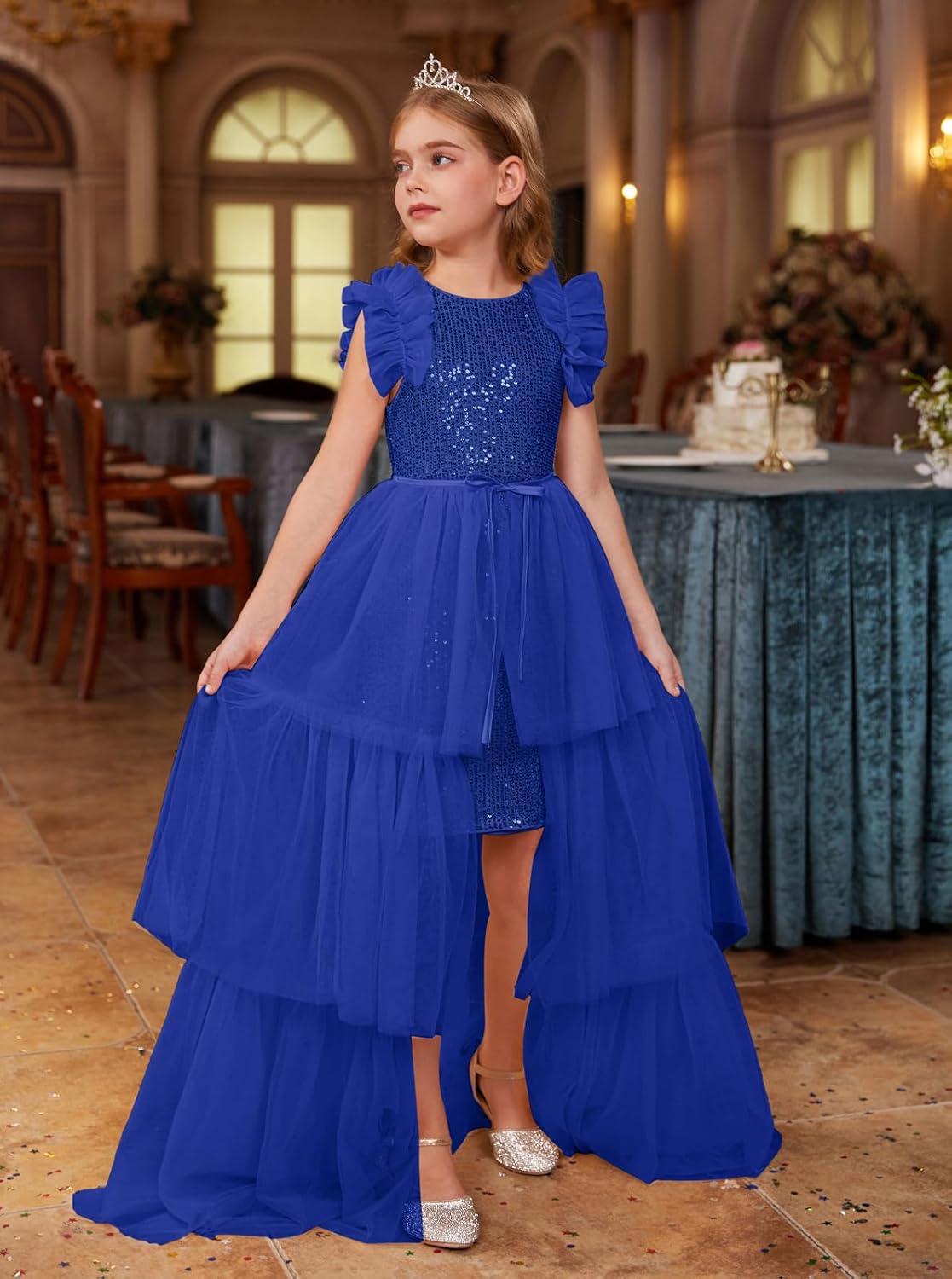 GRACE KARIN Girls Sequin Dress Formal Pageant Sparkle Party Ruffle Prom Maxi Dress Size 5-14Y(Royal Blue)