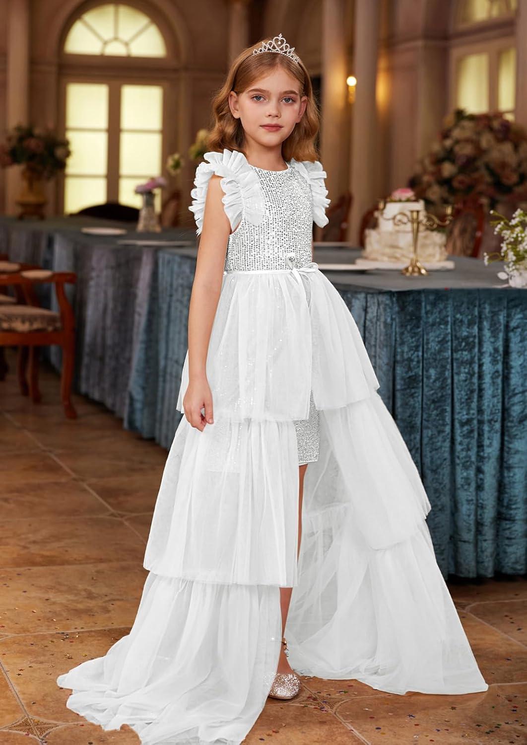 GRACE KARIN Girls Sequin Dress Formal Pageant Sparkle Party Ruffle Prom Maxi Dress Size 5-14Y(Silver)