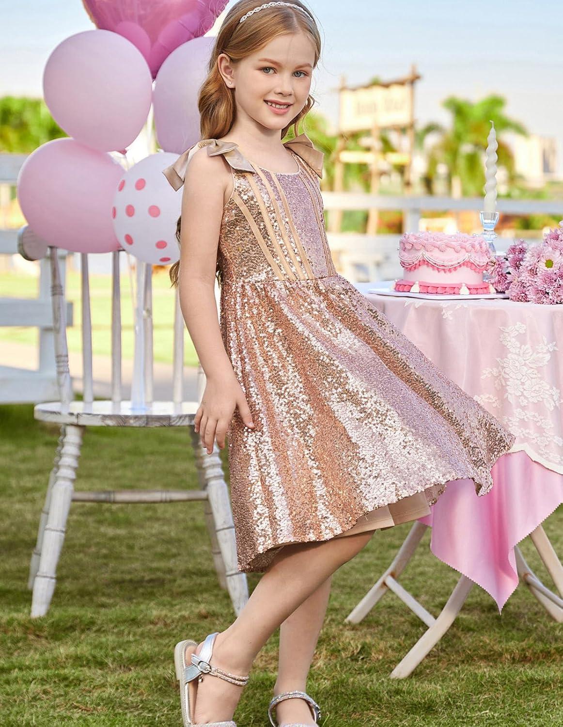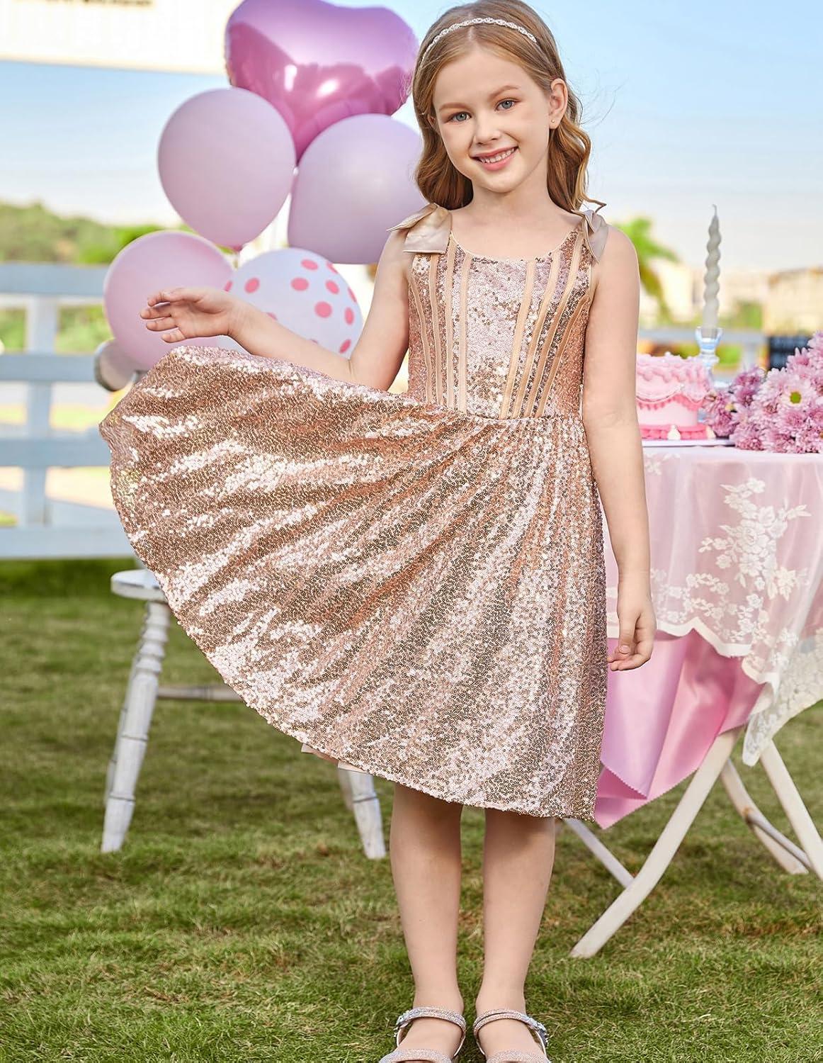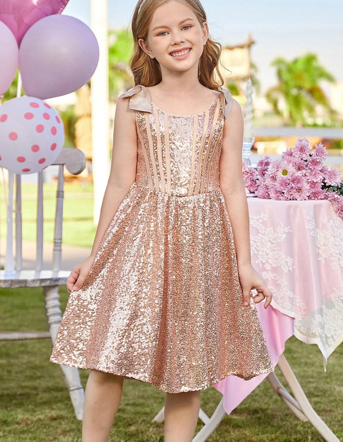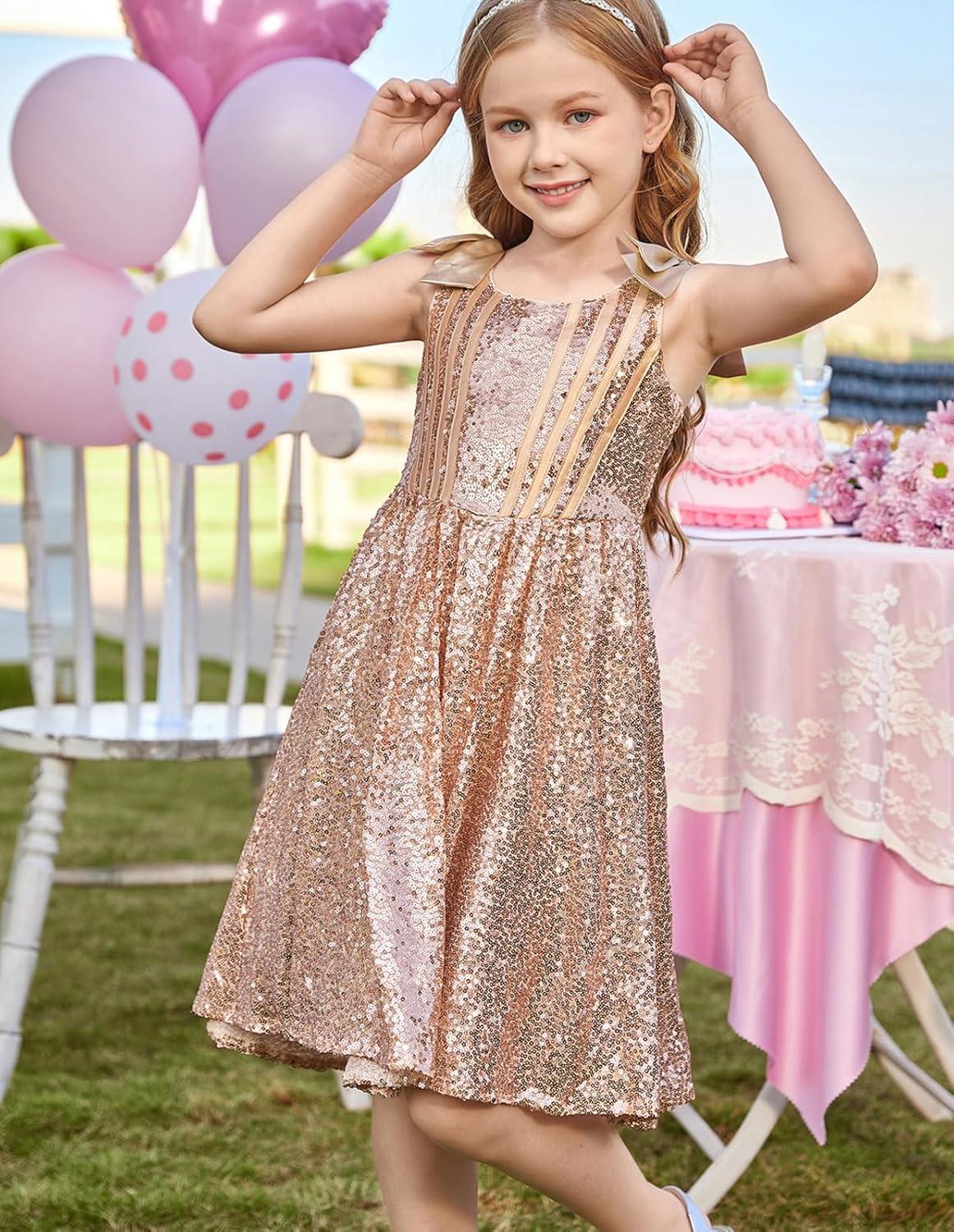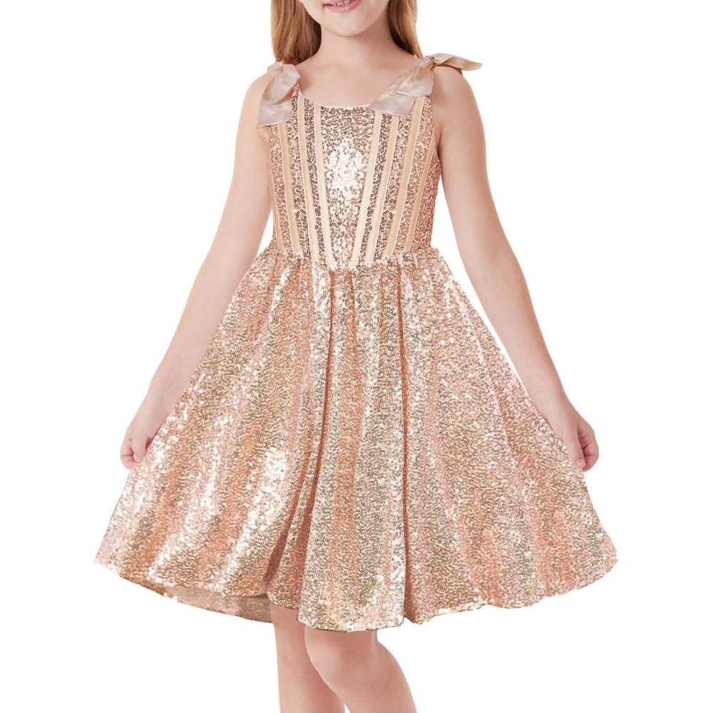 GRACE KARIN Girls Sequin Dress Formal Party Fancy Gold Special Occasion Sparkly Sleeveless Size 6-12(Gold)