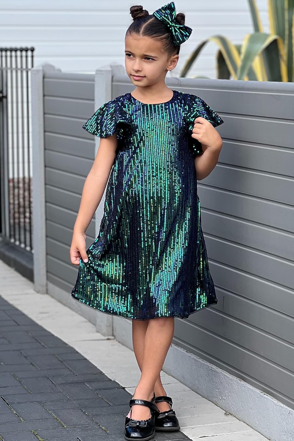 Be the first to review “GRACE KARIN Girls Sequin Dress Short Flutter Sleeve Flare Silhouette Midi Dress with Hairbow 5-12Y(Green on Black)” Cancel reply