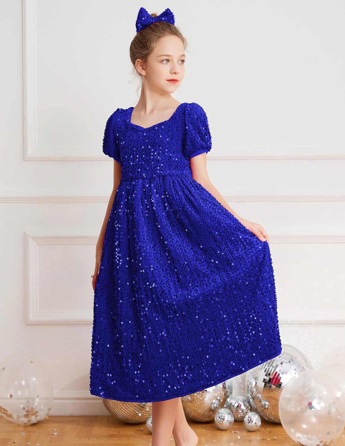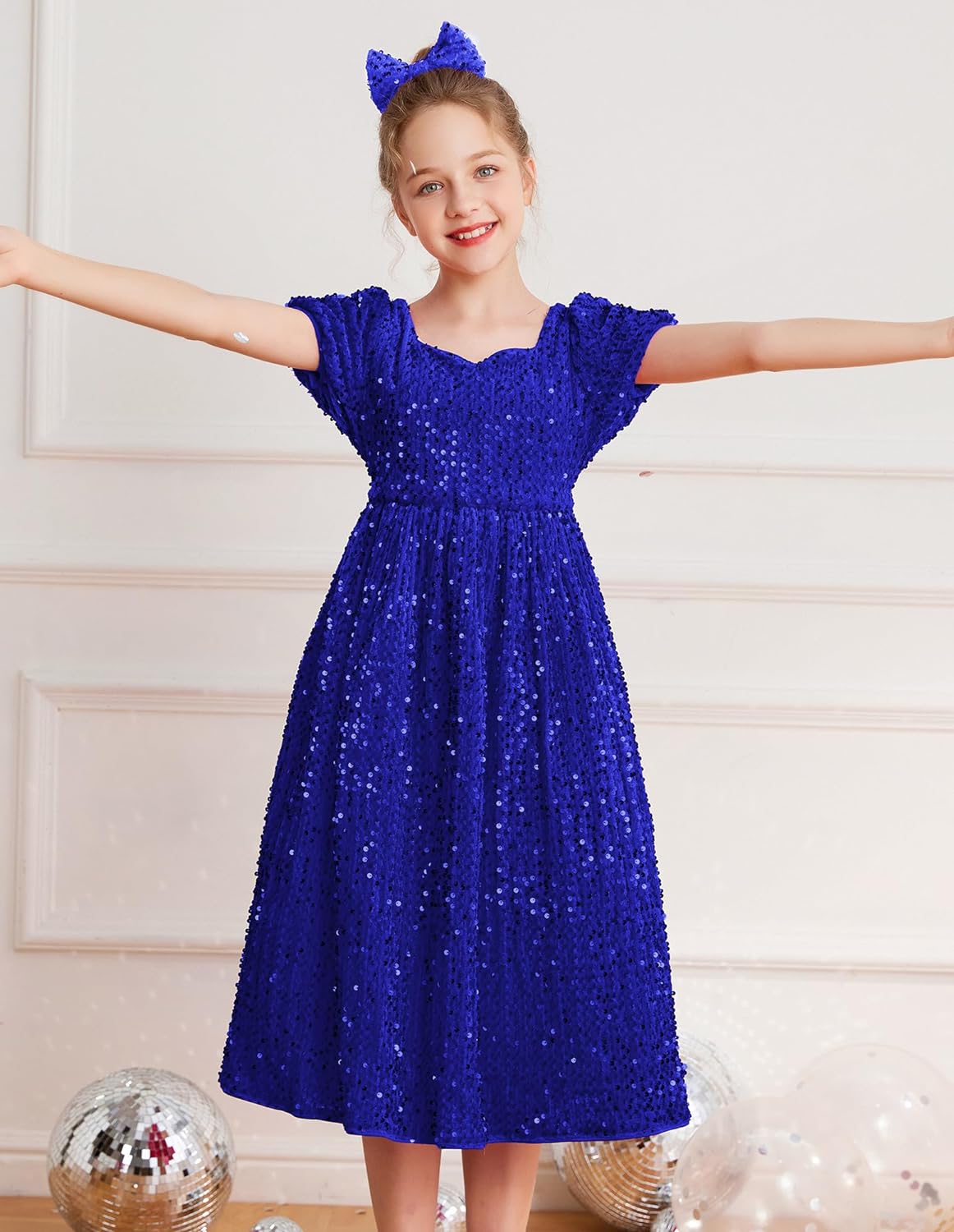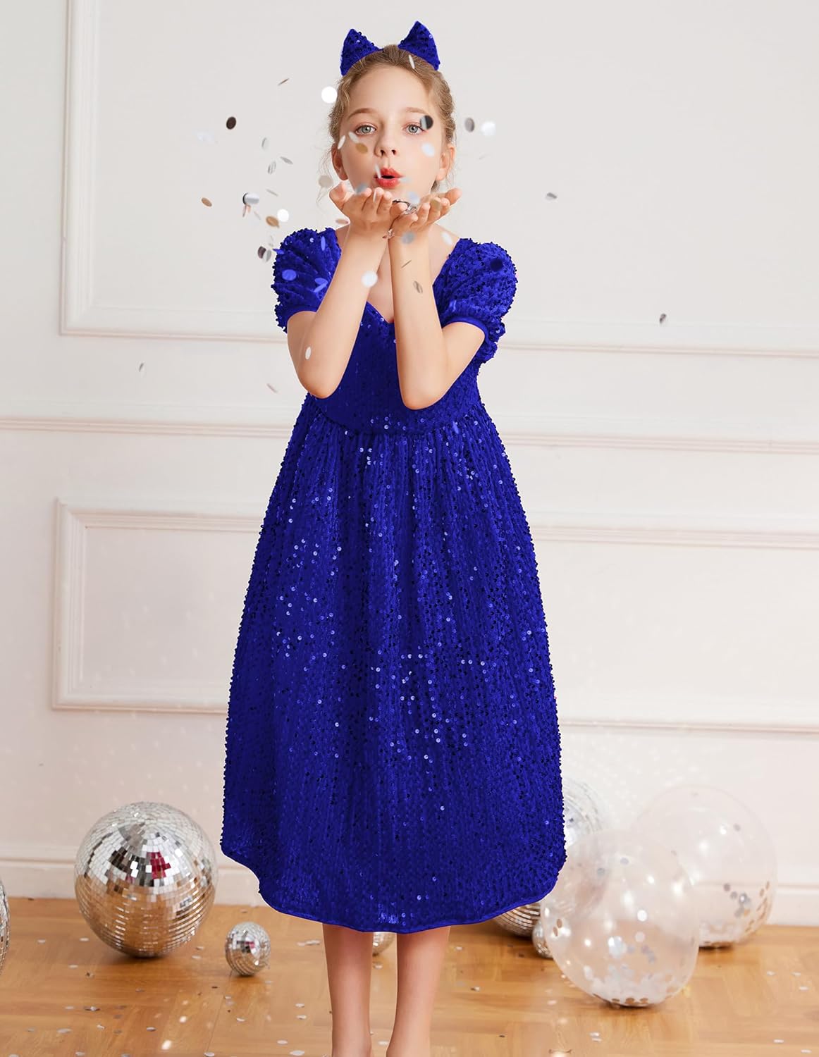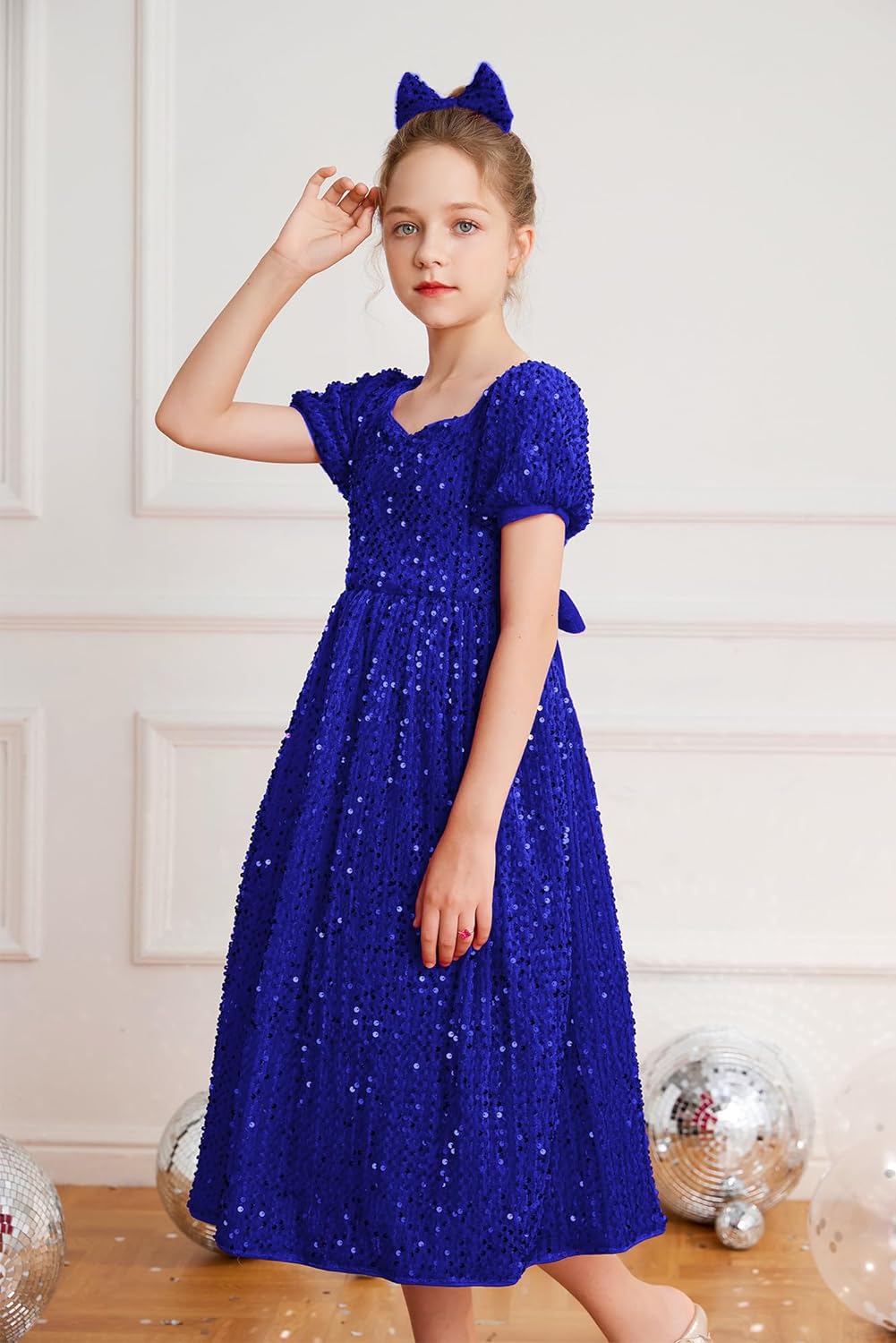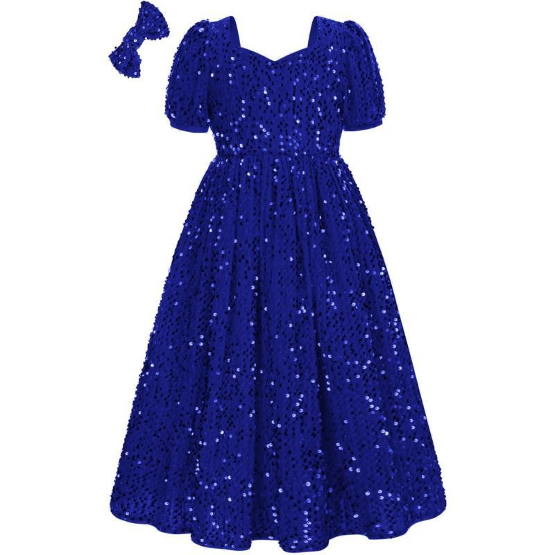 GRACE KARIN Girls Sequin Dress Short Sleeve Sparkly Princess Party Maxi Dress 512YRoyal Blue