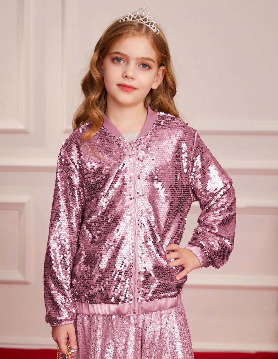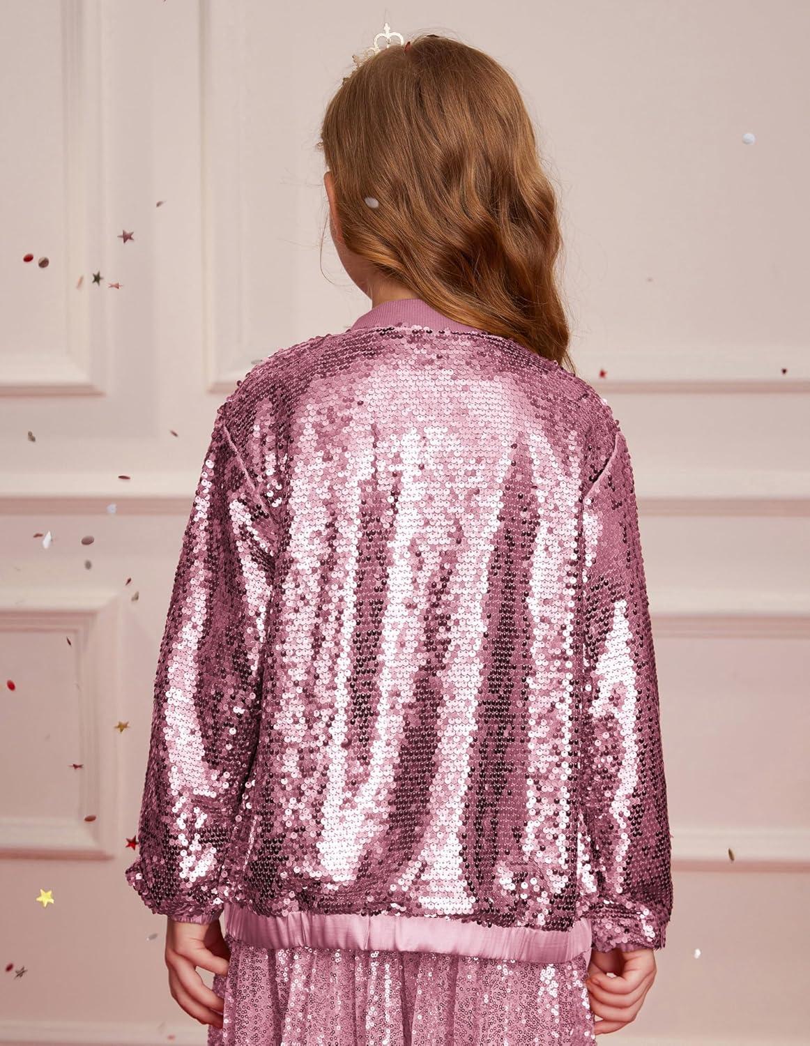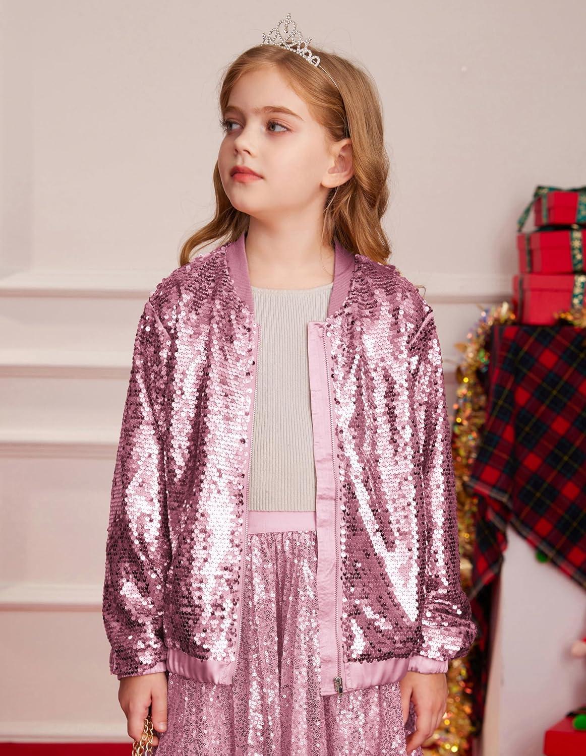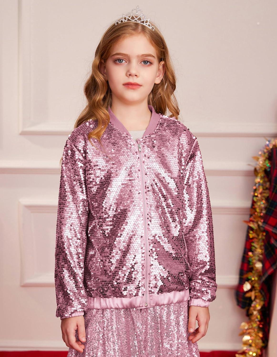 GRACE KARIN Girls Sequin Jacket Kids Bomber Zip Outwear Sparkle Fall Costume Top Dress Coat Size 5-14(Peach Pink)