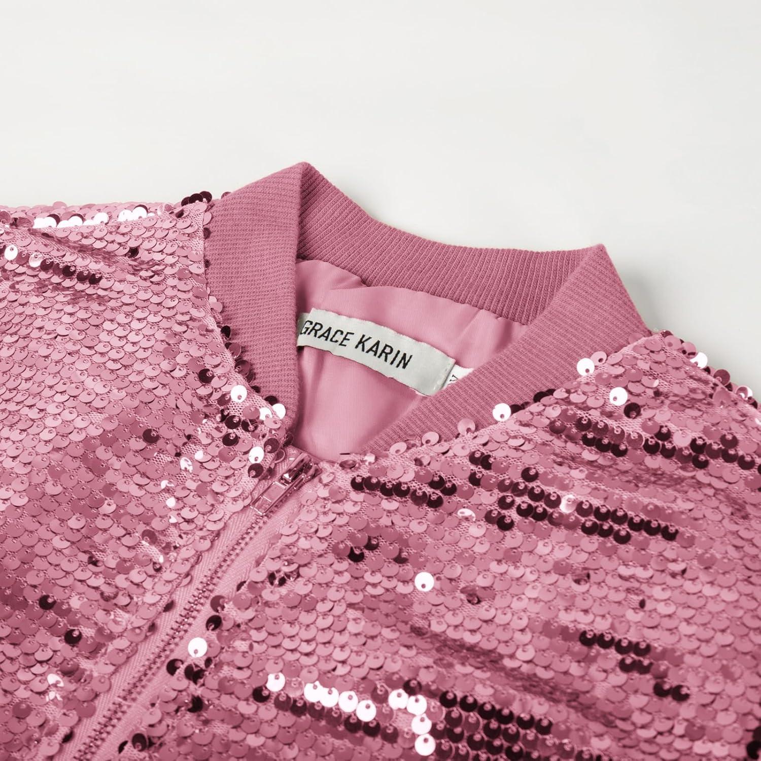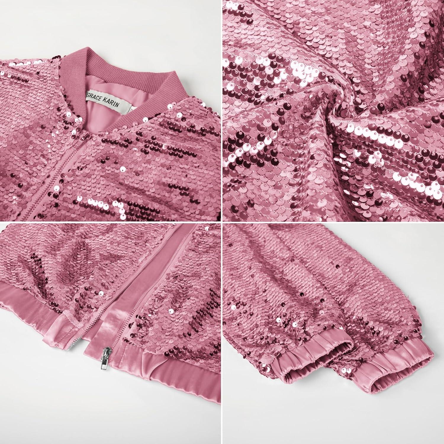 Get more for your money with our exclusive bundle deals on GRACE KARIN Girls Sequin Jacket Kids Bomber Zip Outwear Sparkle Fall Costume Top Dress Coat Size 5-14(Peach Pink) and accessories.