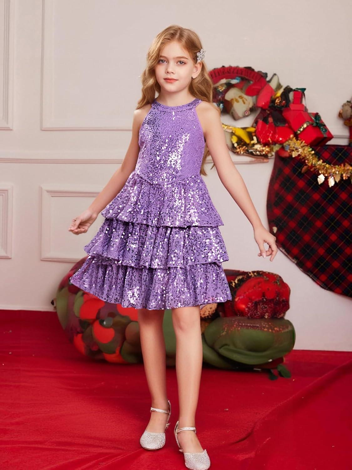 GRACE KARIN Girls Sequin Party Dress Sparkly Formal Birthday Special Occasion Kids Fancy Pageant Teen Dresses Size 6-14(Purple)