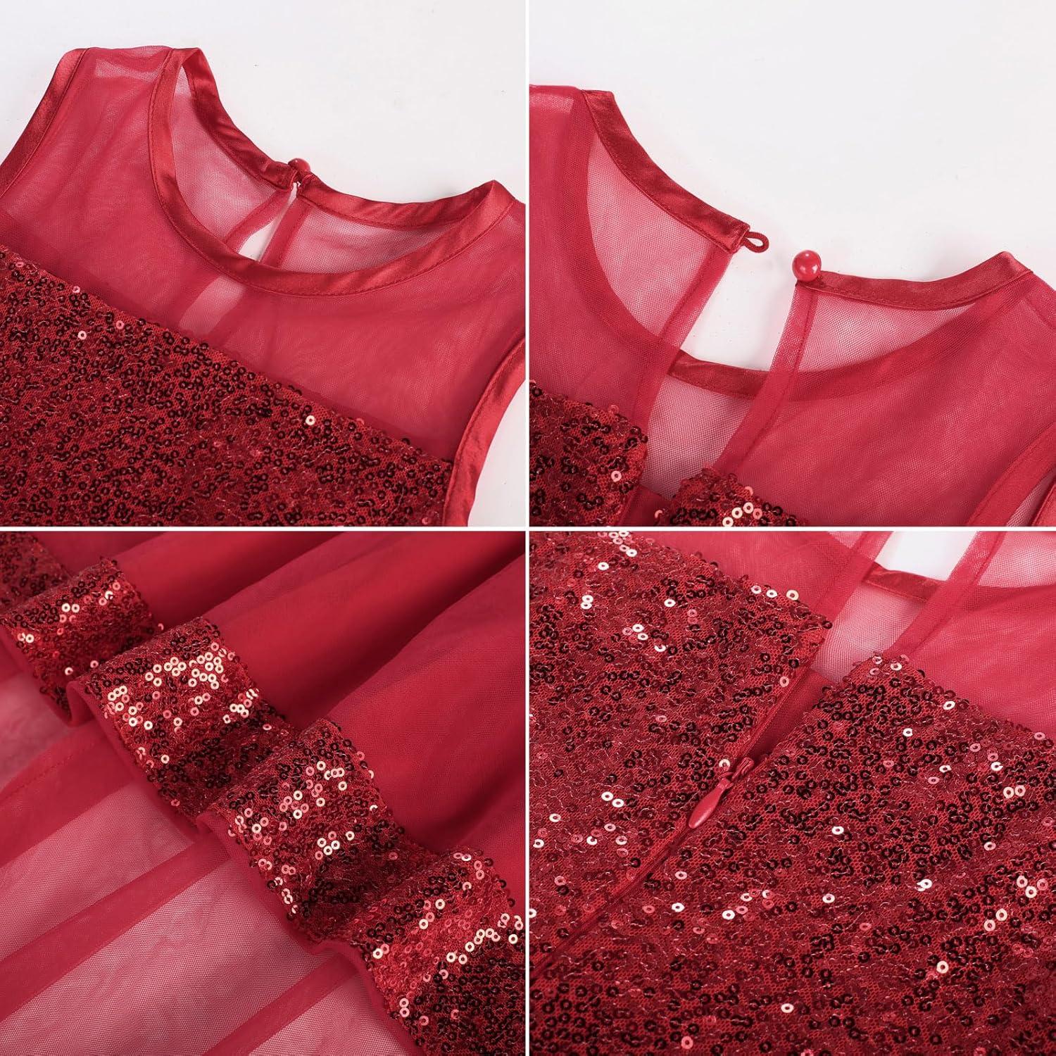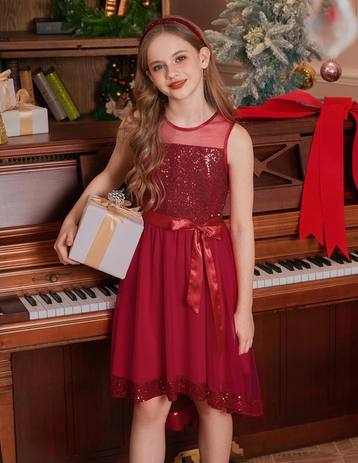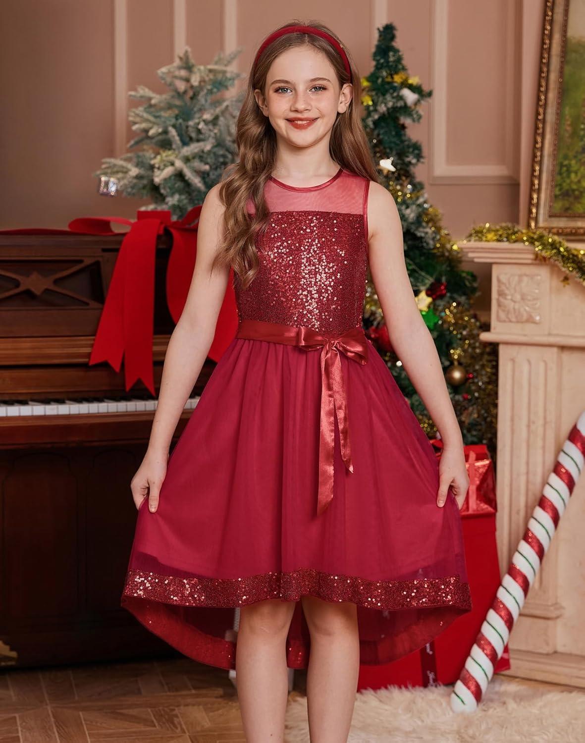GRACE KARIN Girls Sequin Party Formal Dress Wedding Guest Sparkle Fancy Birthday Tulle High Low Prom Dresses 6-14 Years(Red)