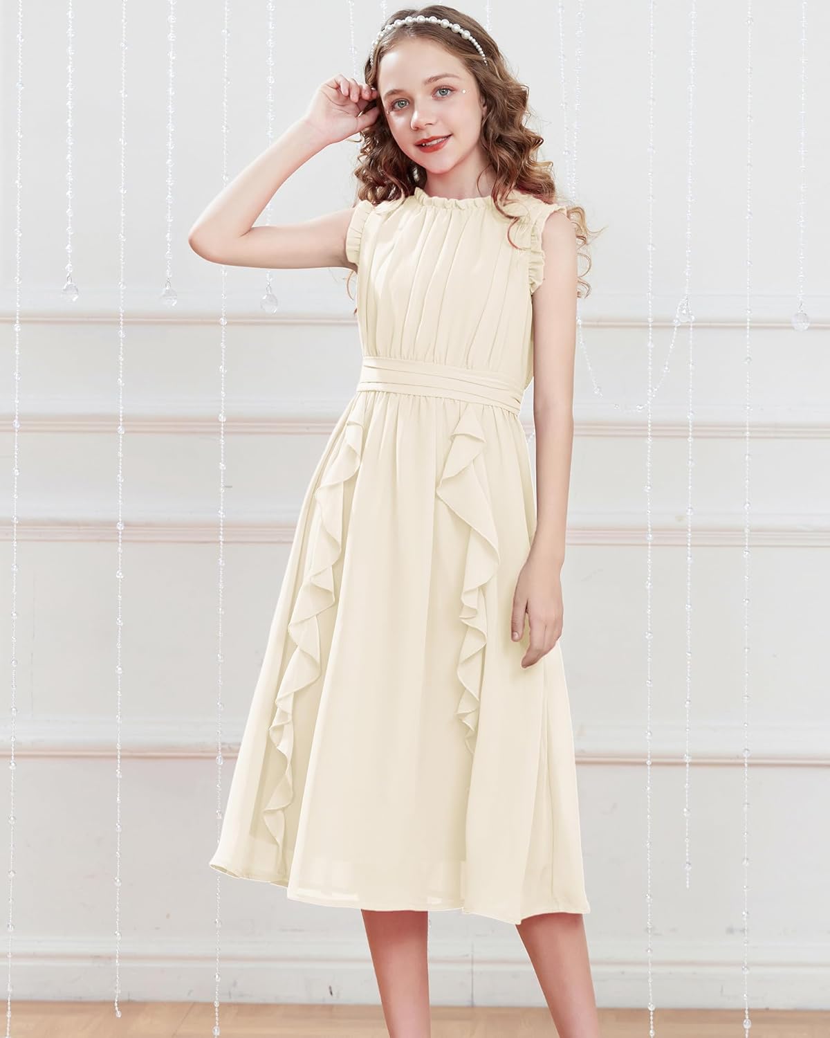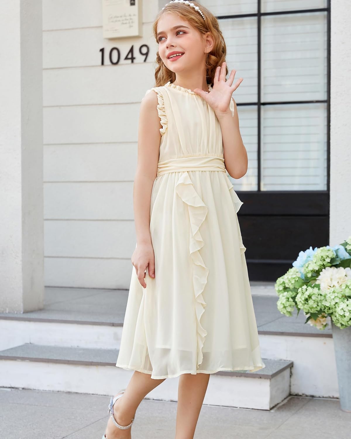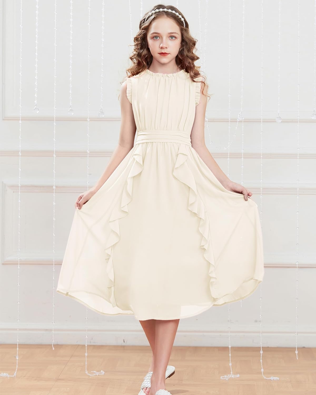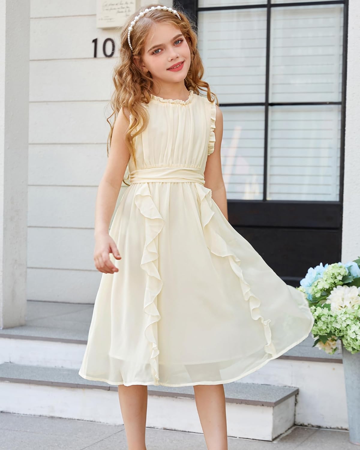 GRACE KARIN Girls Sleeveless Summer Casual Ruffle A-Line Holiday Dresses 5-12Y(Ivory White)