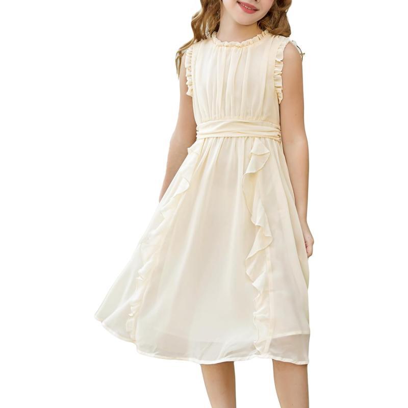 GRACE KARIN Girls Sleeveless Summer Casual Ruffle ALine Holiday Dresses 512YIvory White