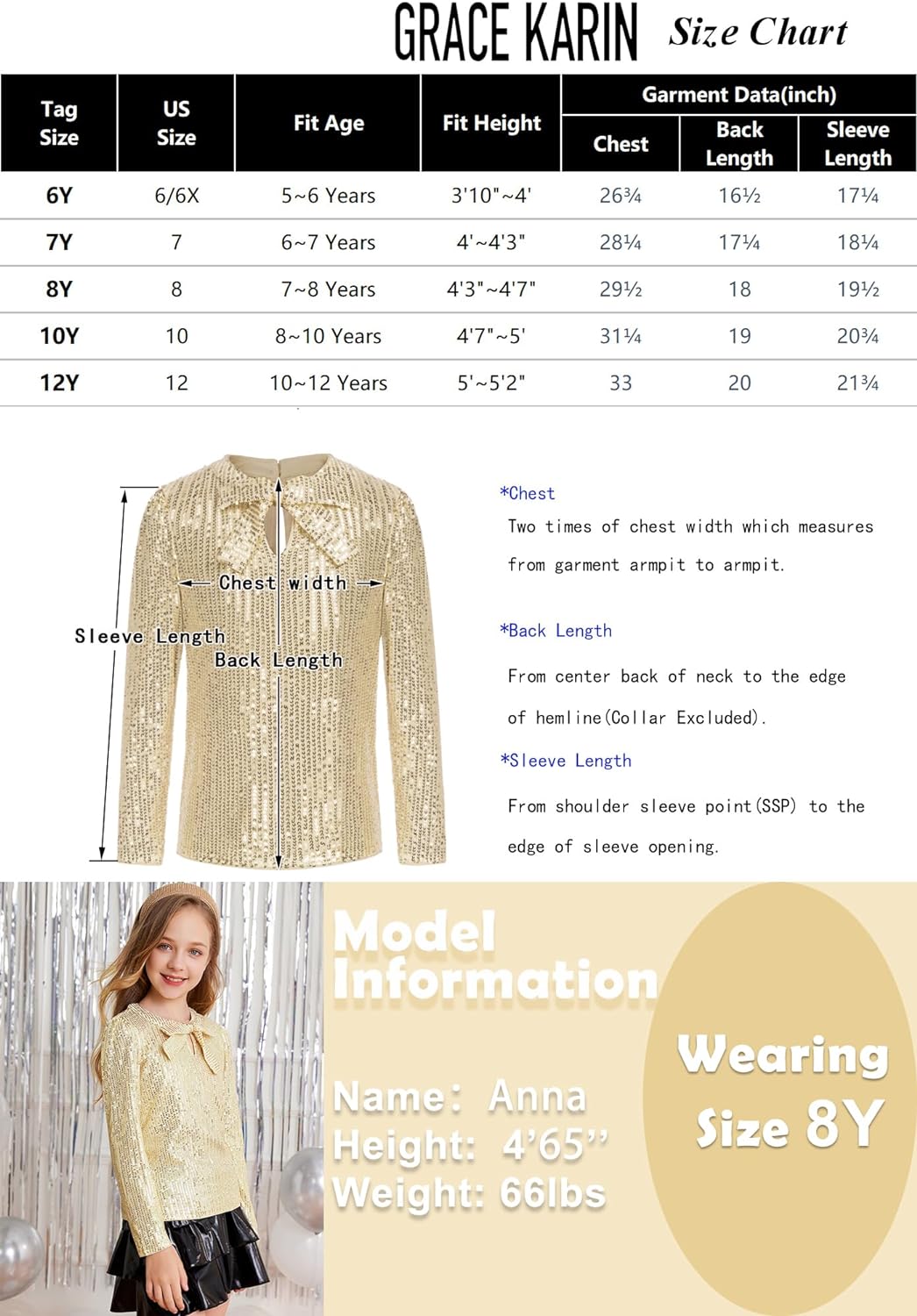 Be the first to review “GRACE KARIN Girls Sparkly Sequin Tops Long Sleeve Crew Neck Glitter Blouse Shirt with Fixed Bowknot for Party(Gold)”