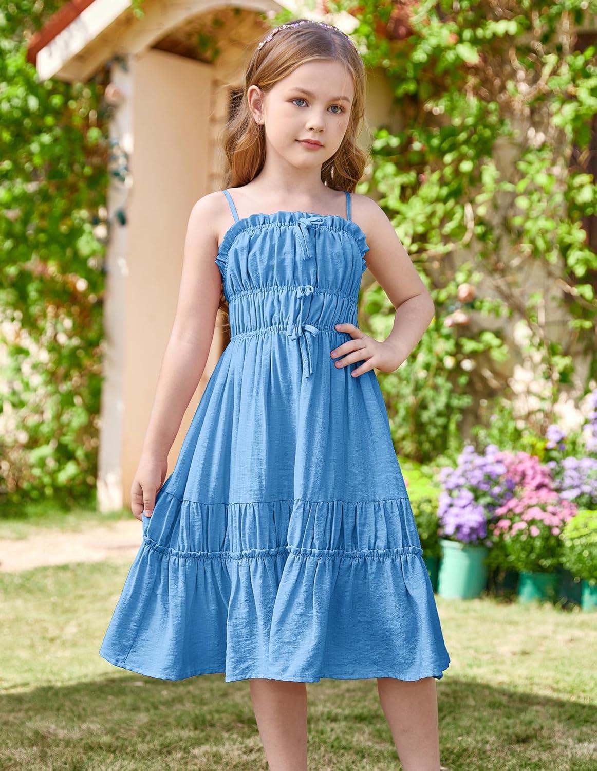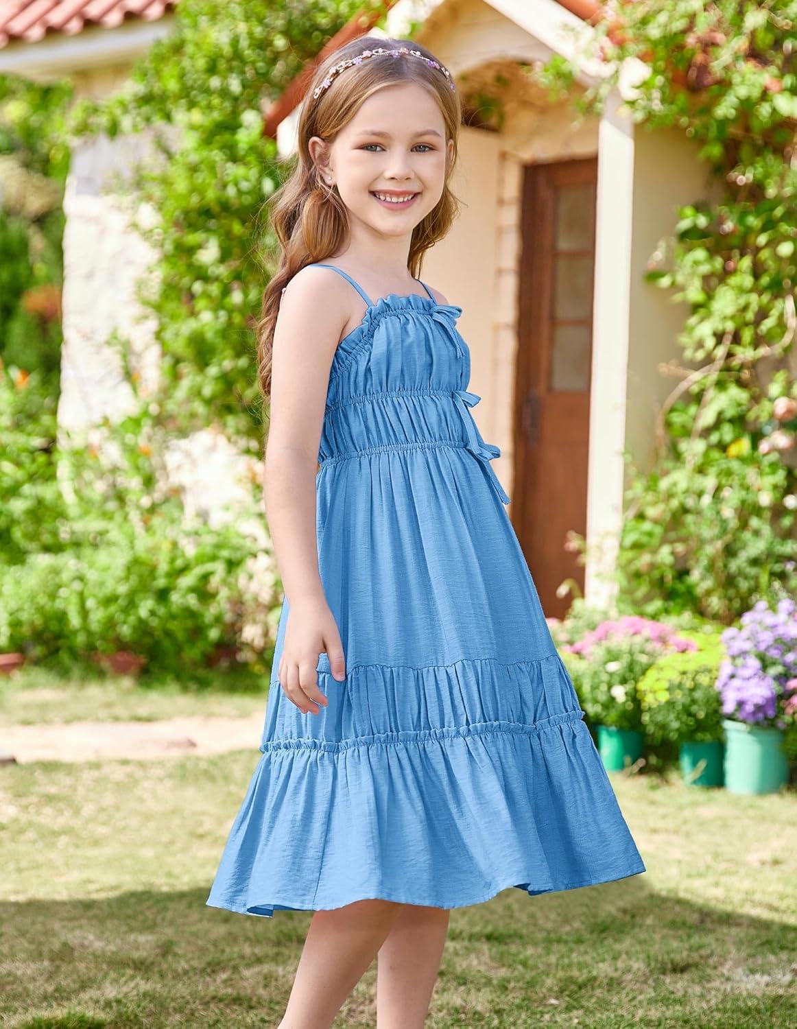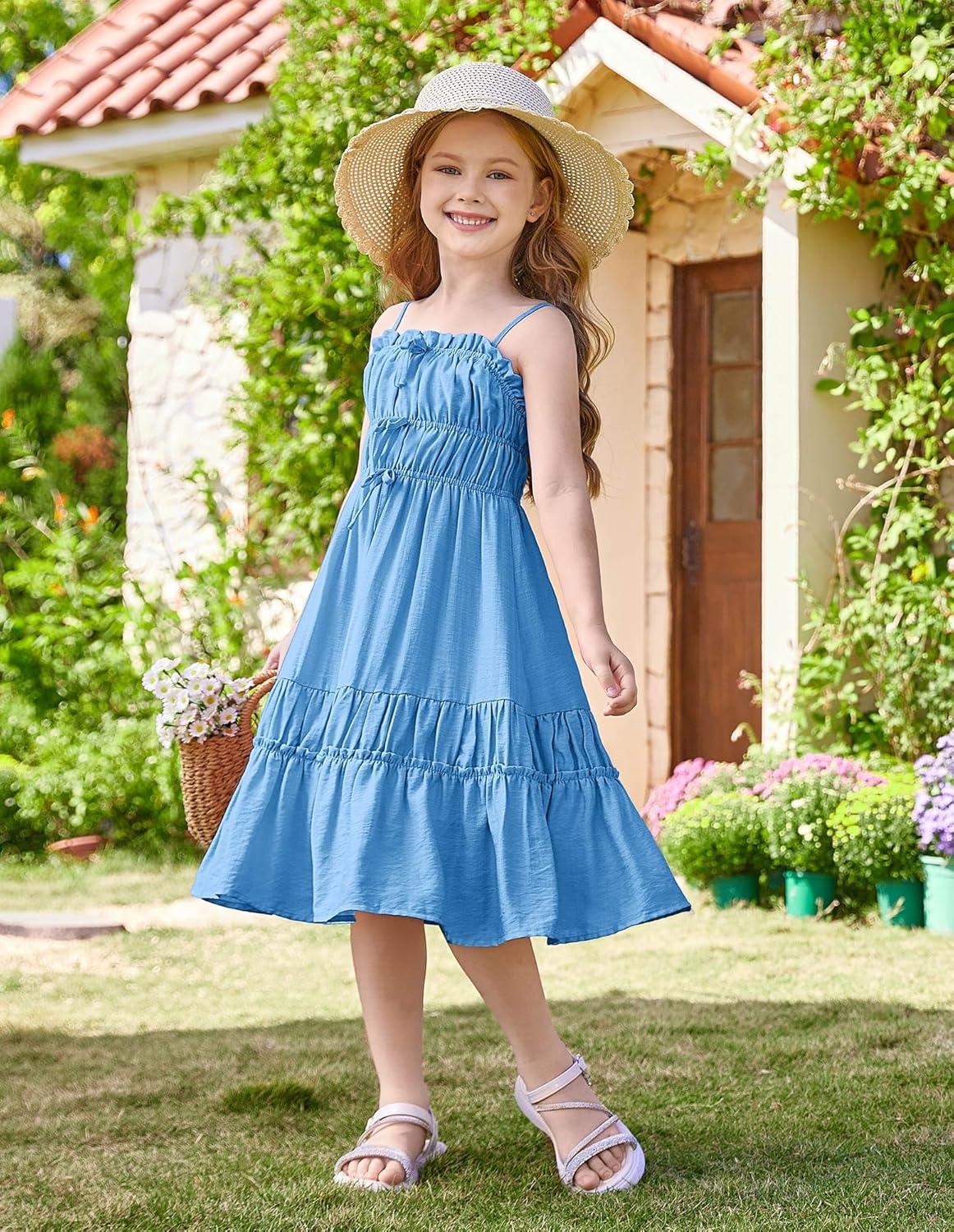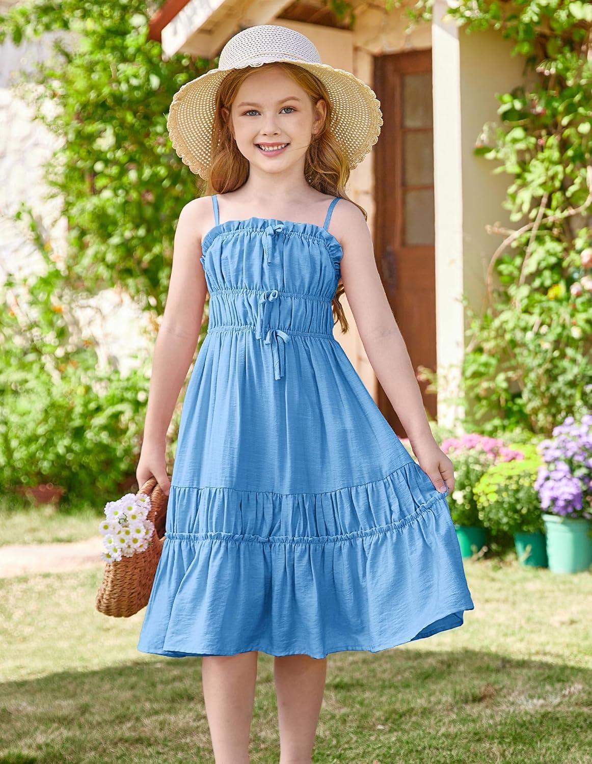 GRACE KARIN Girls Summer Dress Spaghetti Strap Midi Casual Sundress Sleeveless Party Elegant Dress 5-12Y(Dodger Blue)