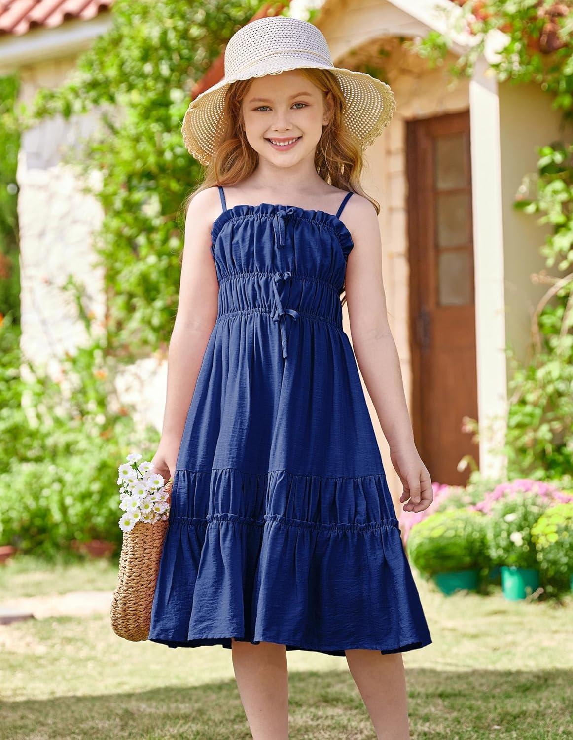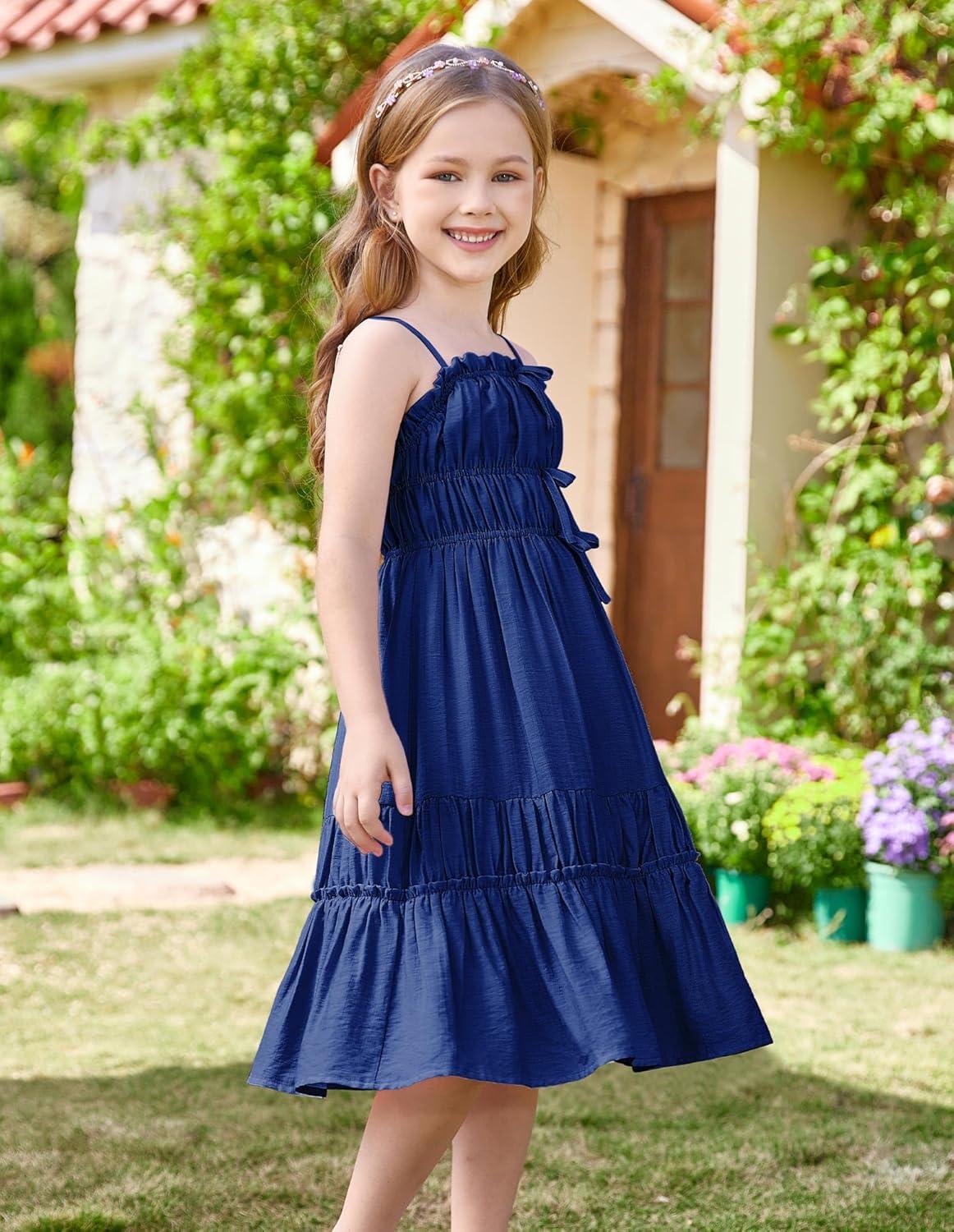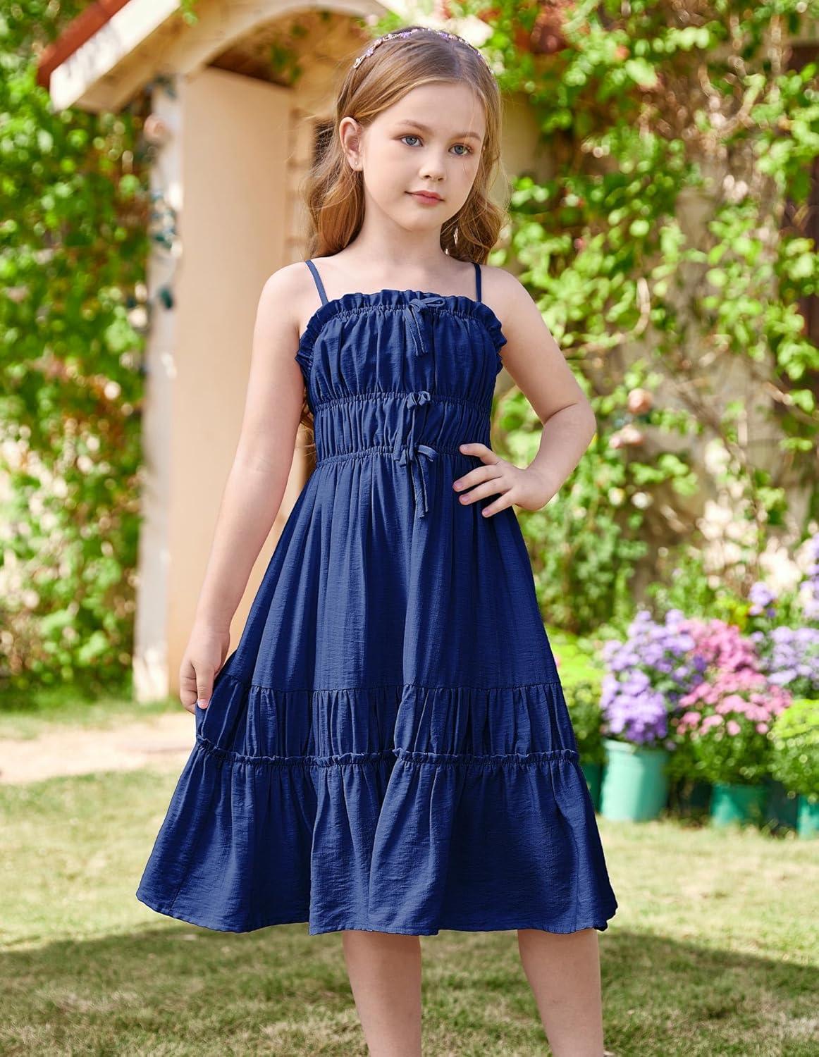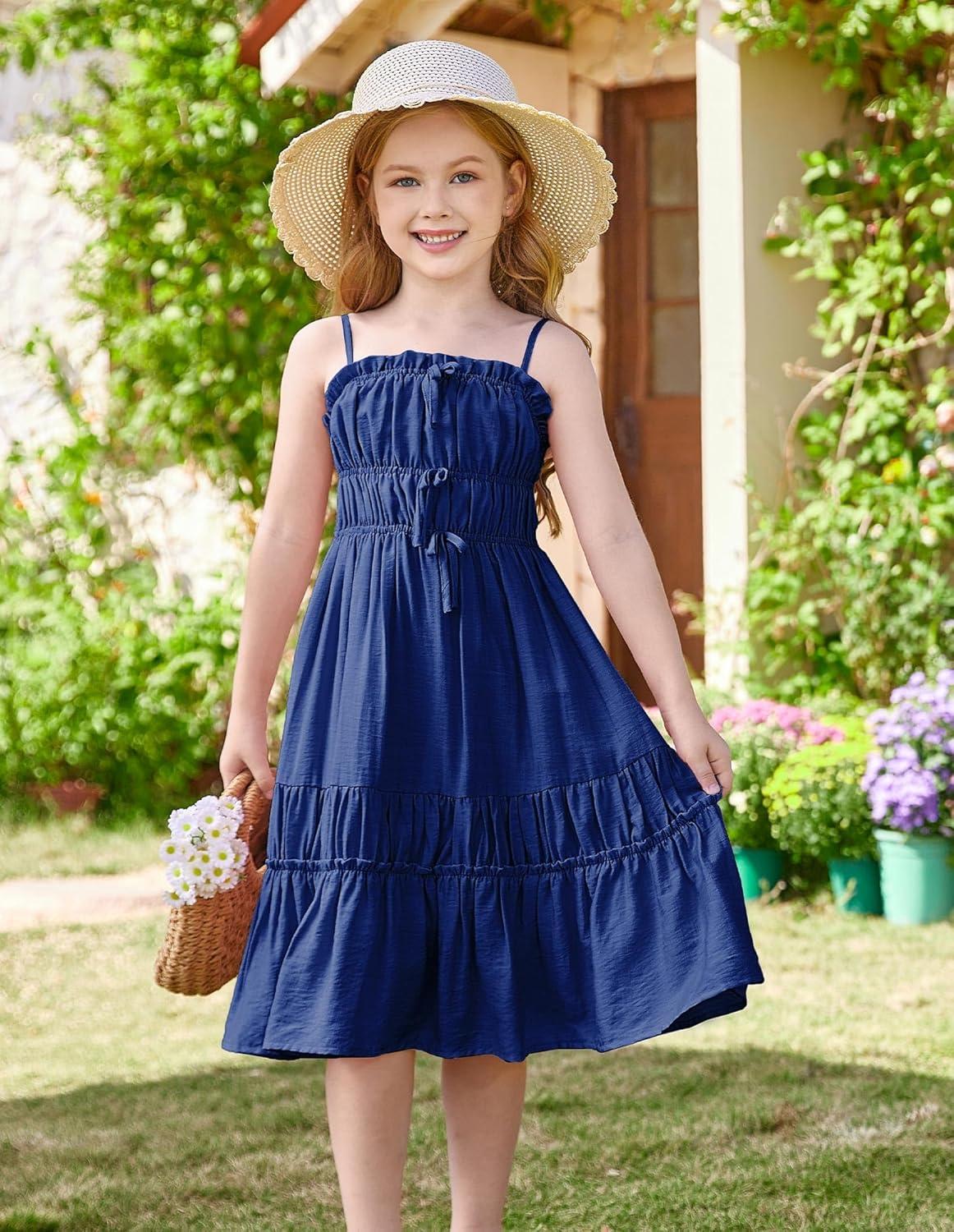 GRACE KARIN Girls Summer Dress Spaghetti Strap Midi Casual Sundress Sleeveless Party Elegant Dress 5-12Y(Navy Blue)