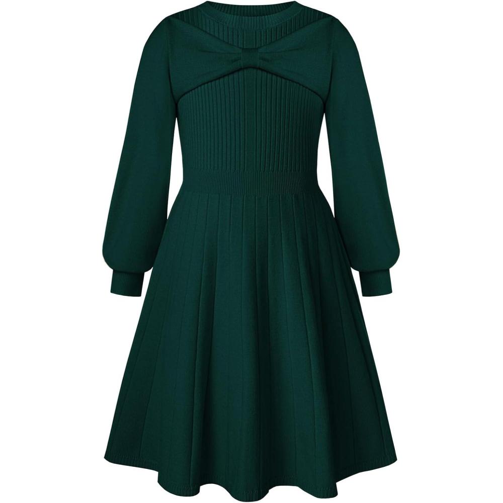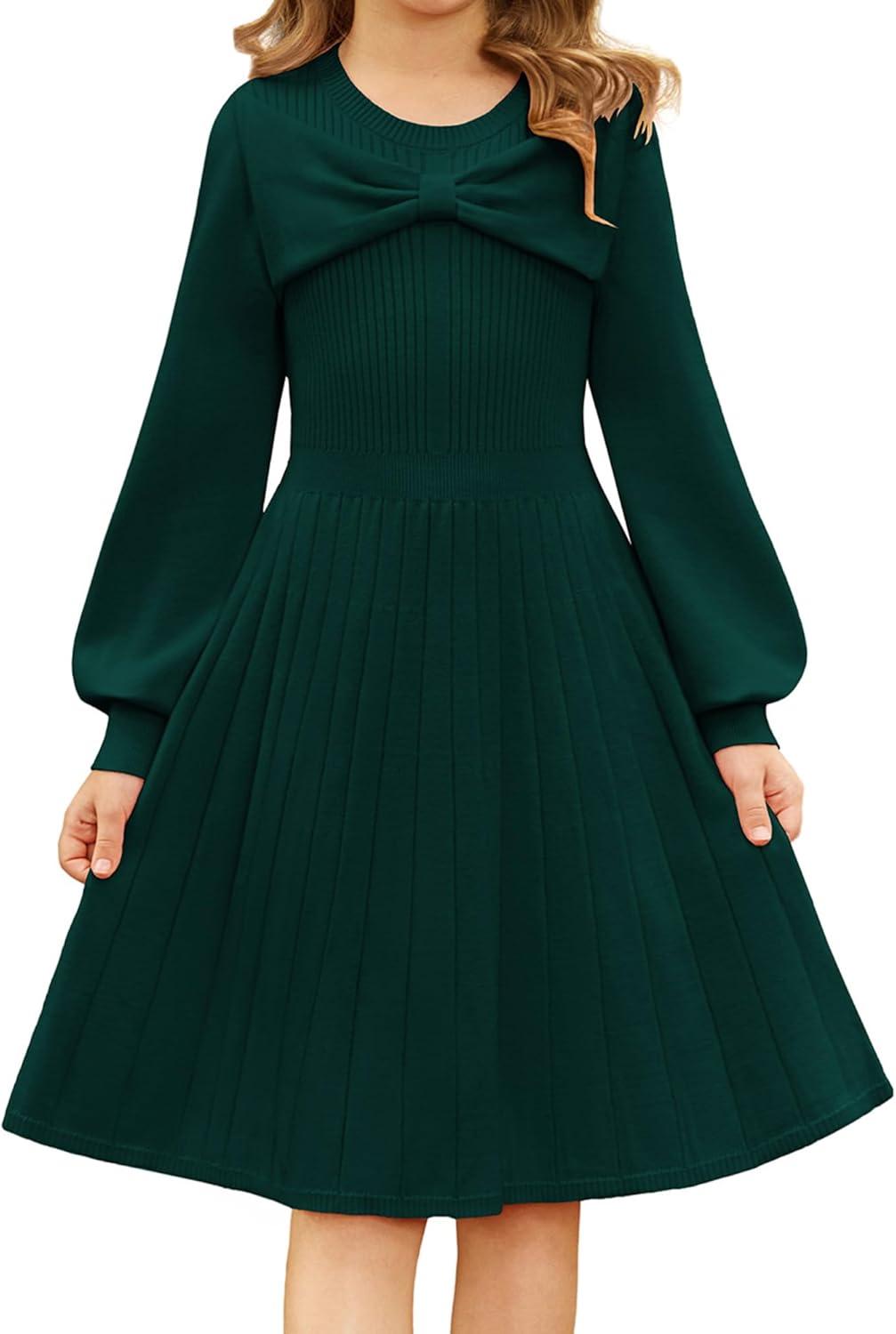 GRACE KARIN Girls Sweater Dress Bow Collar Pleated Skirt 6-14Y Back to School Outfit Knit Fall Winter Dress(Dark Green)