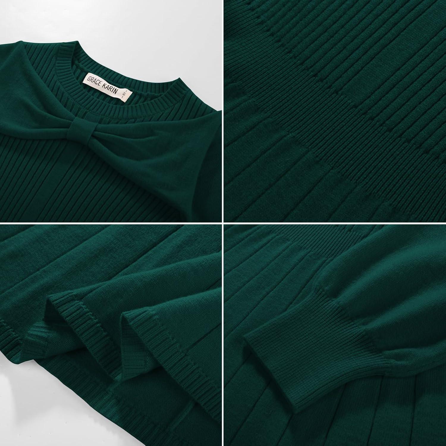 imageGRACE KARIN Girls Sweater Dress Bow Collar Pleated Skirt 614Y Back to School Outfit Knit Fall Winter DressDark Green
