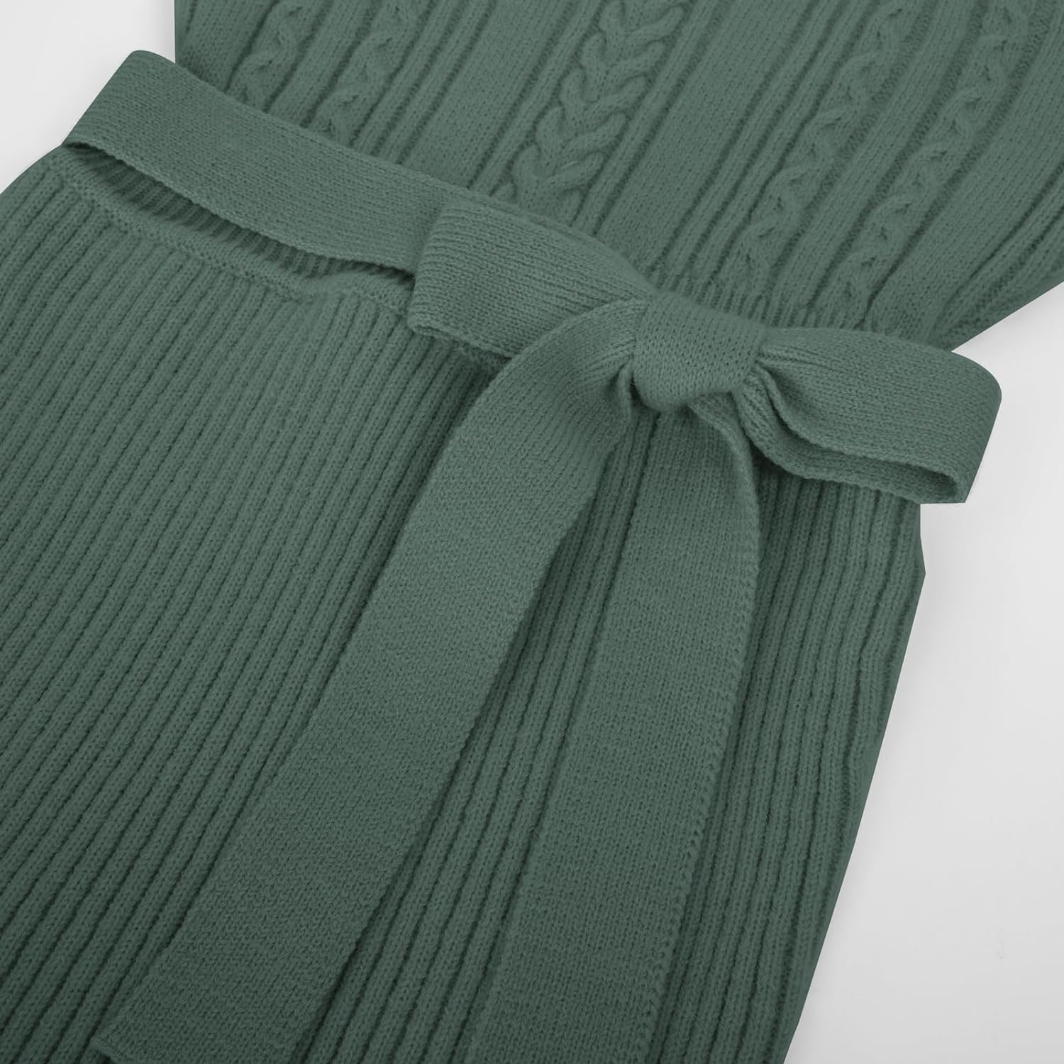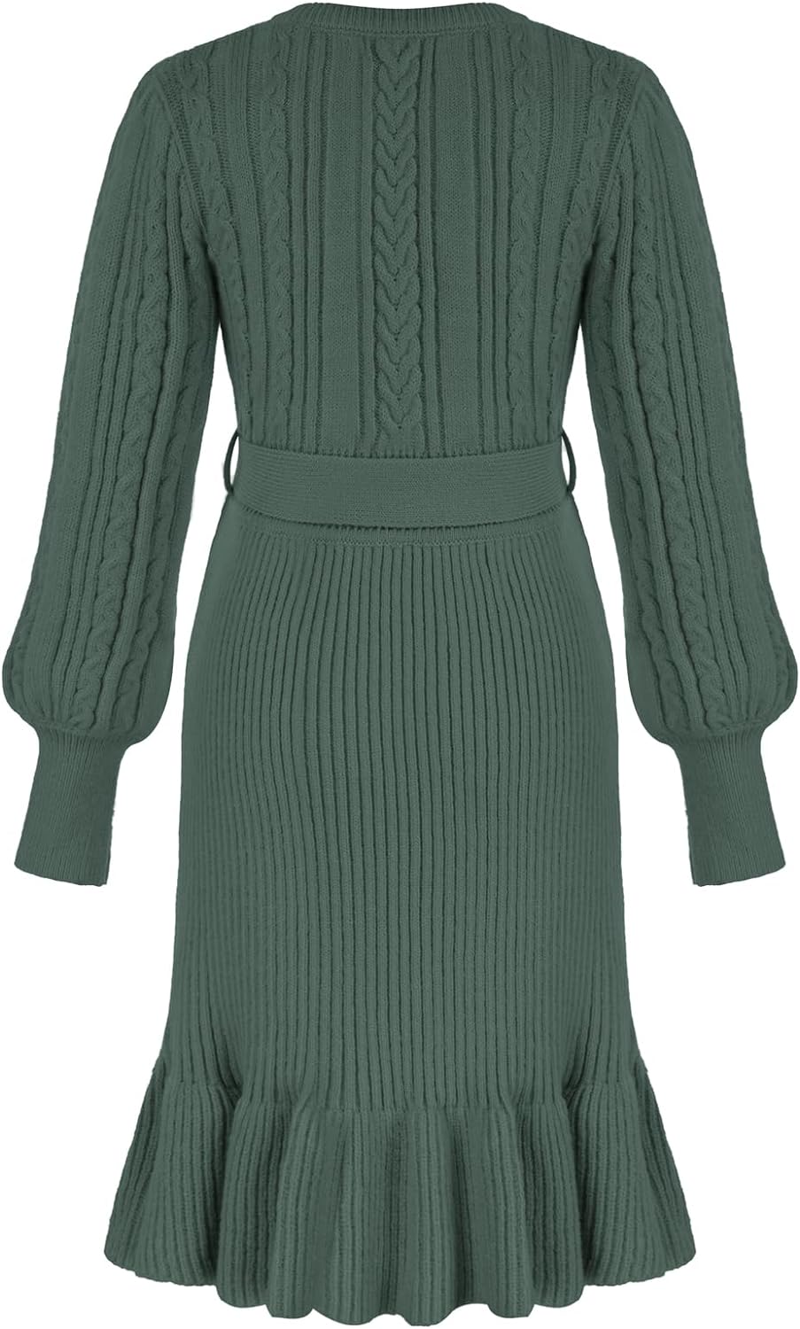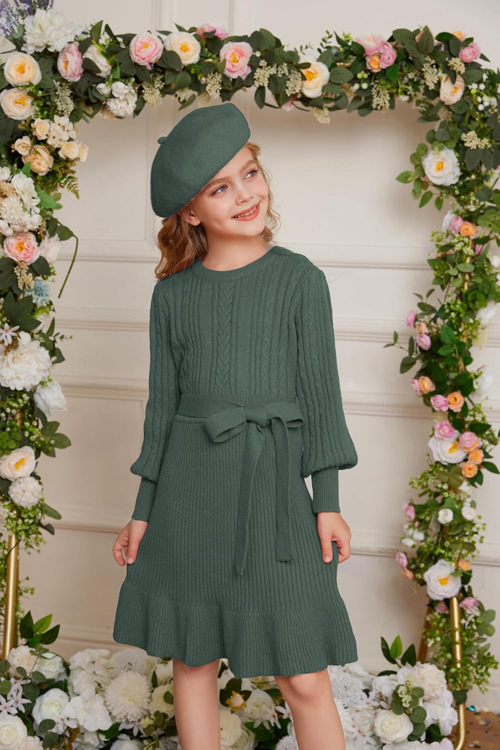 GRACE KARIN Girls Sweater Dress Cable Knit Long Sleeve Fall Winter Dress for Girl with Belt Sizes 614Tea Green