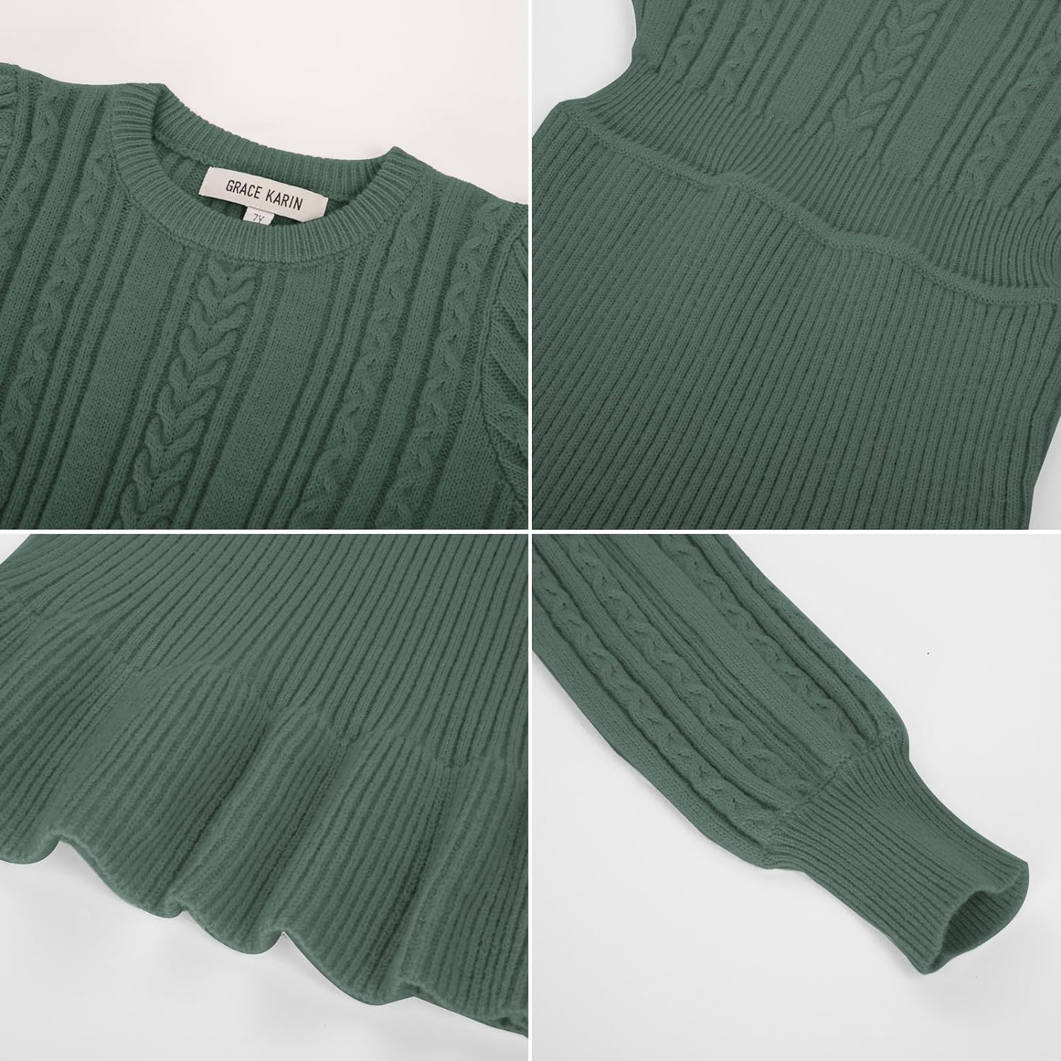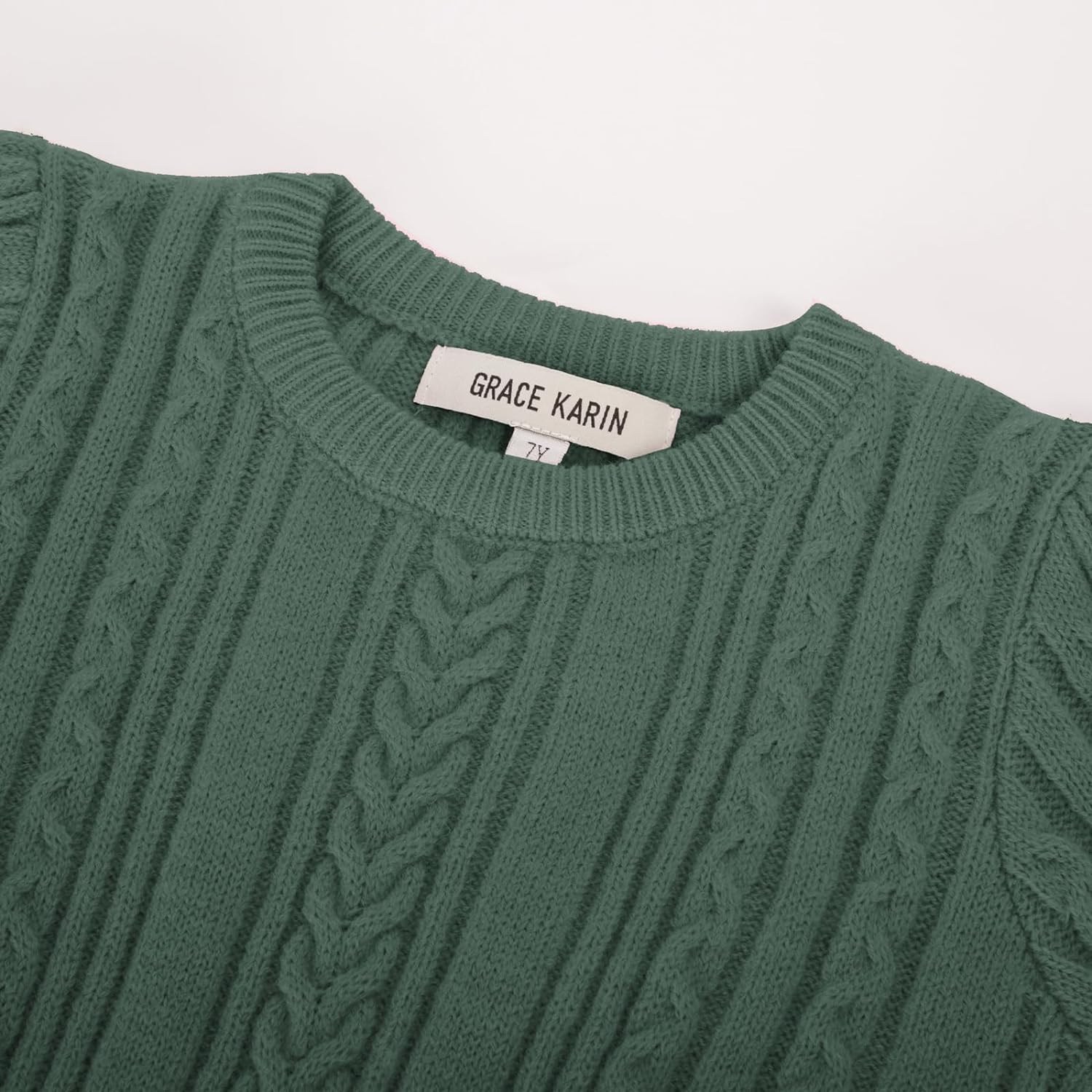 GRACE KARIN Girls Sweater Dress Cable Knit Long Sleeve Fall Winter Dress for Girl with Belt Sizes 6-14(Tea Green)