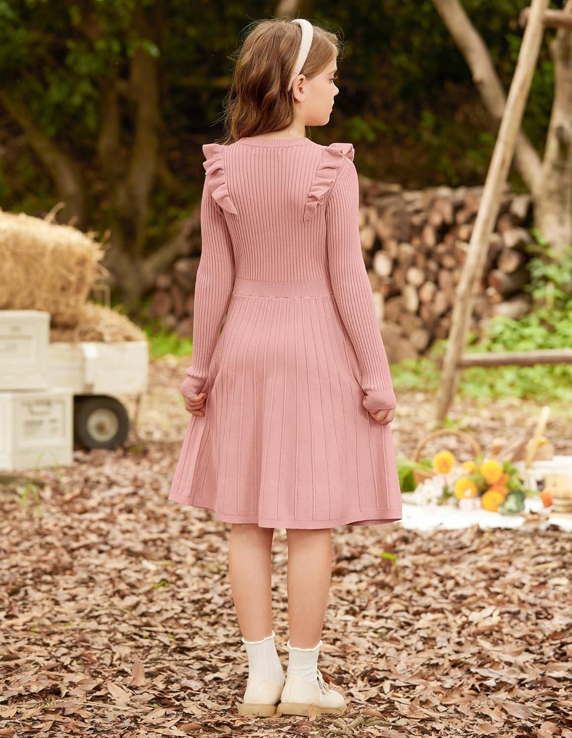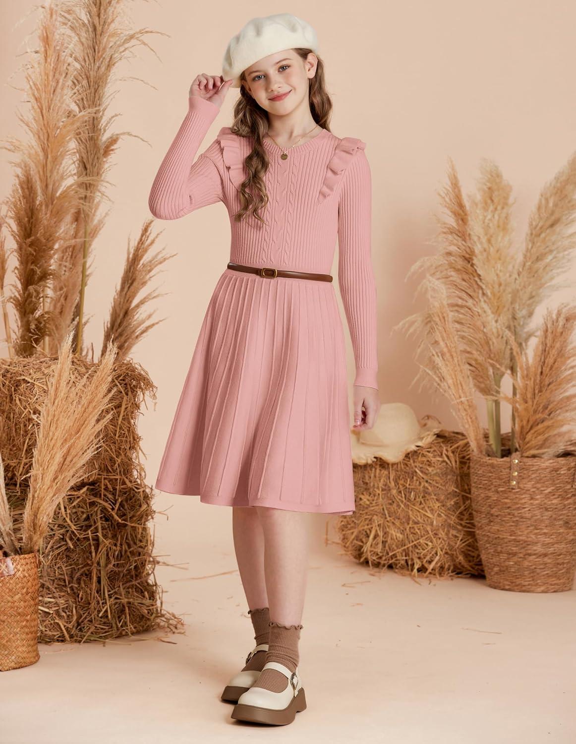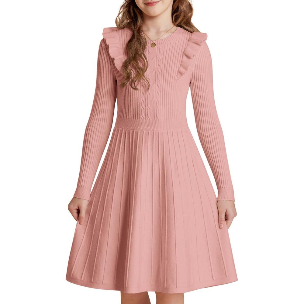 GRACE KARIN Girls Sweater Dress Fall Winter Long Sleeve Cable Knit Pullover Dresses for Girls 5-12Y(Pink)